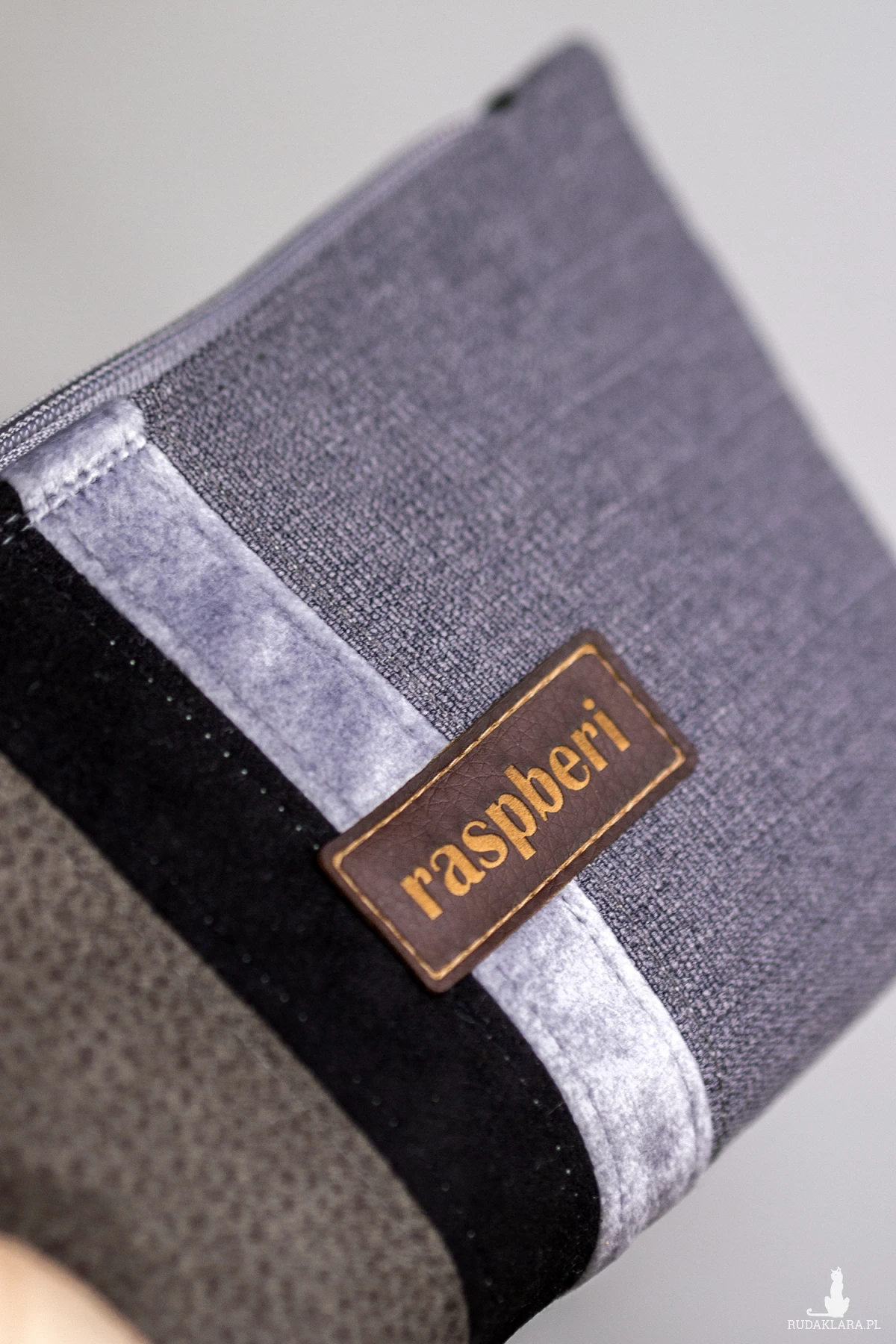 Średniej wielkości kosmetyczka wykonana kilku rodzajów tkanin. Stworzona w duchu no waste.