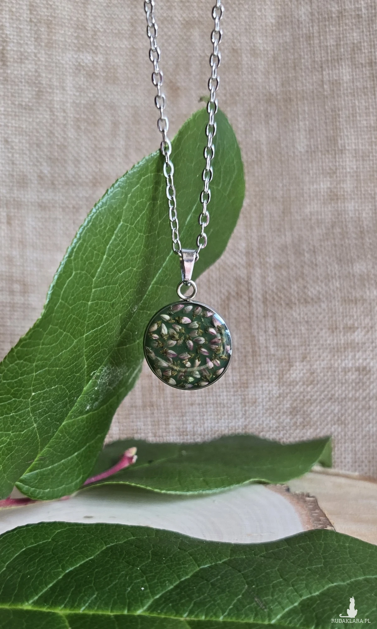 Oferuję Państwu unikalną biżuterię. Zawieszka jest wykonana z suszonych kwiatów i żywicy epoksydowej. Biżuteria jest wspaniałym i oryginalnym prezentem na lata.