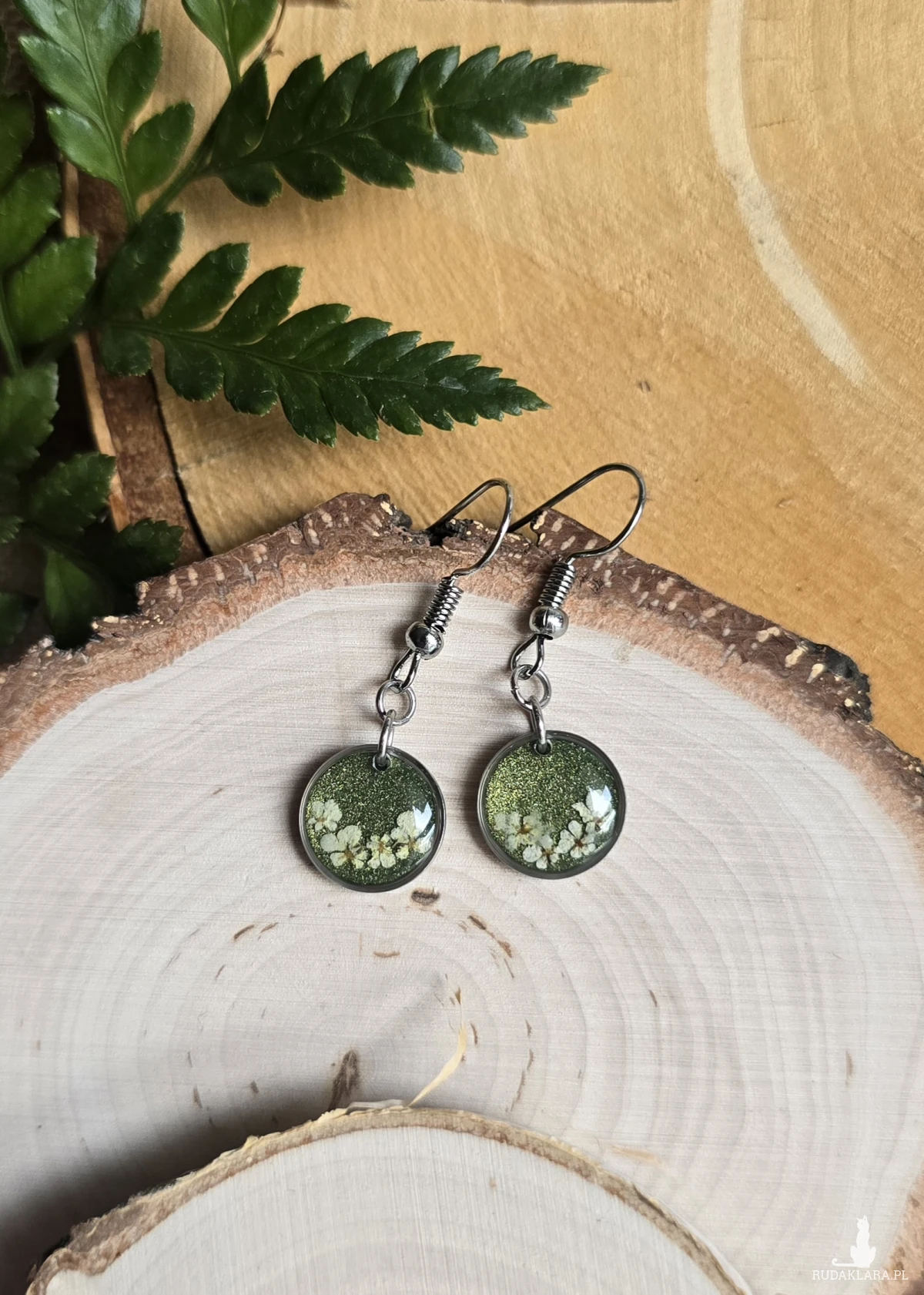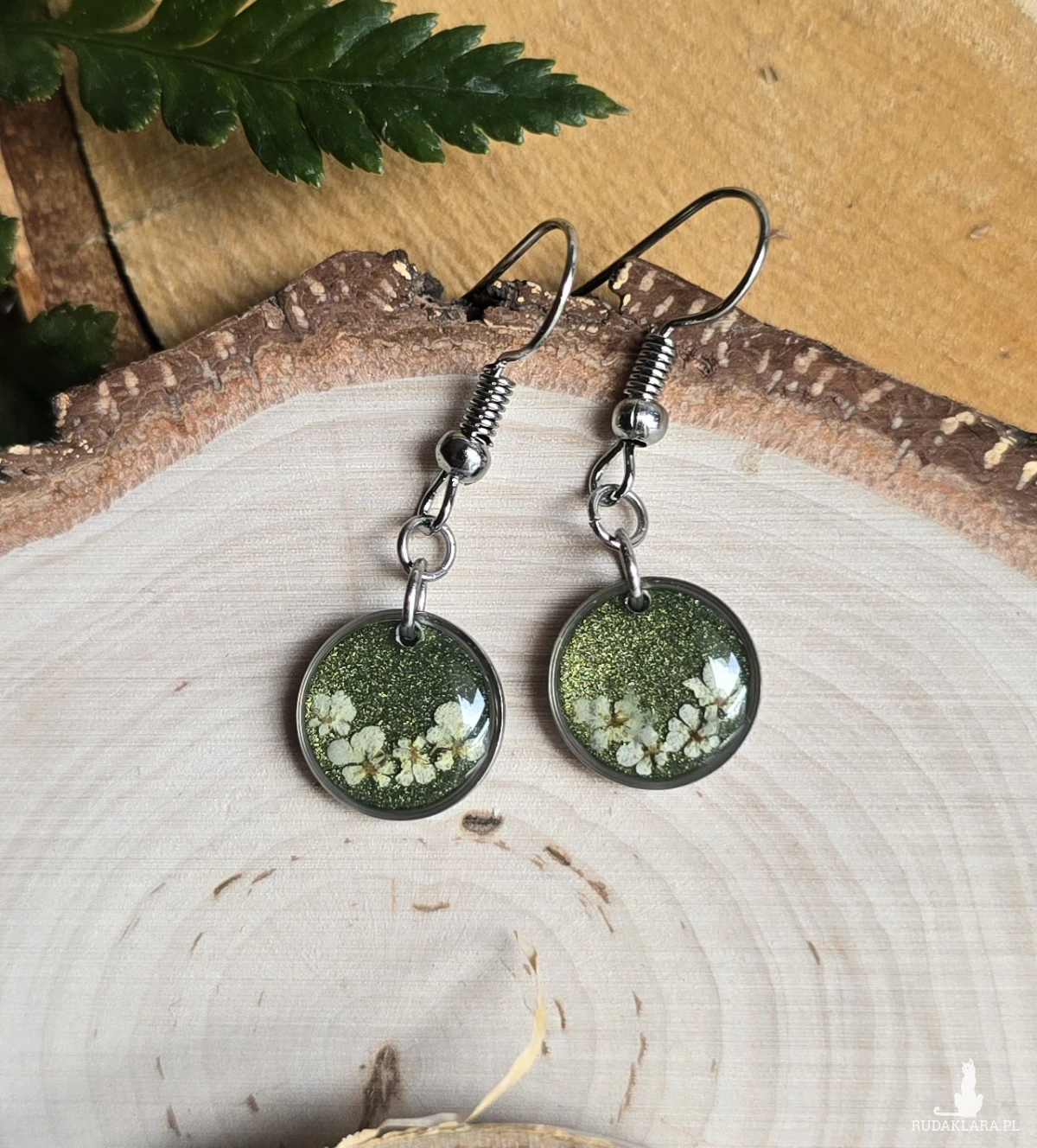 Srebrne kolczyki z kwiatami z żywicy żywica epoksydowa z suszonymi prawdziwymi kwiatami zielone