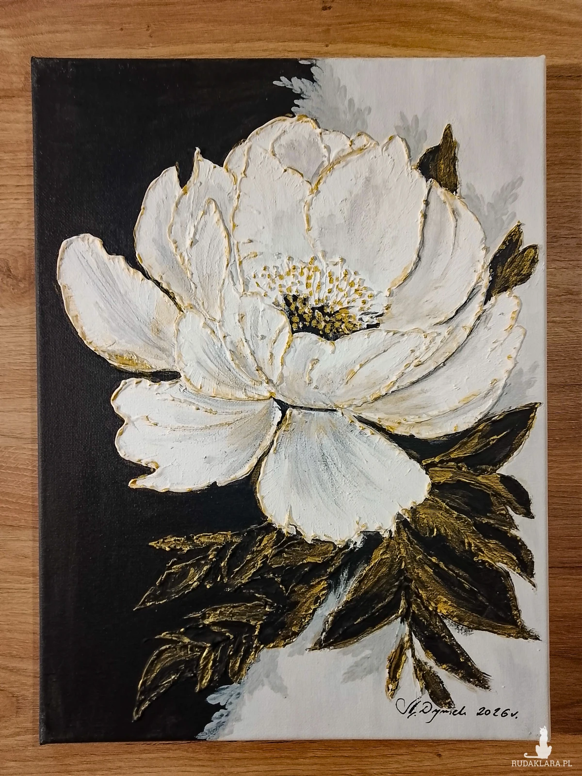 Ręcznie malowany tryptyk, który łączy w sobie delikatność natury z odważnym, nowoczesnym stylem. Centralny motyw pióra, flankowany przez rozkwitające piwonie, tworzy harmonijną opowieść o lekkości i sile. Przepięknie przenikają się biel i czerń jeszcze bardziej kontrastując i wyciągając "głębię" obrazów.