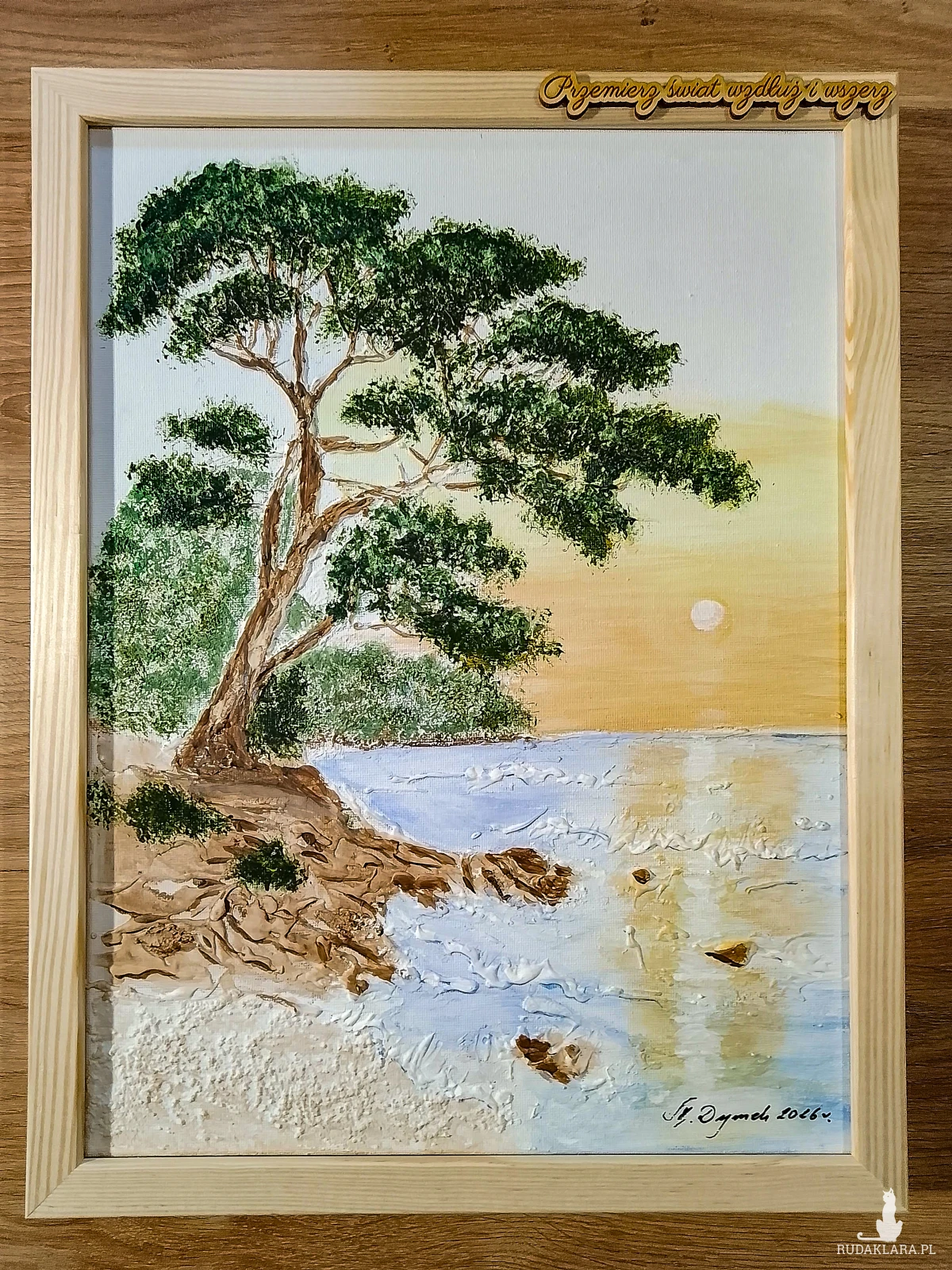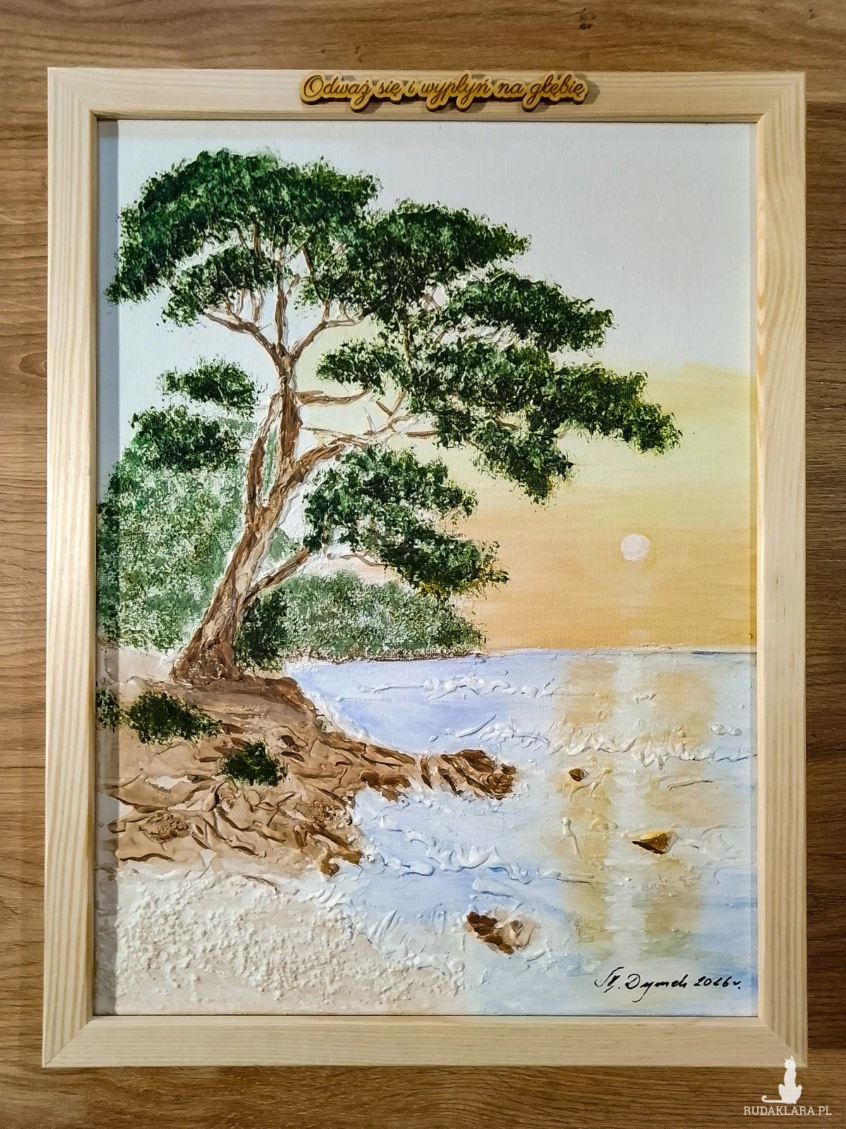 Cena obejmuje obraz, ramę oraz dekoracyjny napis - otrzymujesz zestaw gotowy do wręczenia a personalizacja sprawia, że świetnie się sprawdzi jako oryginalny i niebanalny prezent na parapetówkę, urodziny, ślub, czy każdą inną okazję. Ręcznie malowany obraz jest czymś więcej niż dekoracją - to gotowa do wręczenia opowieść zamknięta w nieszablonowej oprawie. Nie jest tylko obrazem na ścianie, ale codziennym przypomnieniem o marzeniach i odkrywaniu nowego. Szukasz czegoś więcej niż zwykłej dekoracji, ten wybór Cię nie zawiedzie.