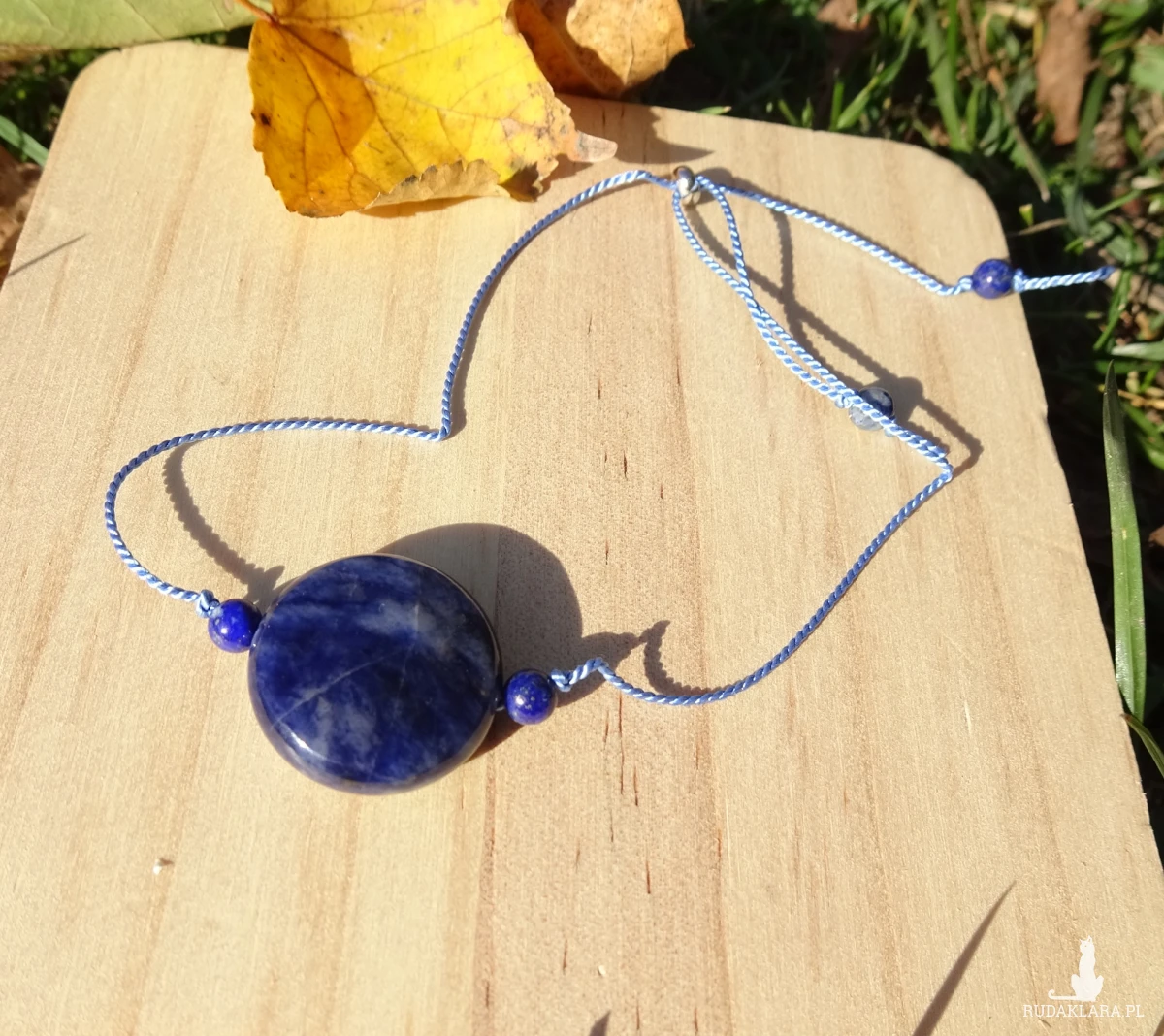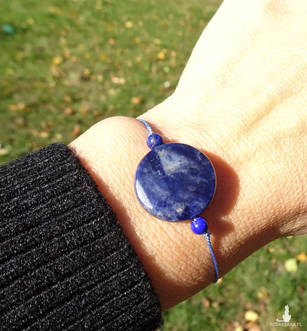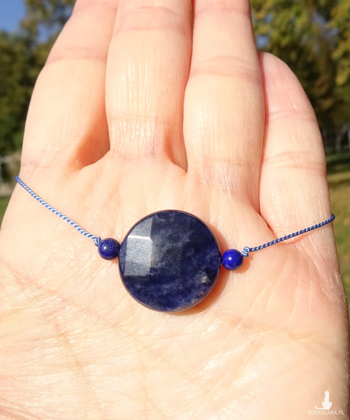 Bransoletka na nici jedwabnej z naturalnych kamieni niebieskiego sodalitu