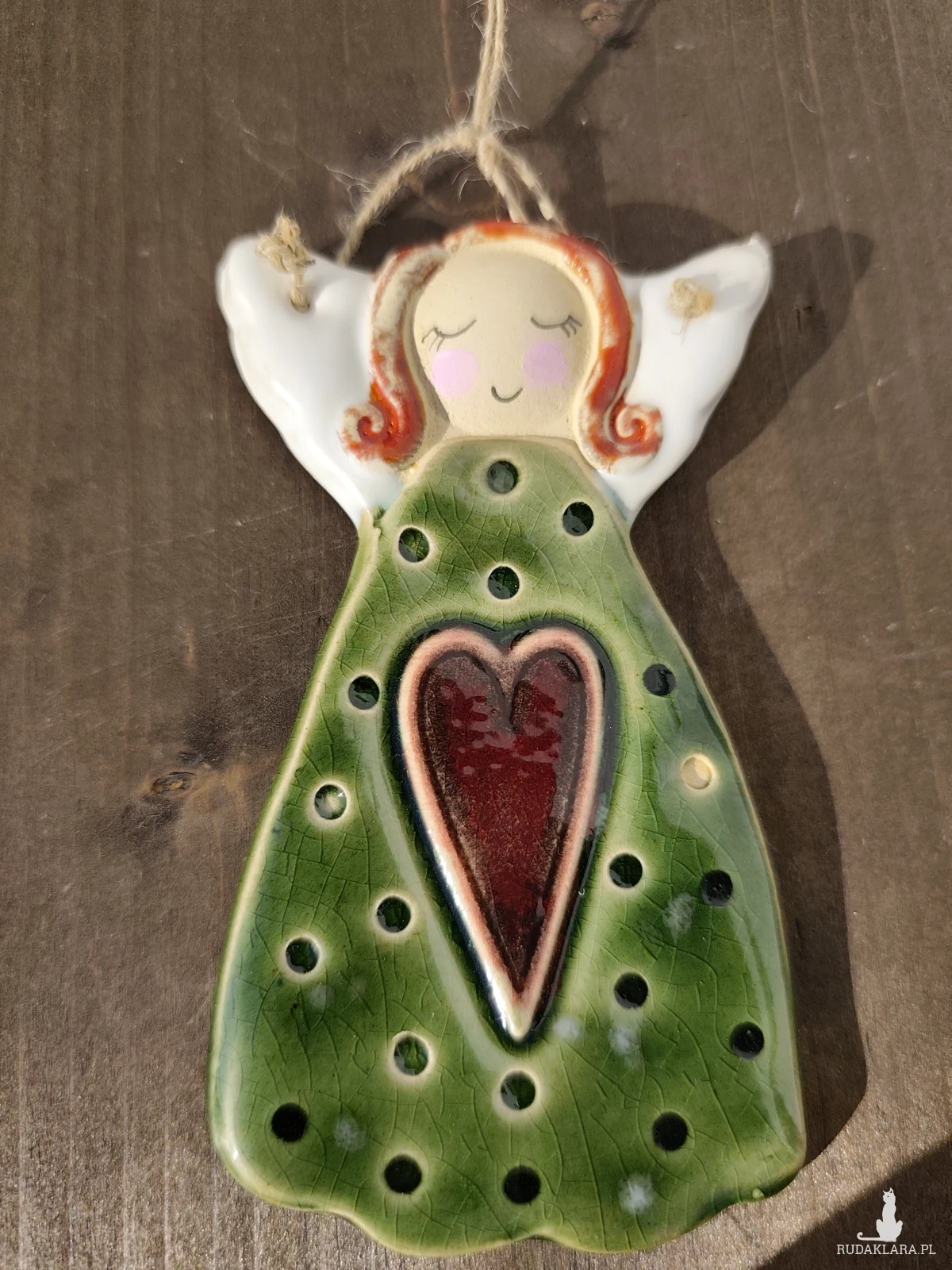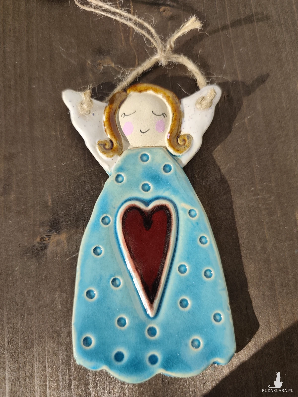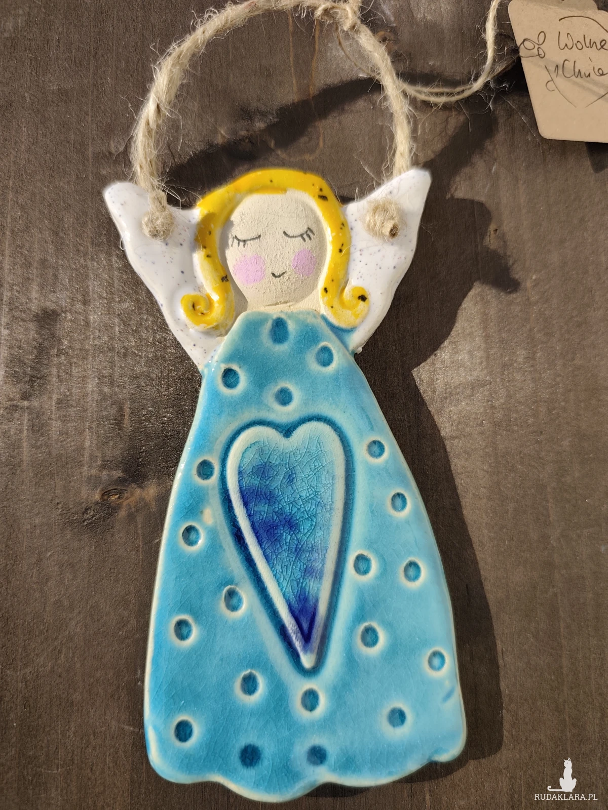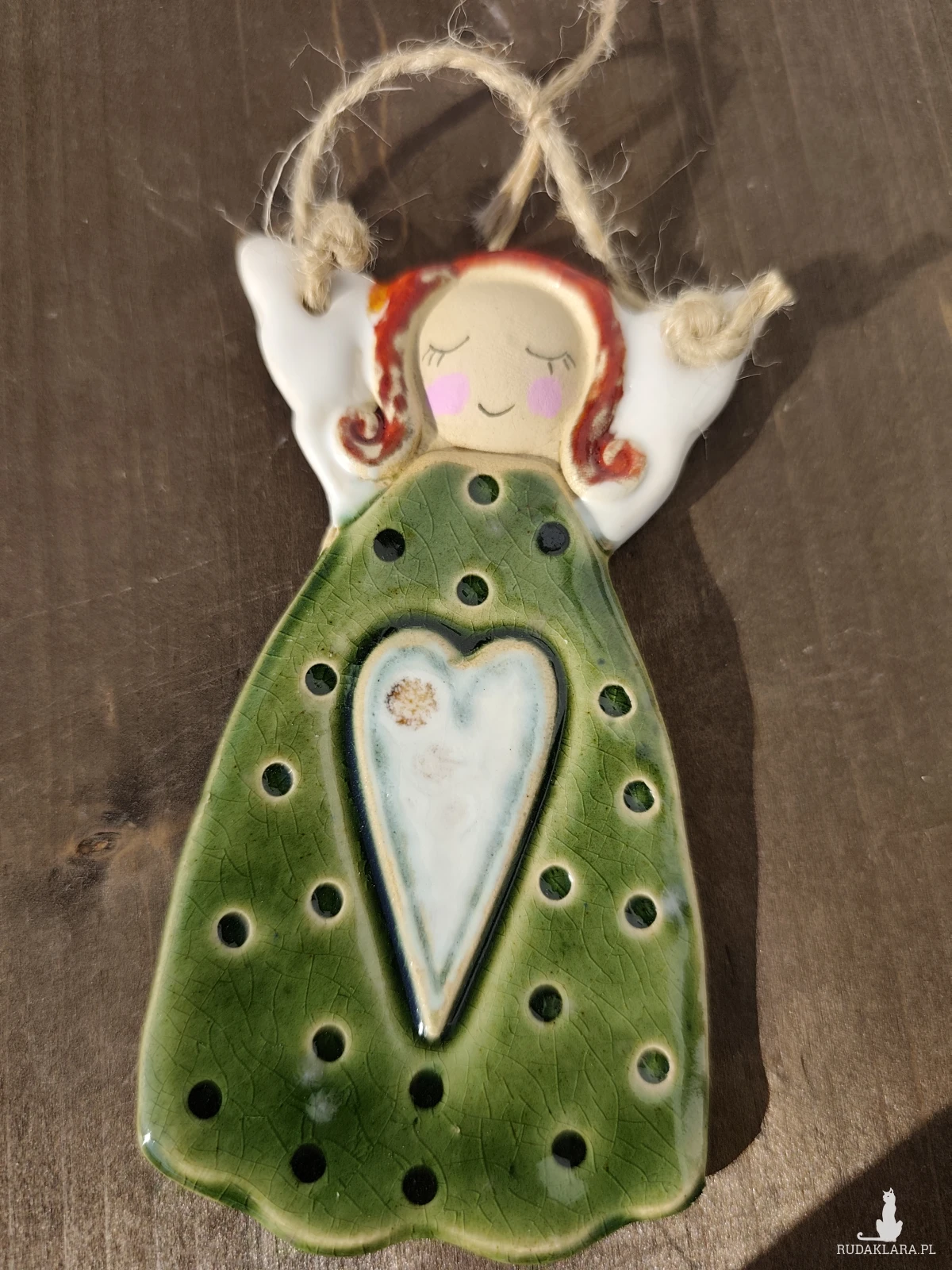 Aniołek ceramiczny wykonany z jasnej gliny, szkliwiony i dwukrotnie wypalany w piecu ceramicznym. polecam