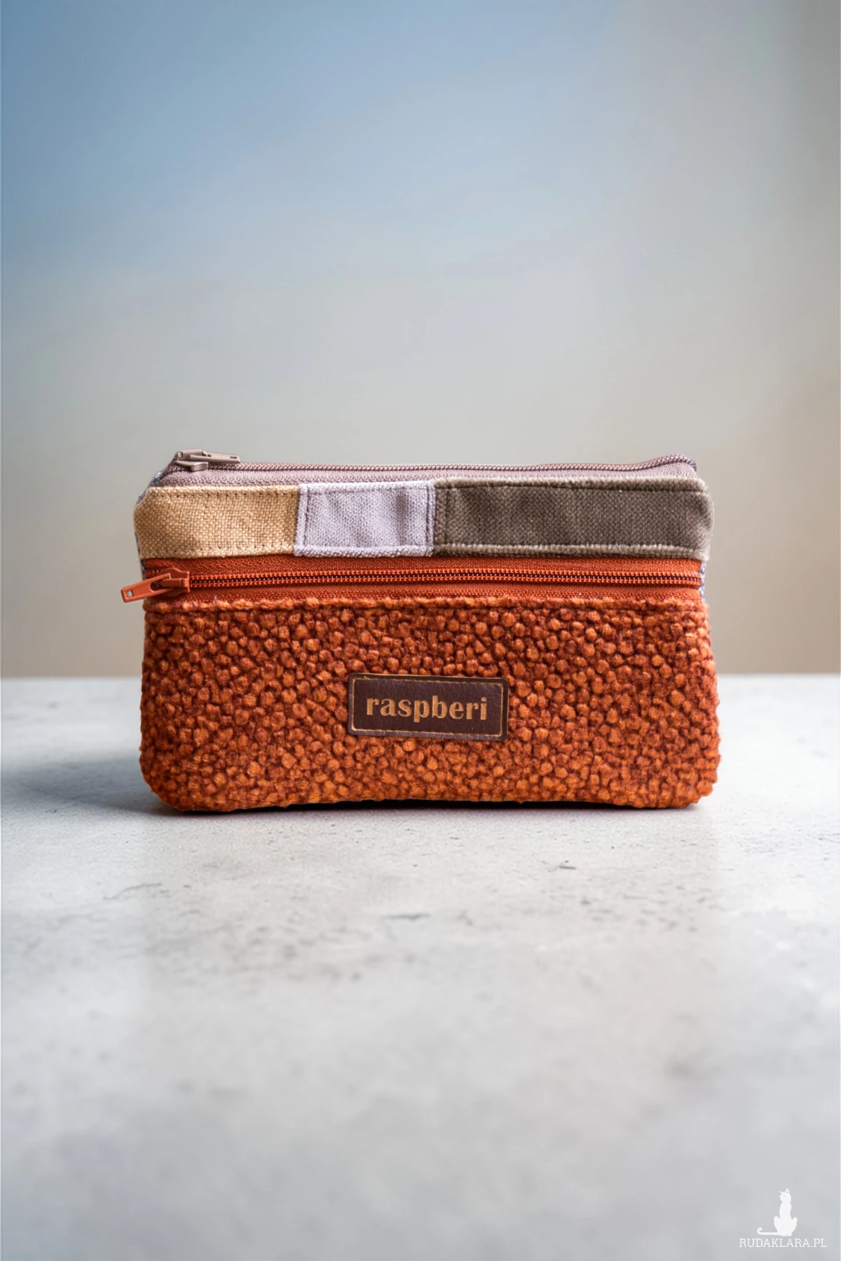 Prosty wodoodporny portfel wykonany z kilku rodzajów tkanin.