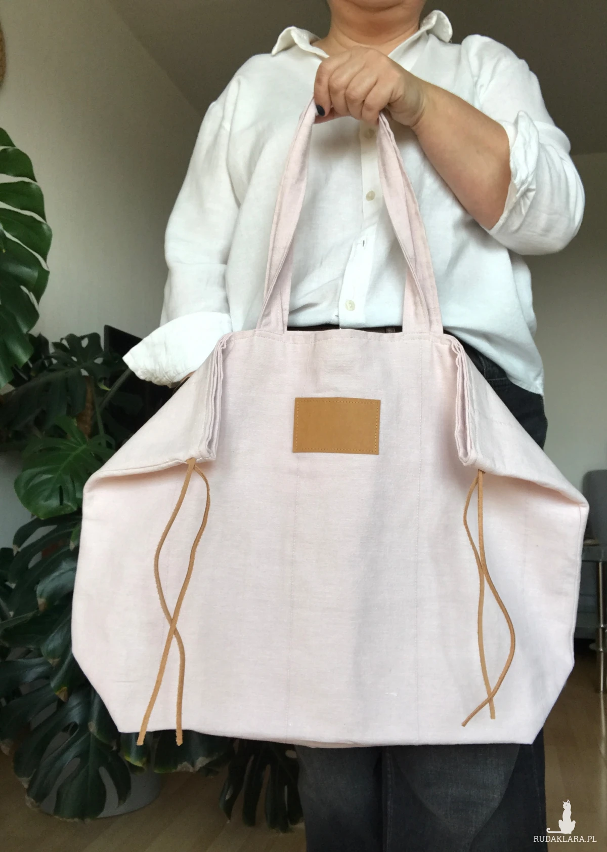 Torba jest duża, pojemna z długimi mocno przyszytymi wzmocnionymi rączkami . Dwie warstwy tkaniny gwarantują, że torba jest mocna i wytrzymała.