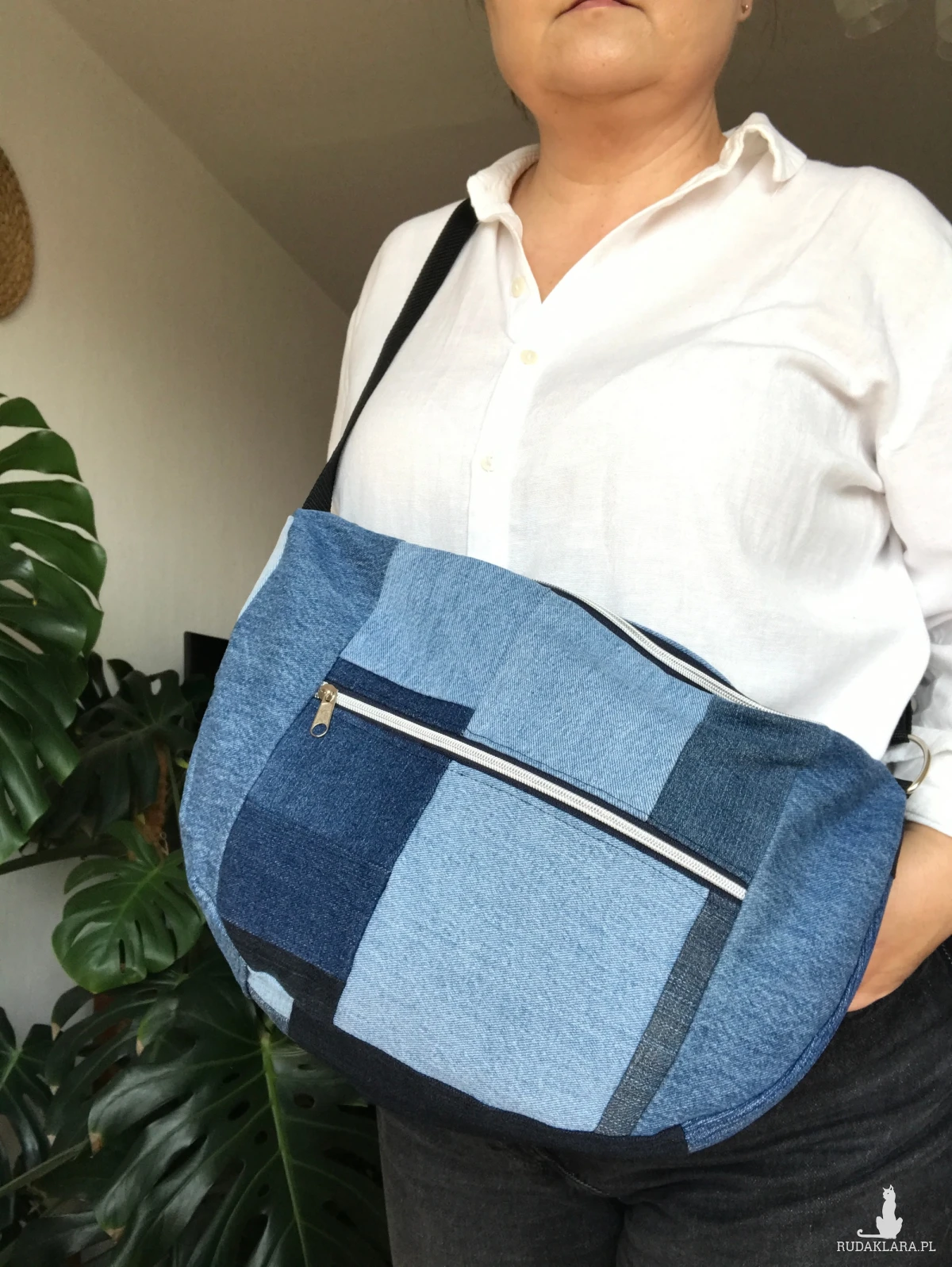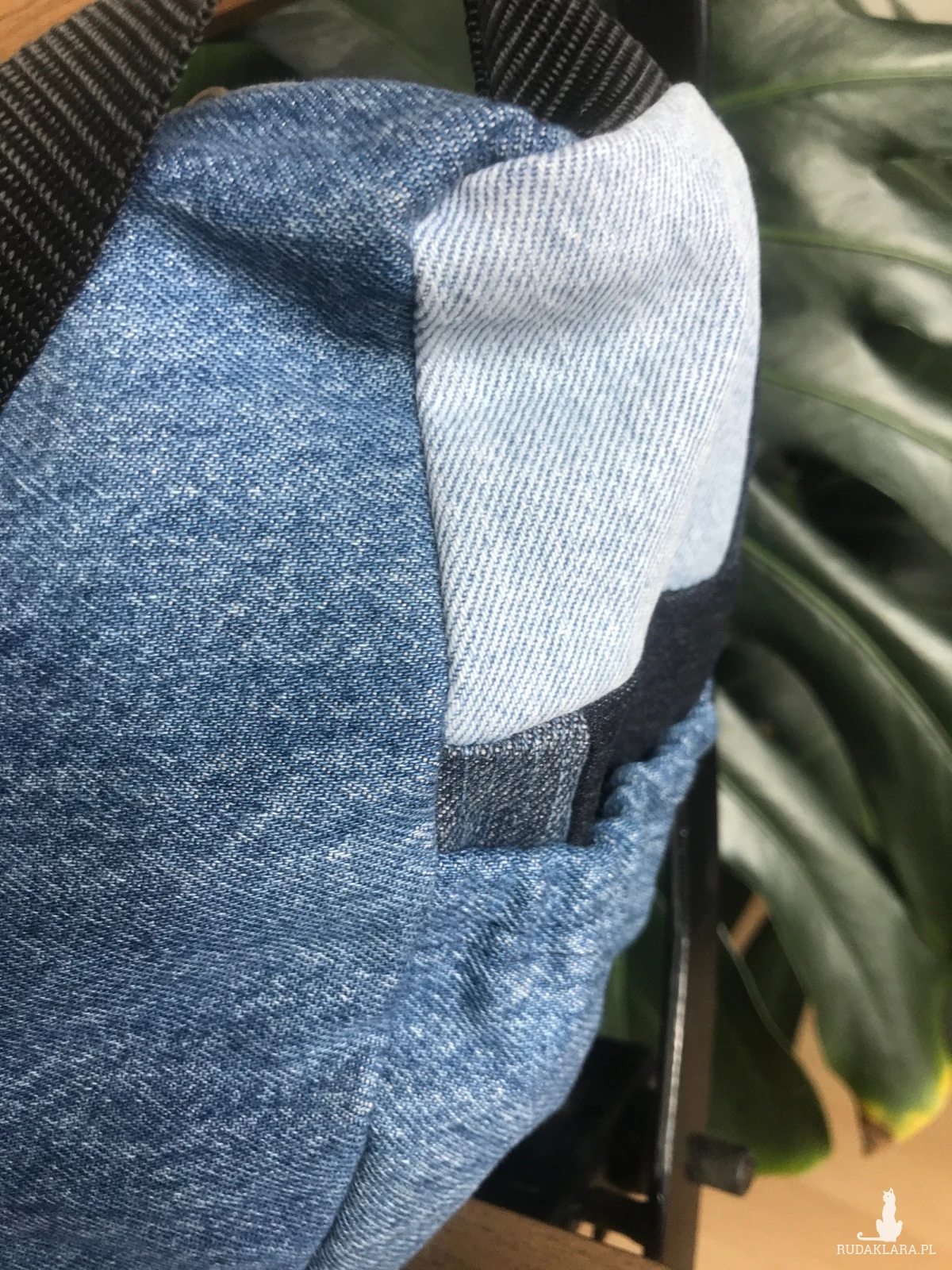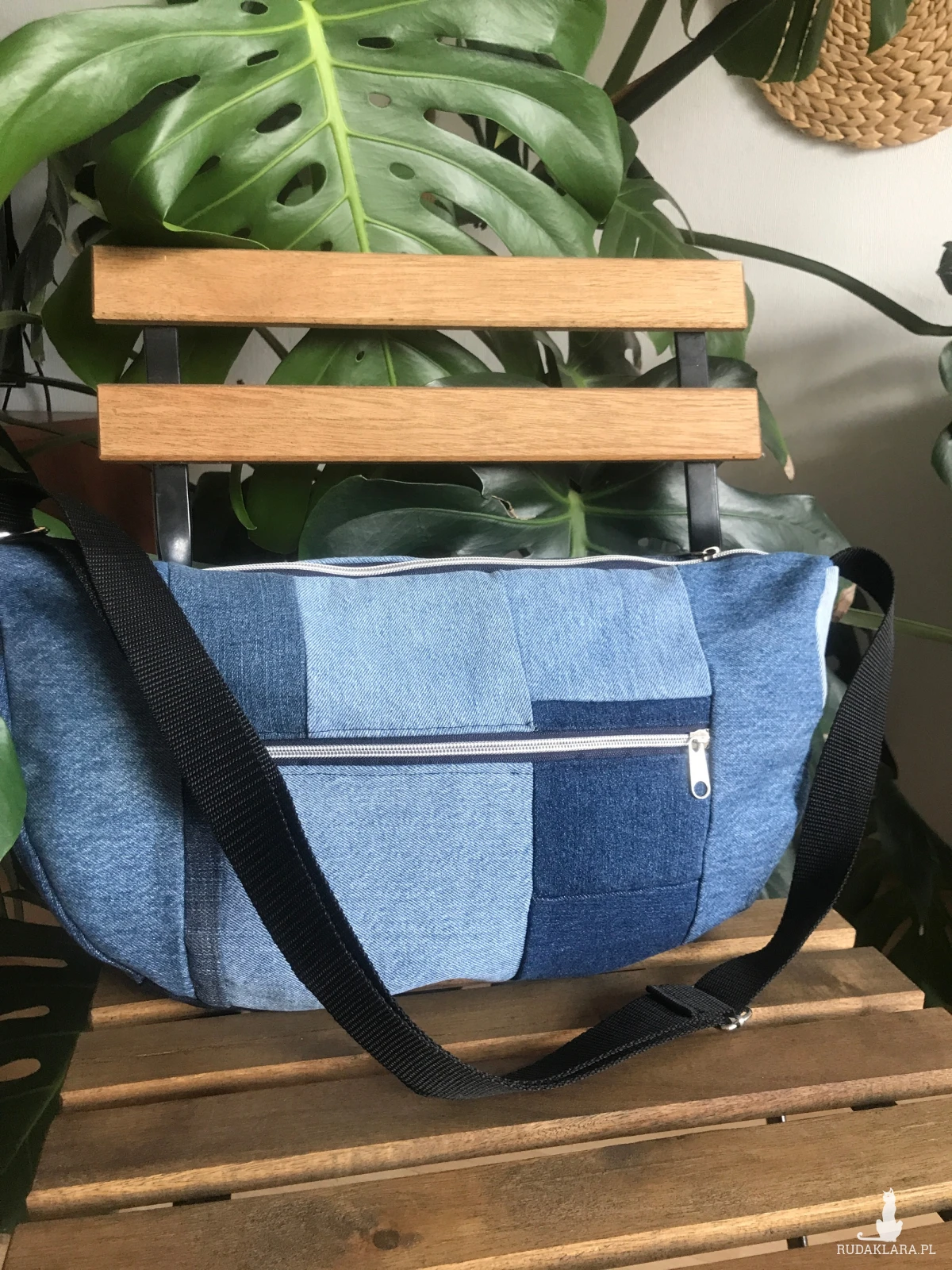 Ta torebka powstała z recyklingowanych spodni jeansowych.