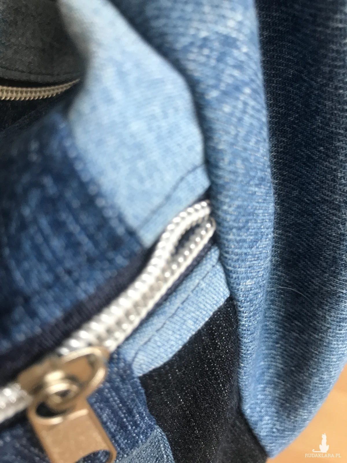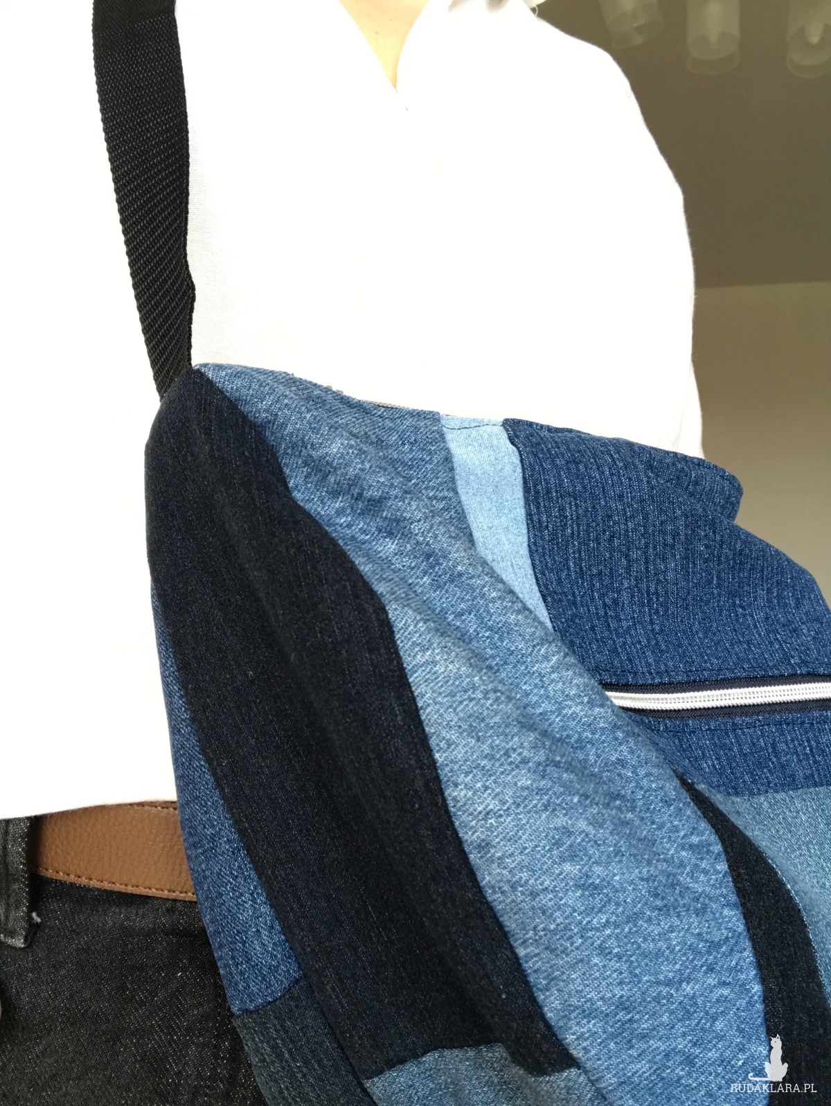 Ta torebka powstała z recyklingowanych spodni jeansowych.
