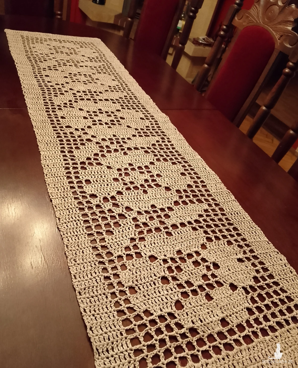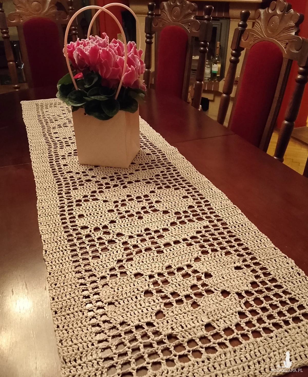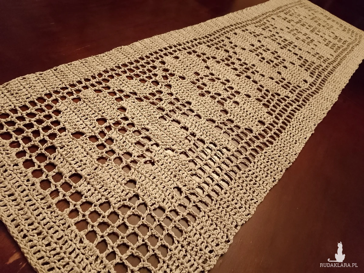 Bieżnik w romantyczne kwiaty wykonany ręcznie z bawełnianych nici, w