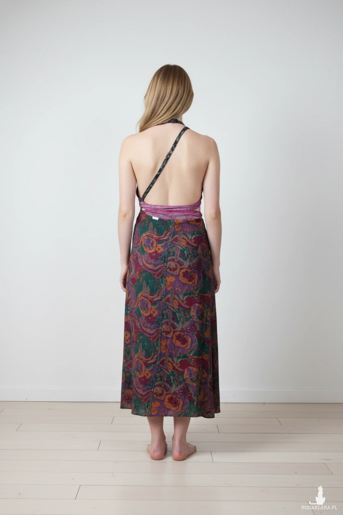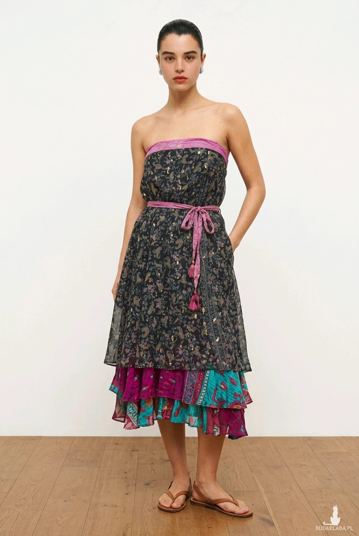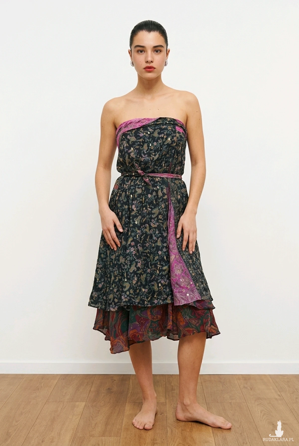 Bardzo ciekawa indyjska sukienka którą można w różny sposób wiązać ,80% jedwabiu, sukienka z Indii dwuwarstwowa, dwukolorowa długość całości do 99 cm, rozmiar one size