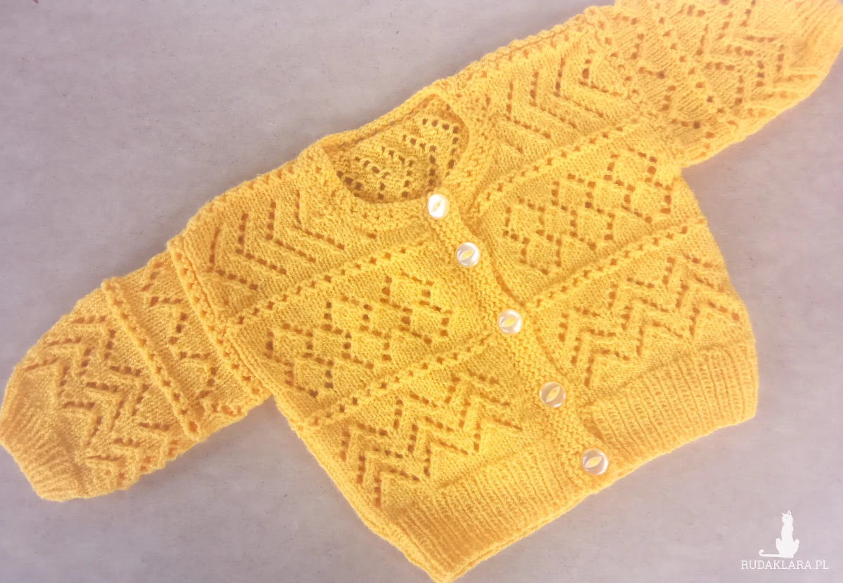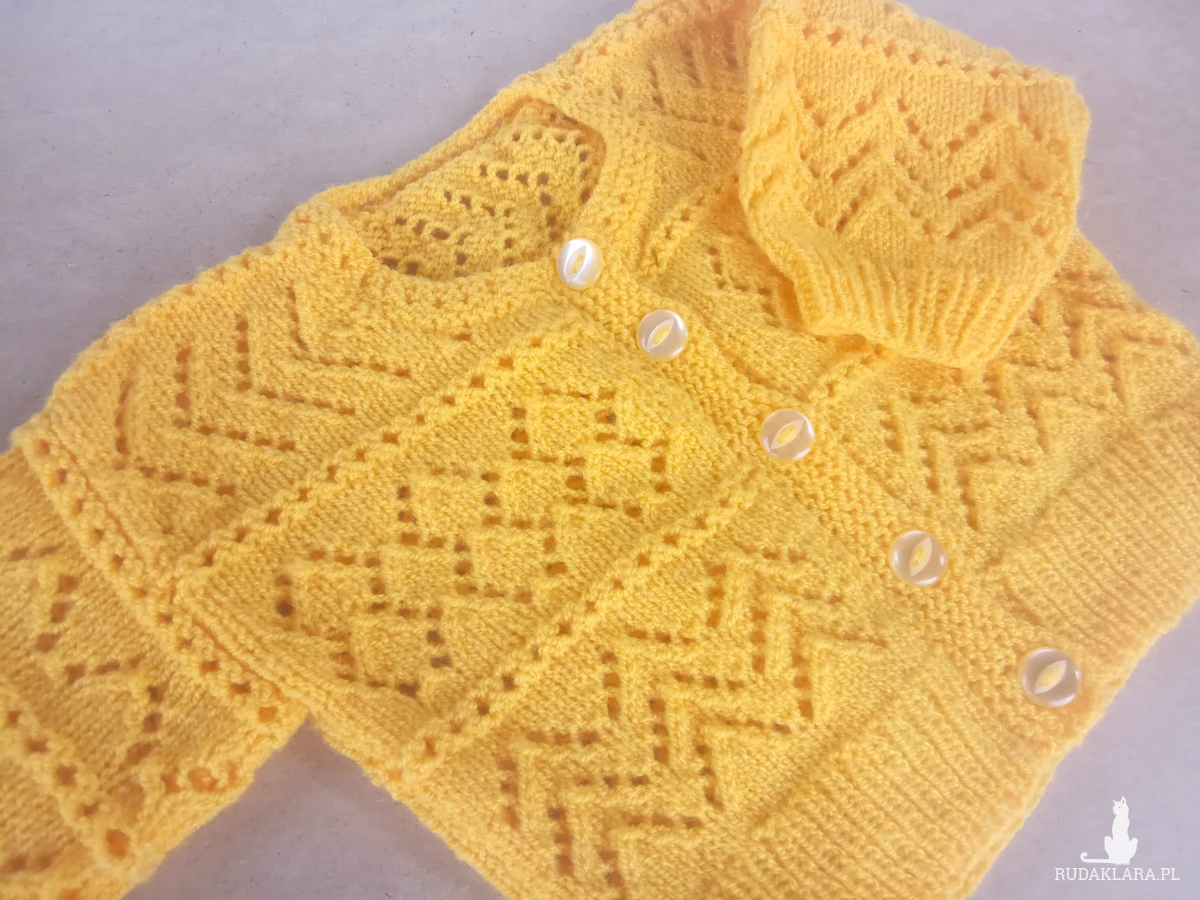 Sweterek w całości wykonany ręcznie na drutach z włóczki akrylowej.