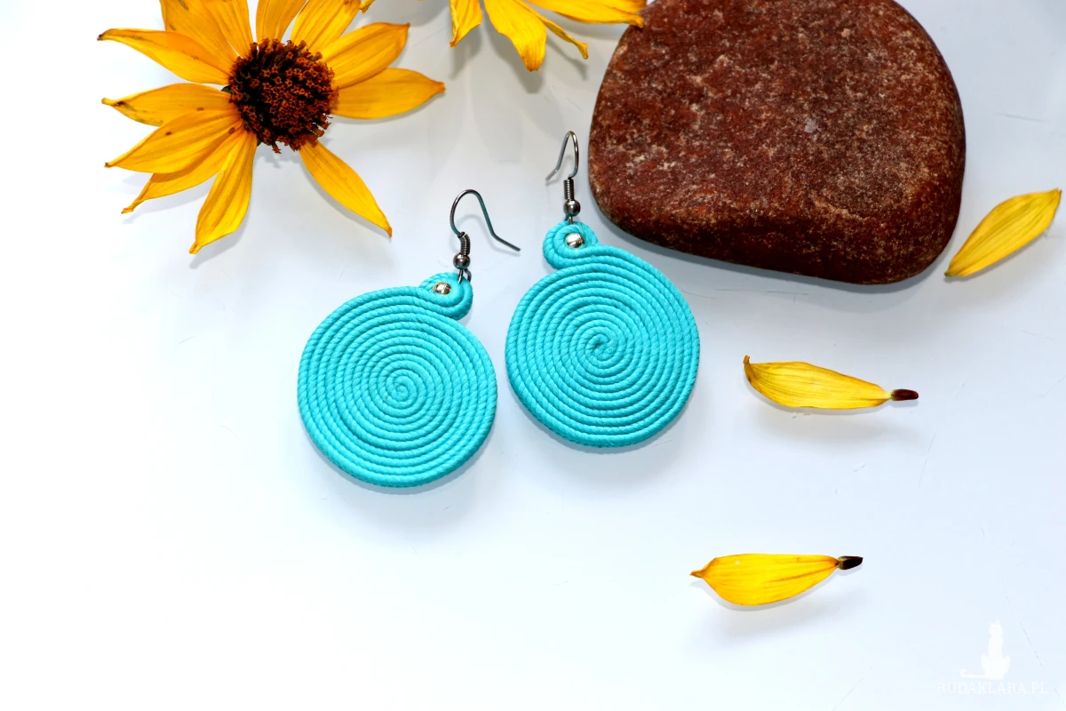 Intensywny, turkusowy sznurek o ciekawej strukturze "twisted" tworzy hipnotyzującą spiralę, która pięknie układa się przy twarzy. To idealny wybór dla kobiet, które kochają styl boho, etno oraz dodatki o nasyconych, radosnych barwach.