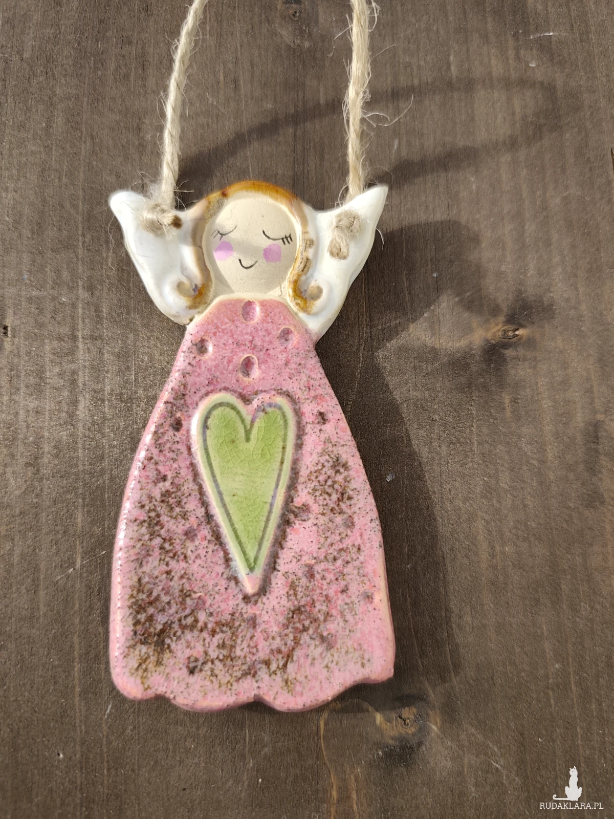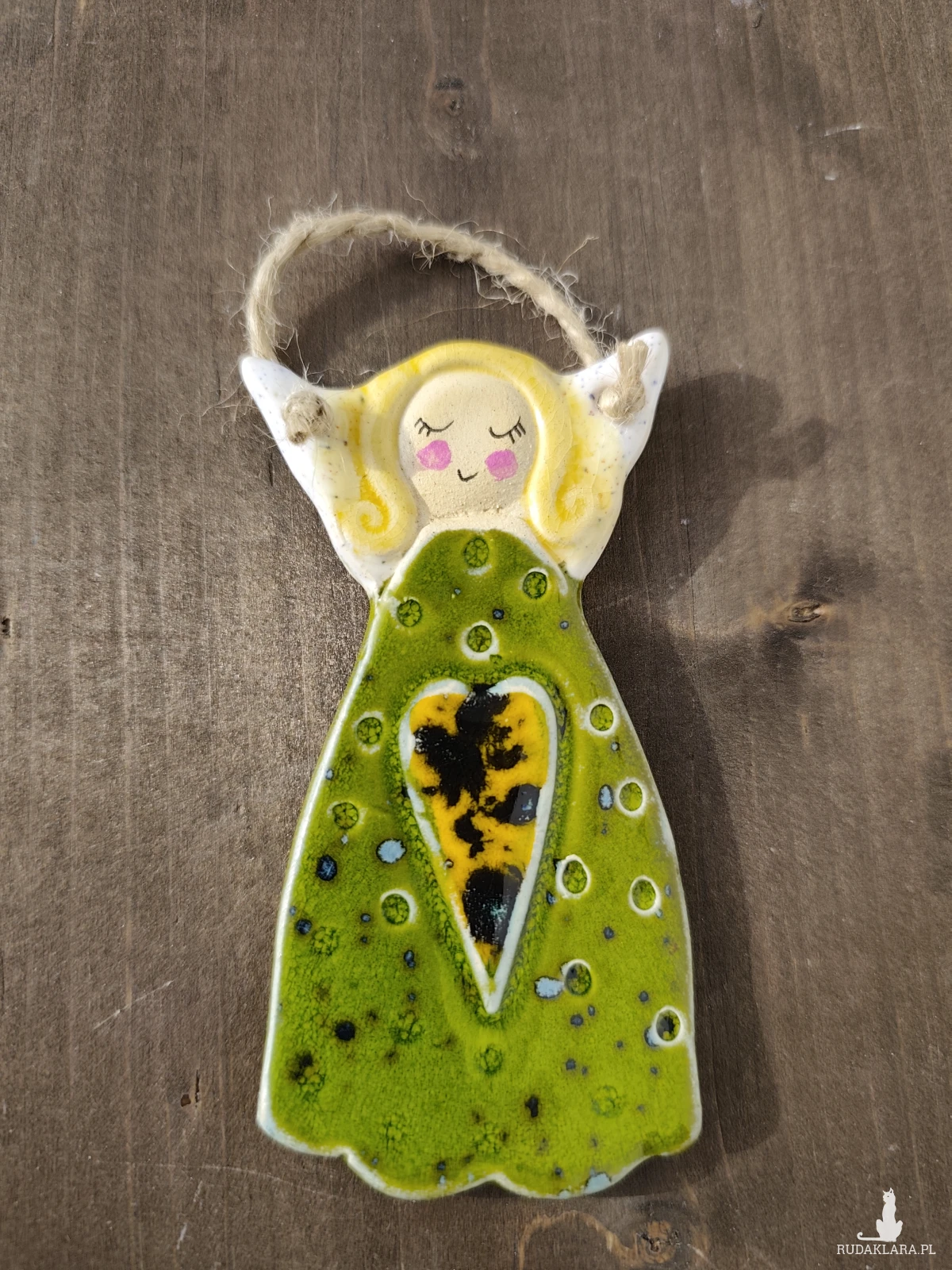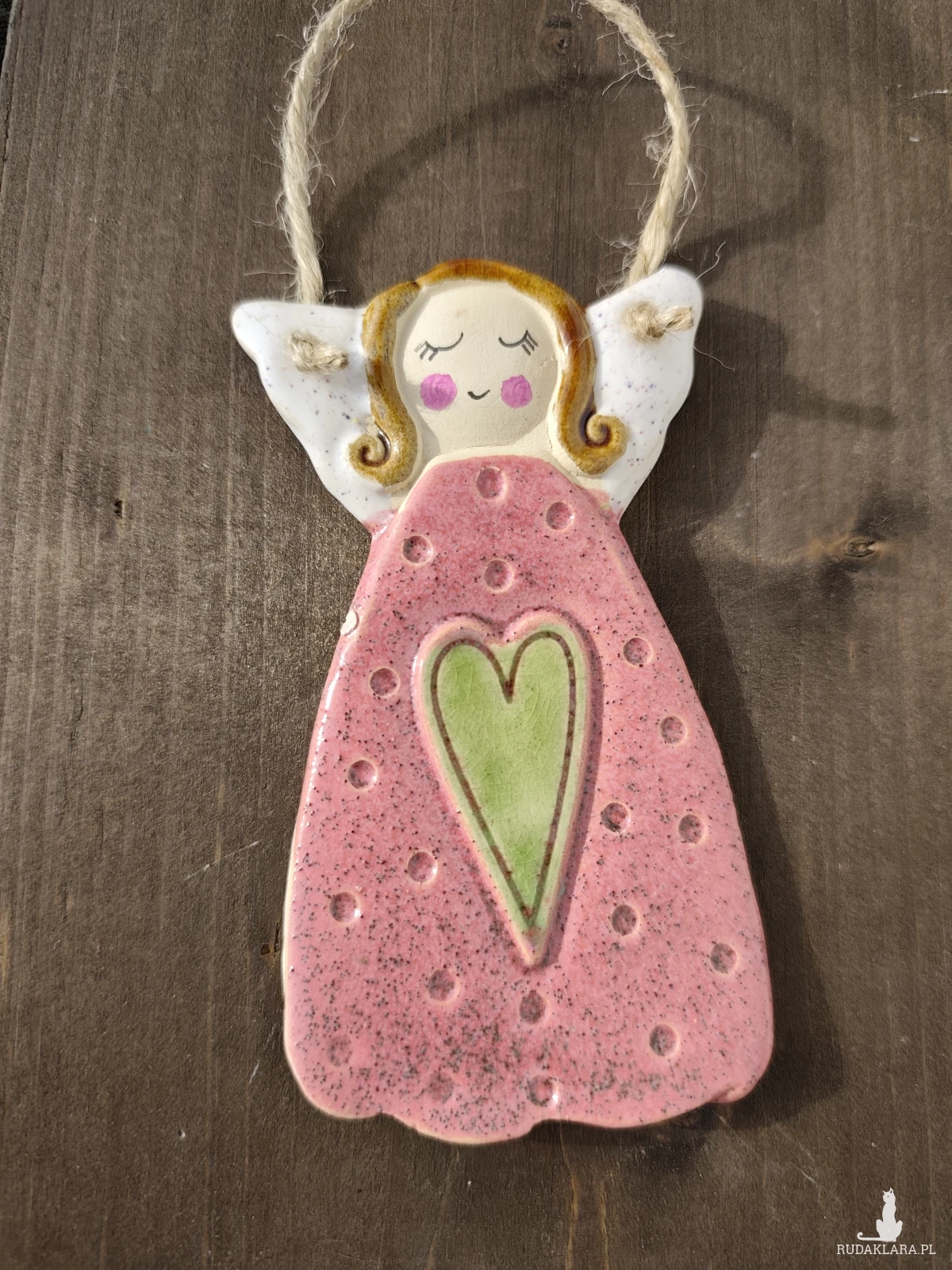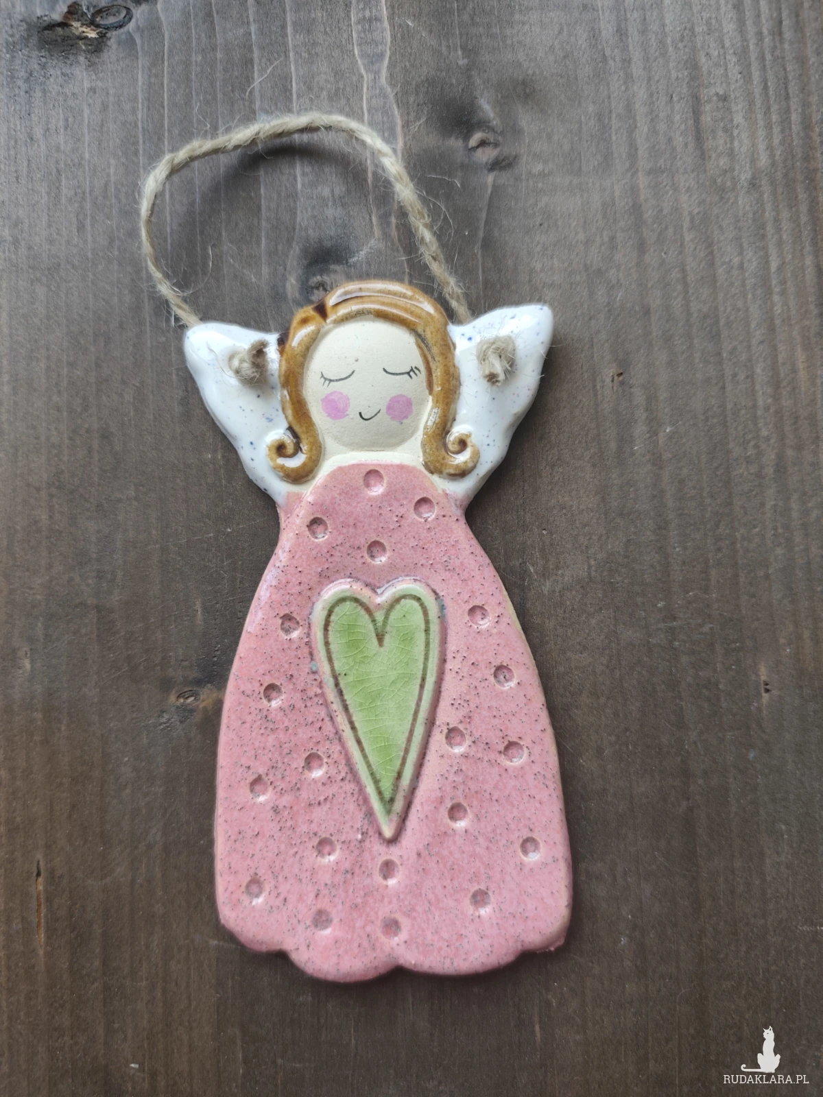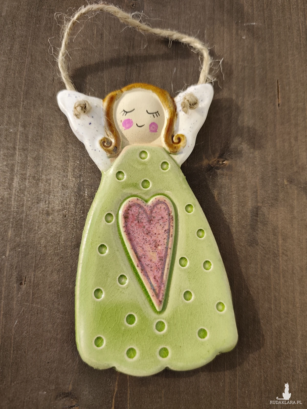 Aniołek ceramiczny wykonany z jasnej gliny, szkliwiony i dwukrotnie wypalany w piecu ceramicznym. polecam