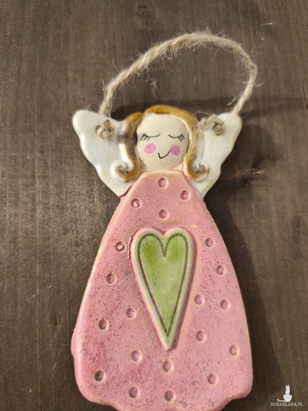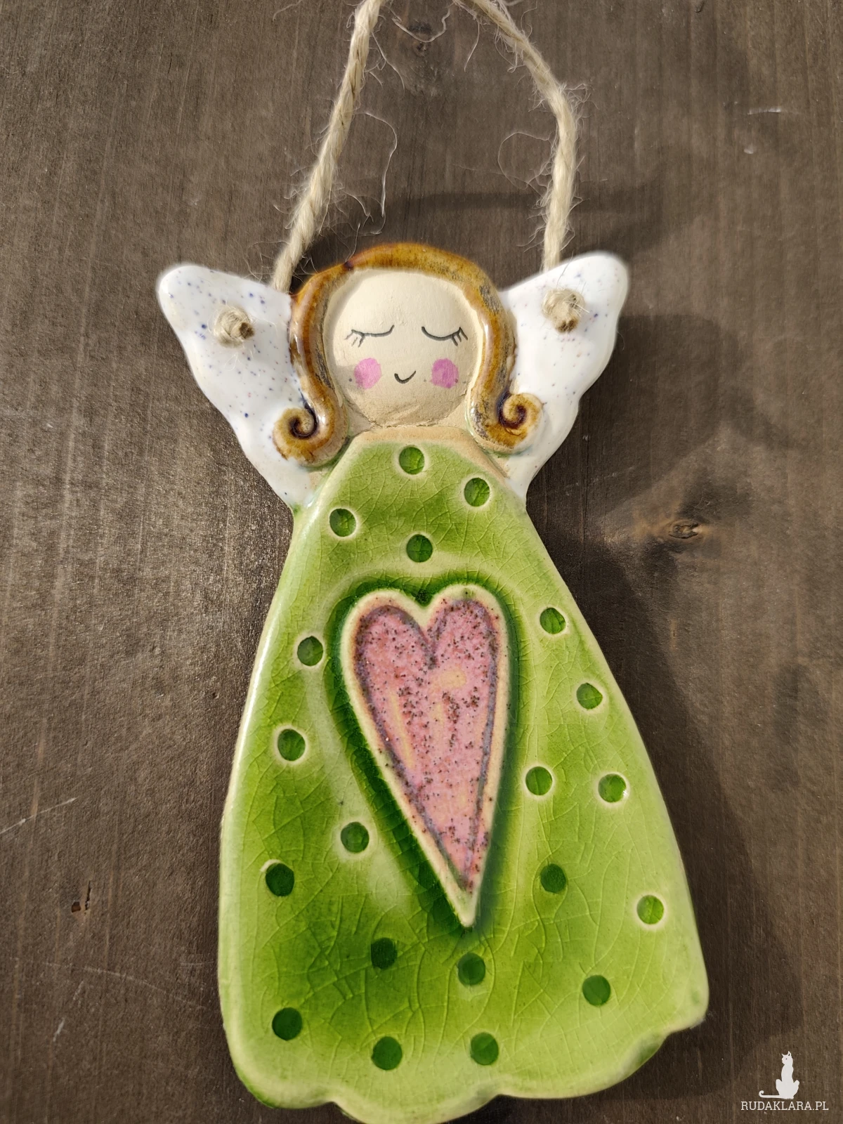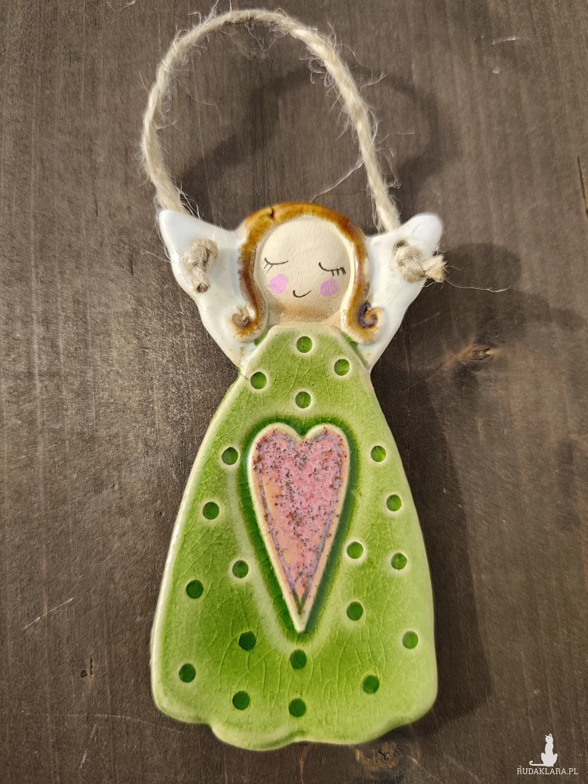Aniołek ceramiczny wykonany z jasnej gliny, szkliwiony i dwukrotnie wypalany w piecu ceramicznym. polecam
