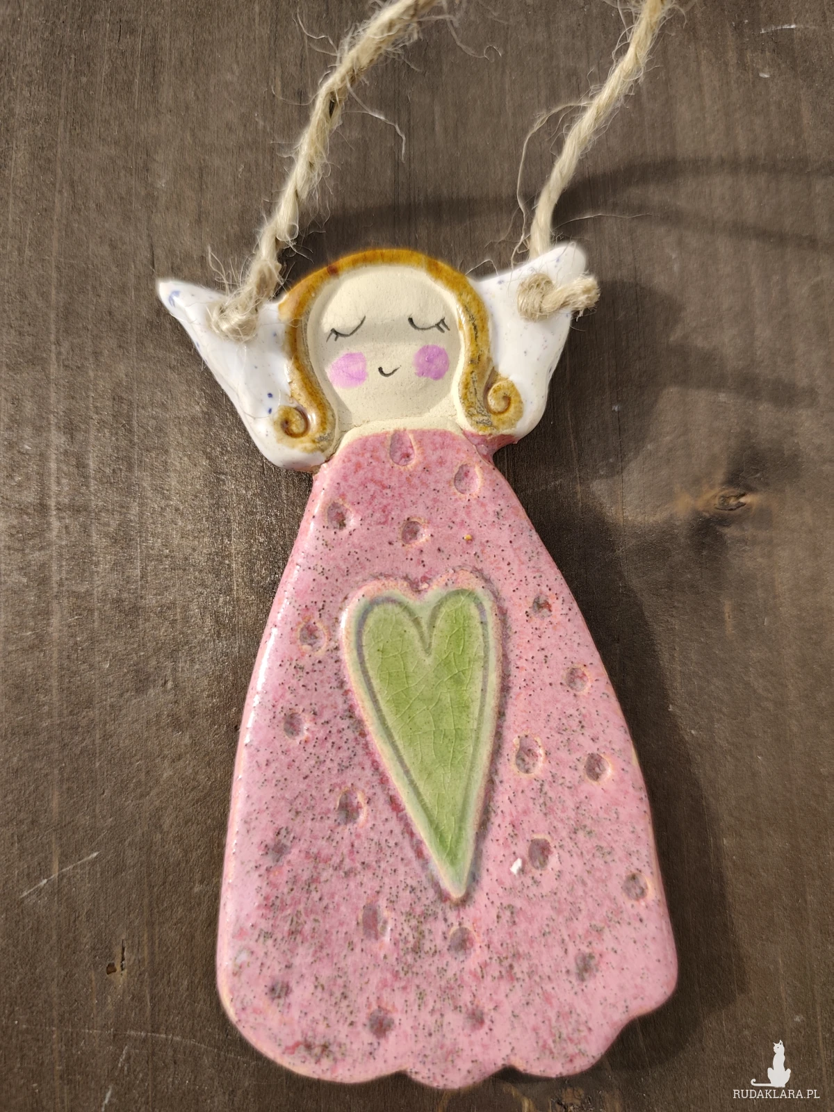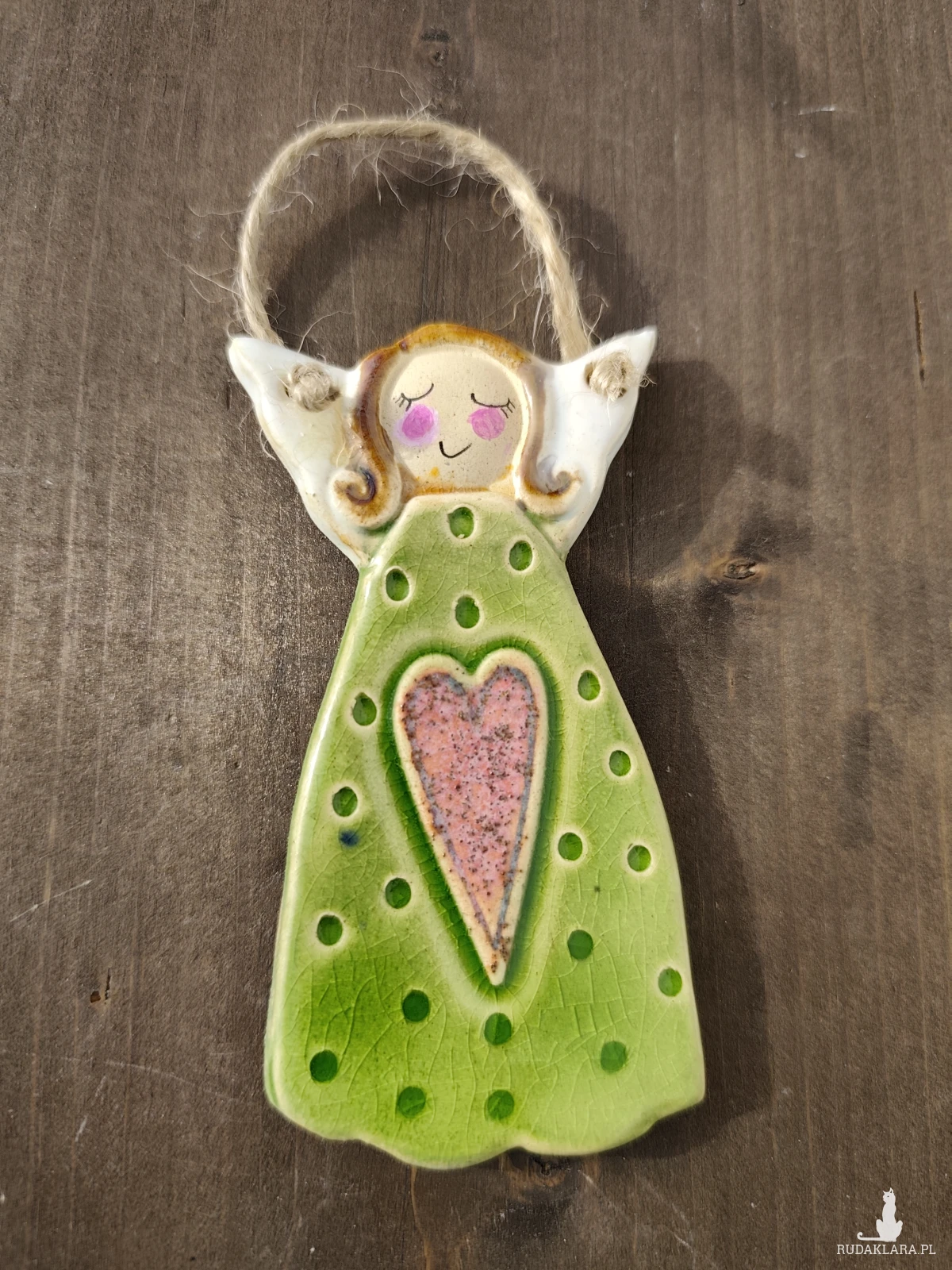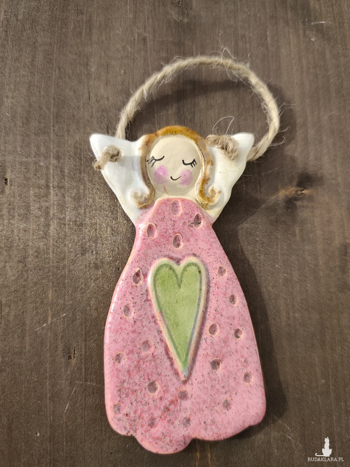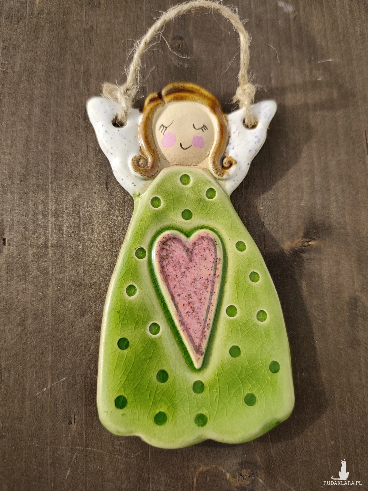 Aniołek ceramiczny wykonany z jasnej gliny, szkliwiony i dwukrotnie wypalany w piecu ceramicznym. polecam