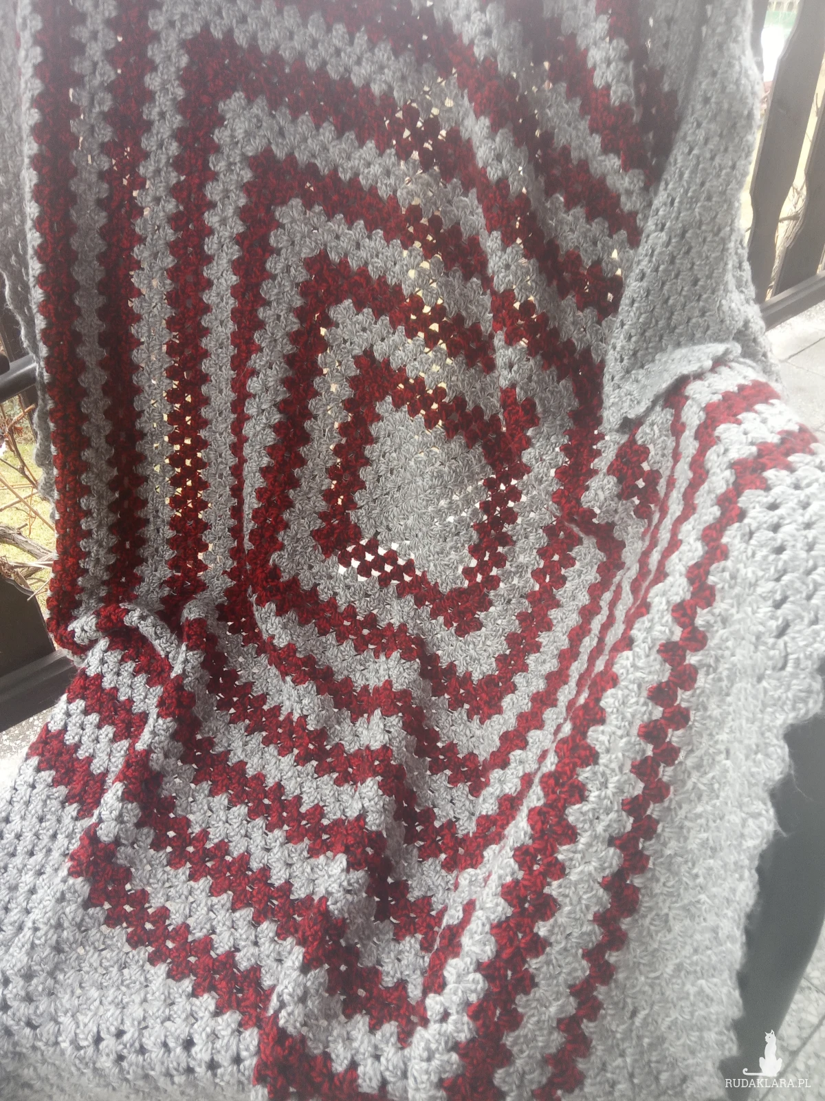 Koc, narzuta wykonana ręcznie z włóczki akrylowej. Sprawdzi się w domu,