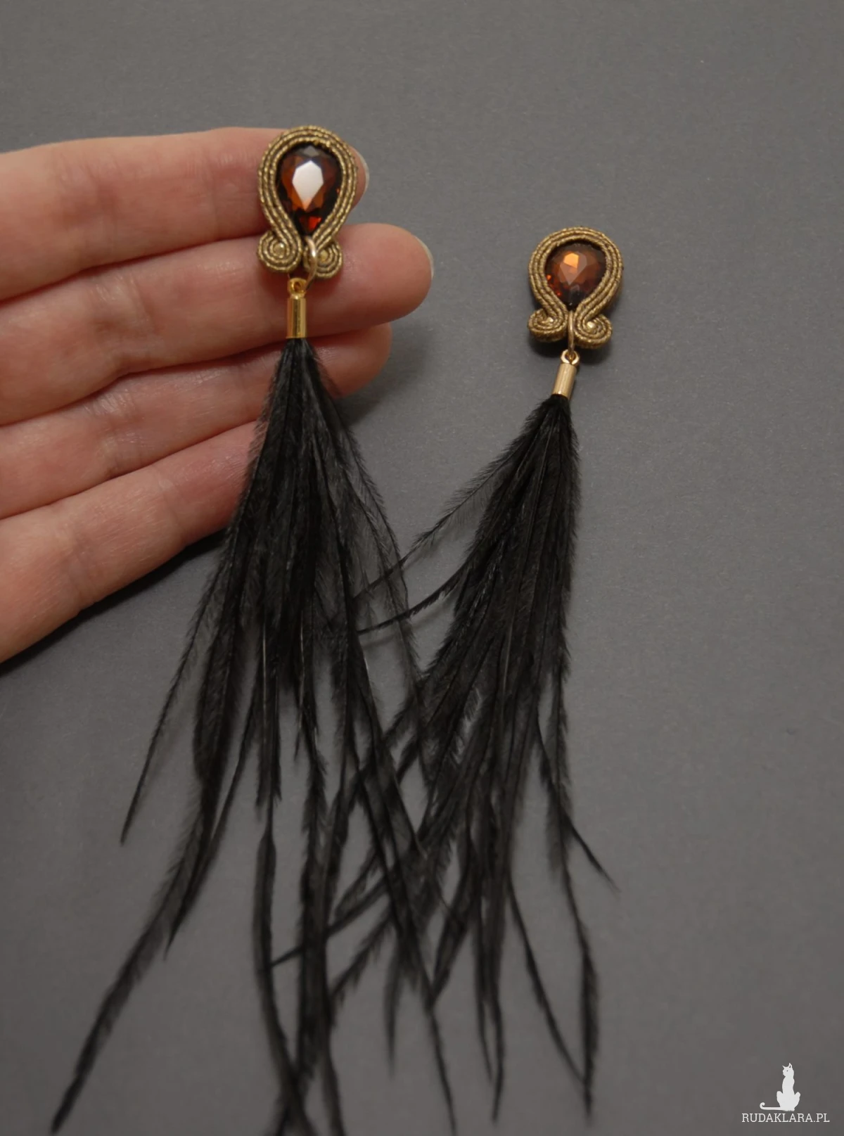 brązowo-czarne kolczyki lub klipsy sutasz z piórami