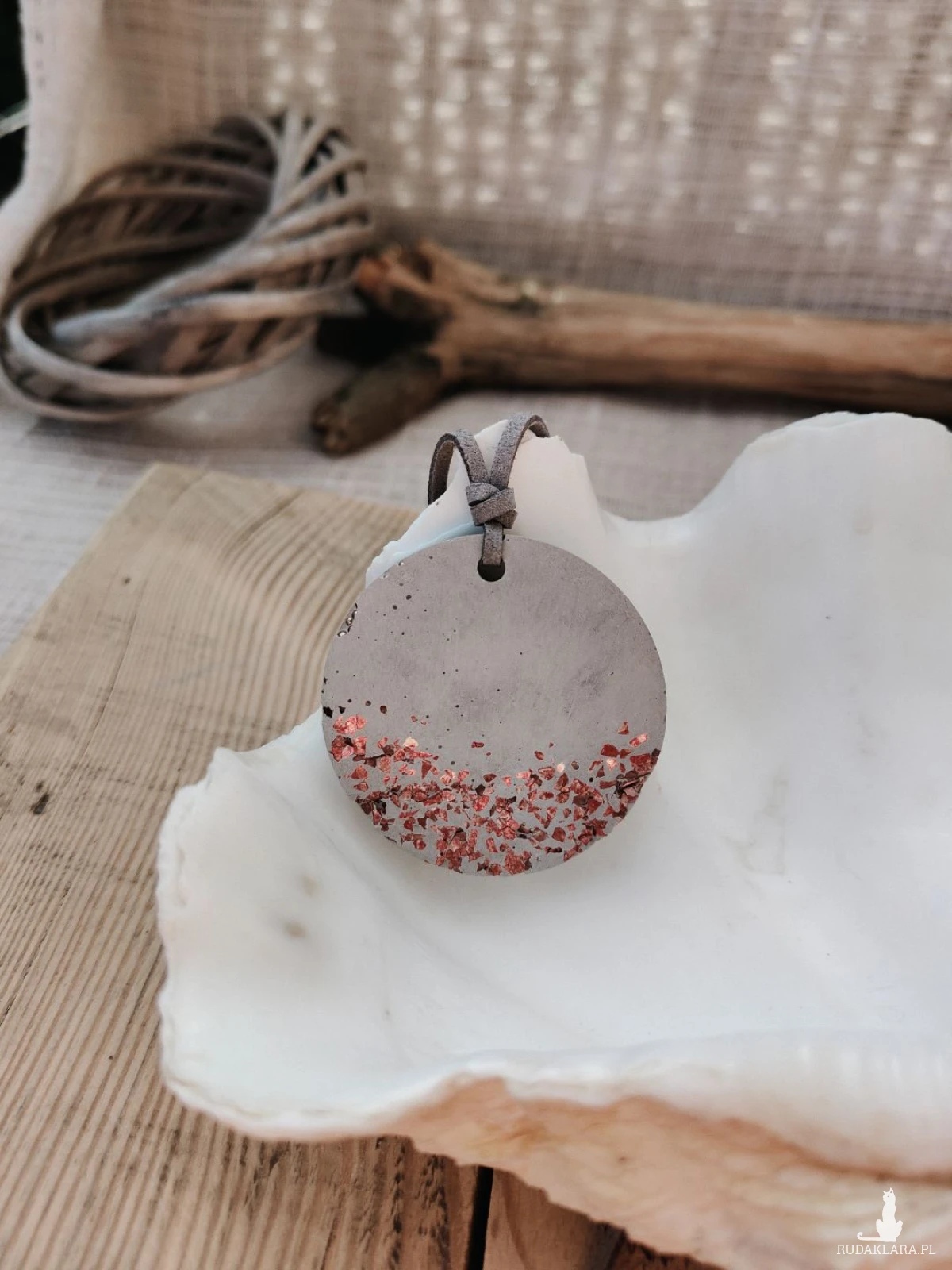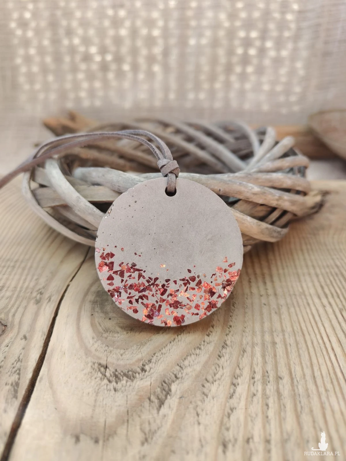 Wyjątkowy wisior wykonany z betonu to propozycja dla osób ceniących nowoczesny design i nieoczywiste materiały. Surowa, matowa powierzchnia została przełamana subtelnym, miedzianym akcentem, który dodaje całości charakteru i przyciąga wzrok. Zawieszony na rzemieniu z możliwością regulacji długości, doskonale dopasowuje się do różnych stylizacji – od codziennych po bardziej wyraziste. To biżuteria, która podkreśla indywidualność i wyróżnia się na tle klasycznych dodatków.