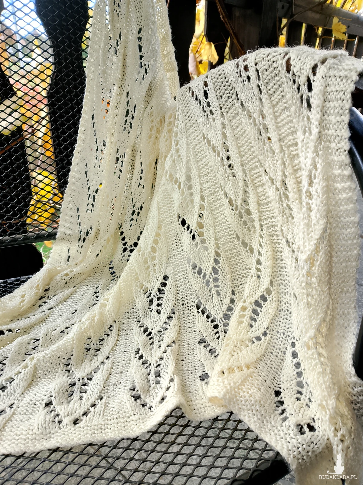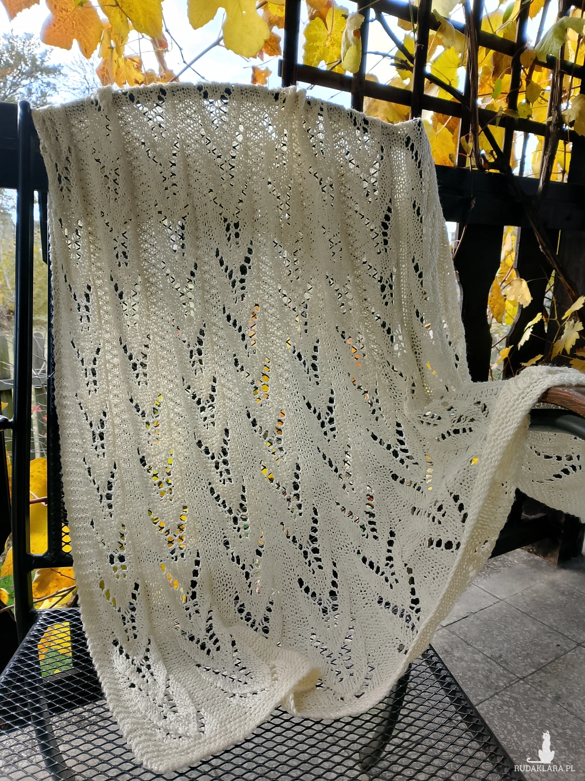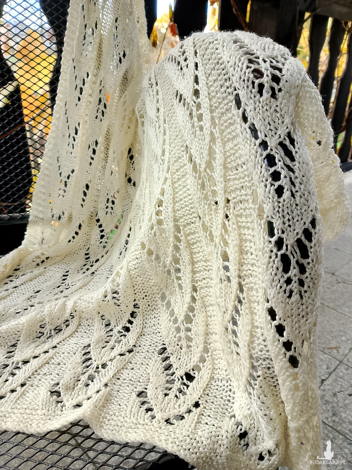 Mięciutki, ażurowy kocyk w całości wykonany ręcznie na drutach z delikatnej akrylowej włóczki. Sprawdzi się w domu, na spacerze, w podróży, do spania lub do sesji foto.