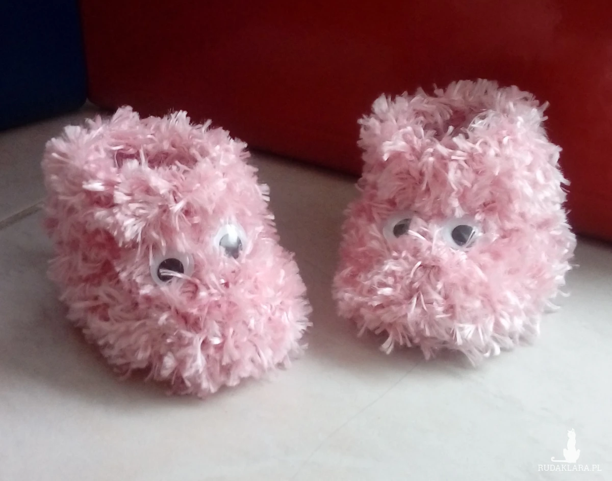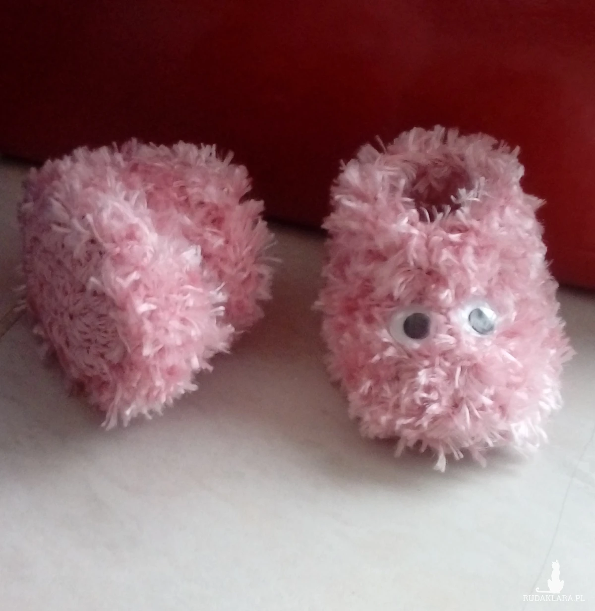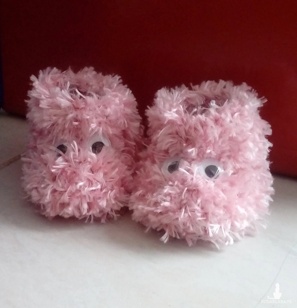 Wesołe buciki wykonane ręcznie. Bardzo wygodne, ciepłe i miłe w dotyku (nie gryzą). Rozgrzeją i otulą małe stópki, mogą być używane jako buciki lub skarpetki.