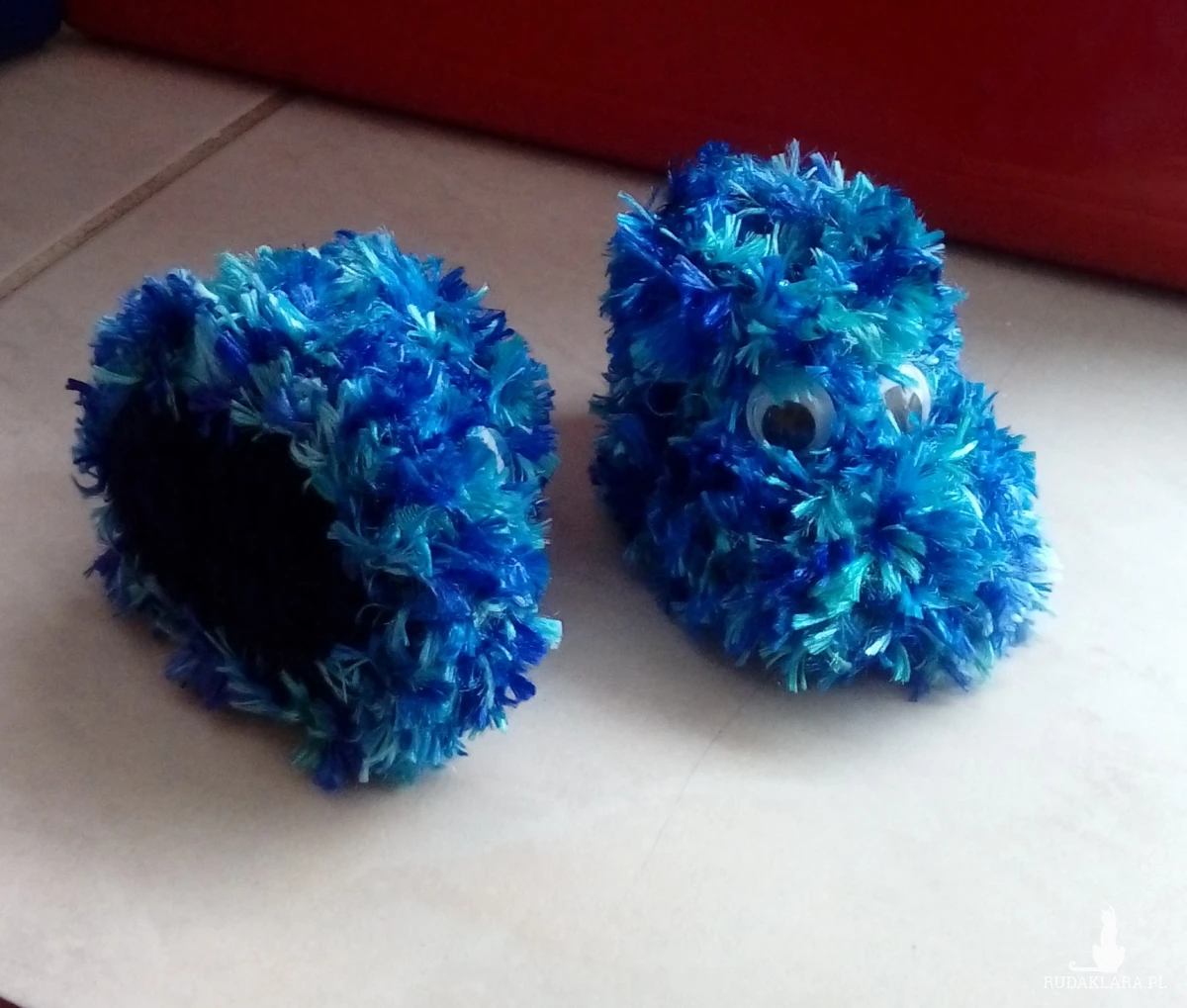Rozmiar: 8 cm, włóczka: akryl, kolor niebieski.