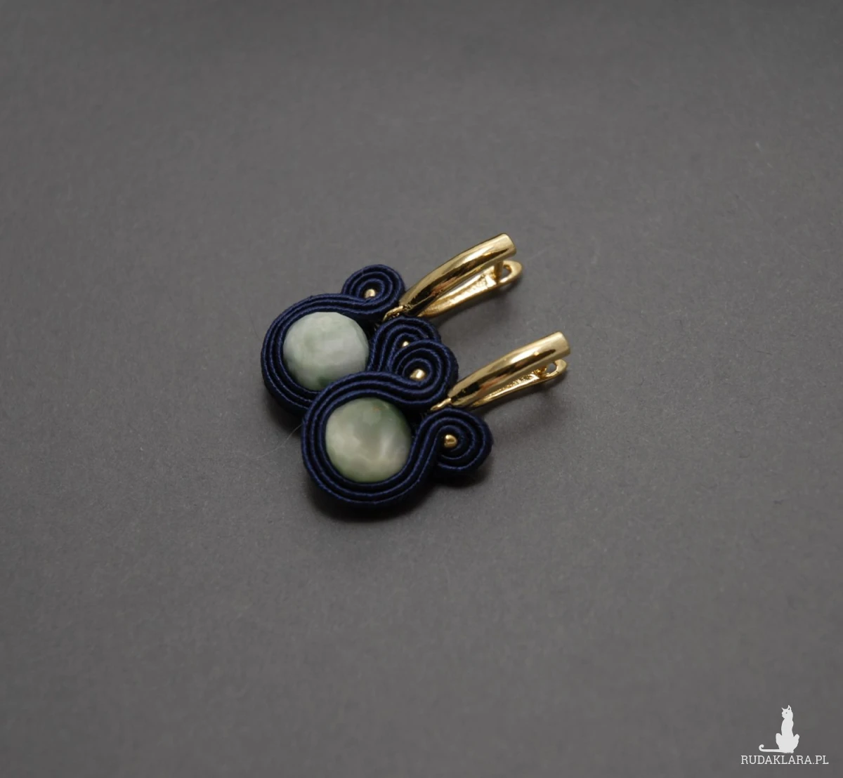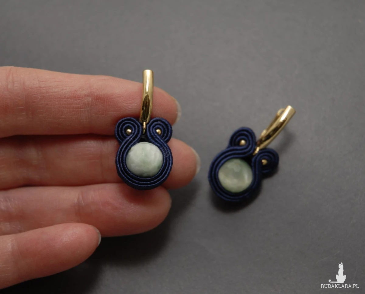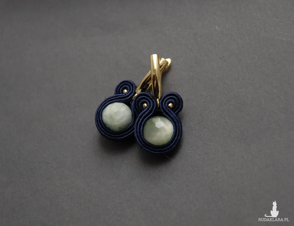 oferuję kolczyki zrobione techniką sutasz, ozdobione fasetowanymi angelitami pawimi i fasetowanymi agatami.