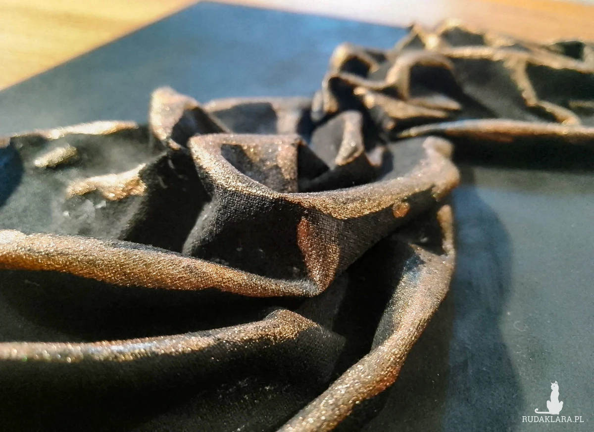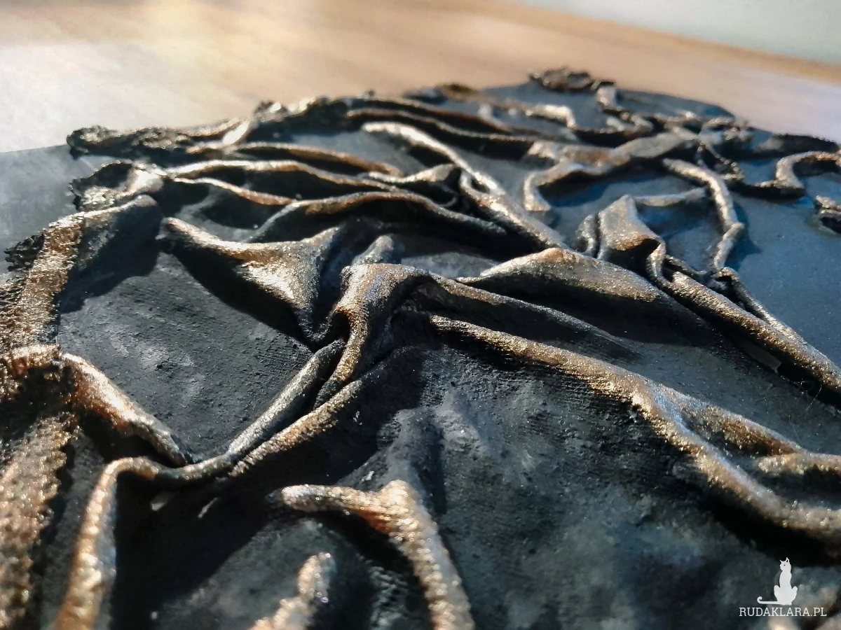 teksturą 3D z zastosowaniem modelarskiej pasty strukturalnej oraz farb akrylowych i metalicznych pigmentów