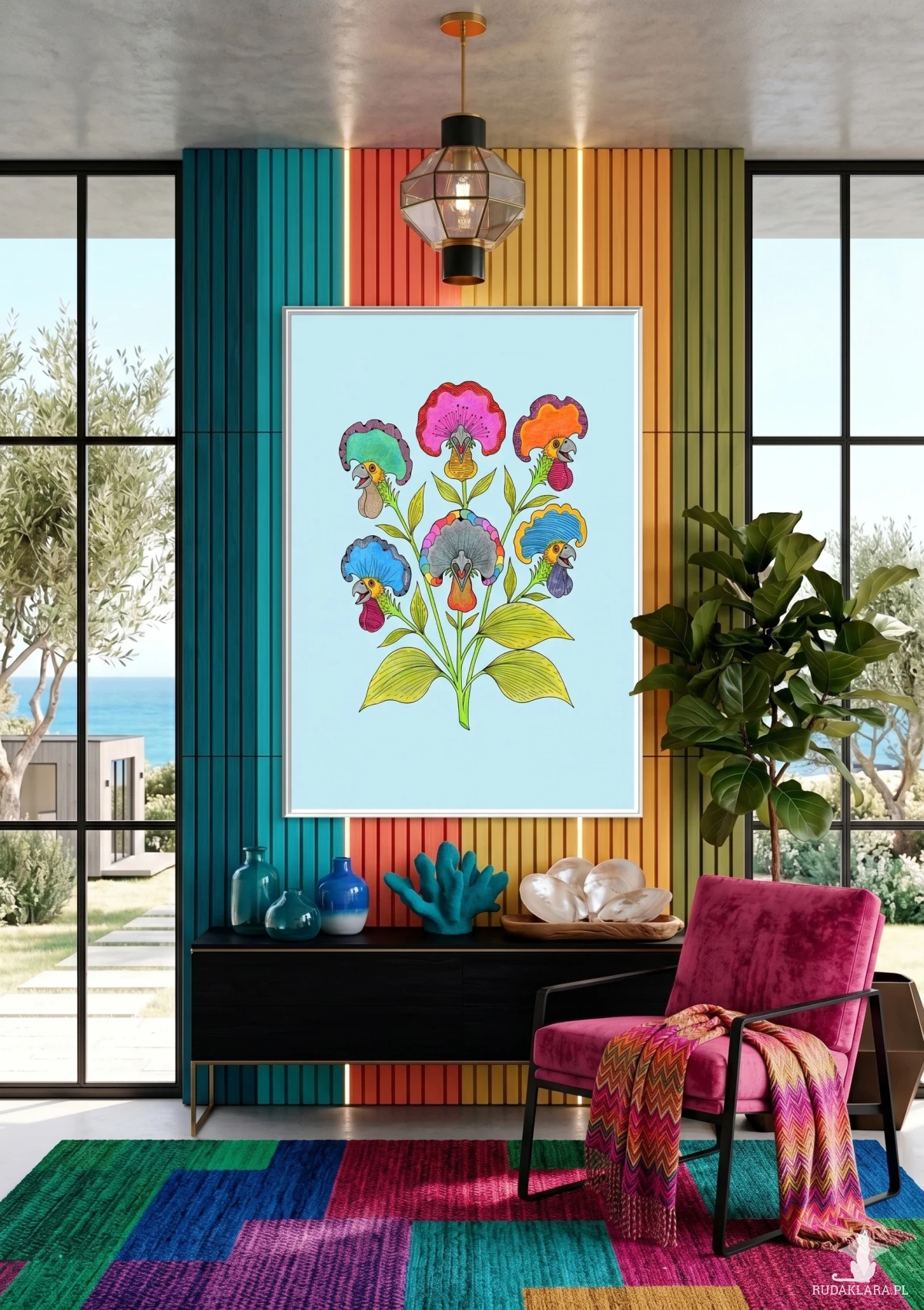 Rysunek jest pełen życia i humoru, dzięki czemu świetnie przełamie powagę nowoczesnego salonu lub doda charakteru kuchni i jadalni. Idealnie pasuje do wnętrz w stylu eklektycznym, gdzie ceni się oryginalne dodatki z przymrużeniem oka. Będzie doskonałym prezentem dla osoby, która kocha naturę w jej najbardziej fantazyjnym i radosnym wydaniu.