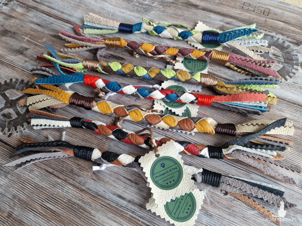 Zabawki dla psów wykonane z naturalnej skóry.
