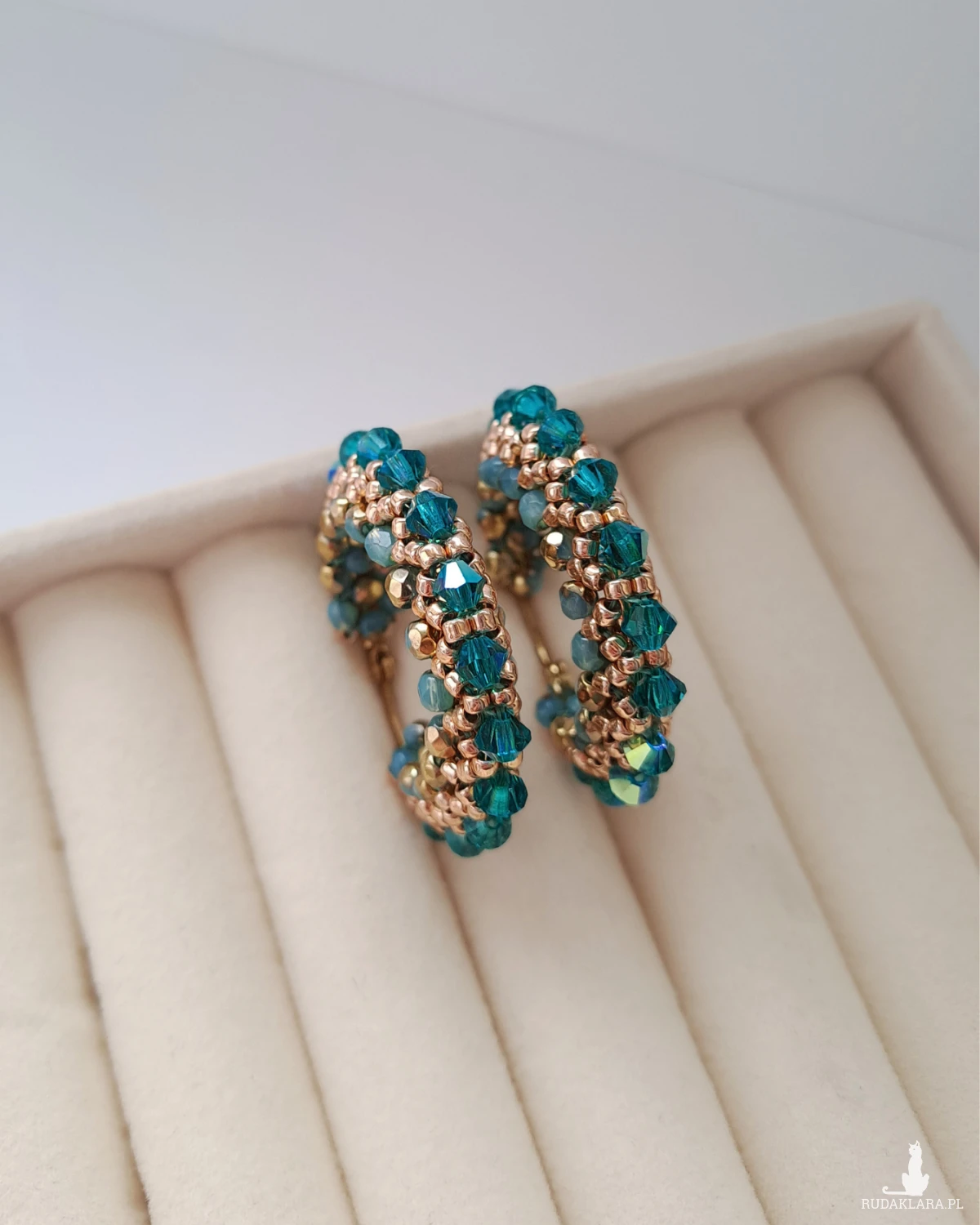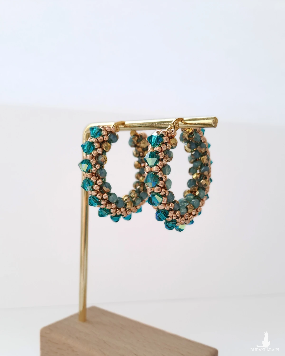 Kolczyki Koła z Kryształów Preciosa i Koralików - AURA Blue Zircon