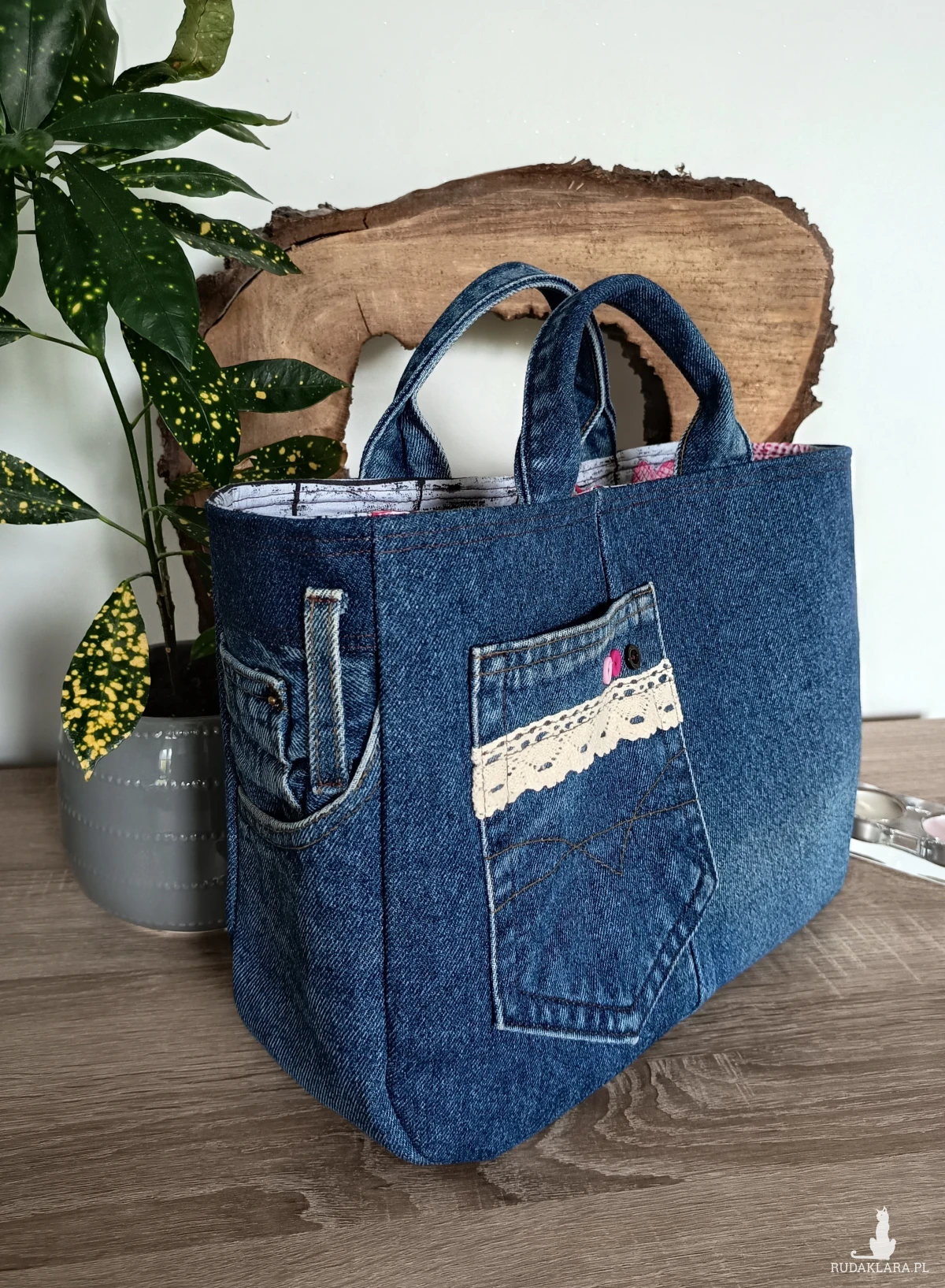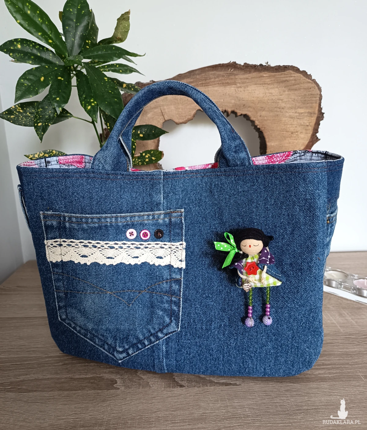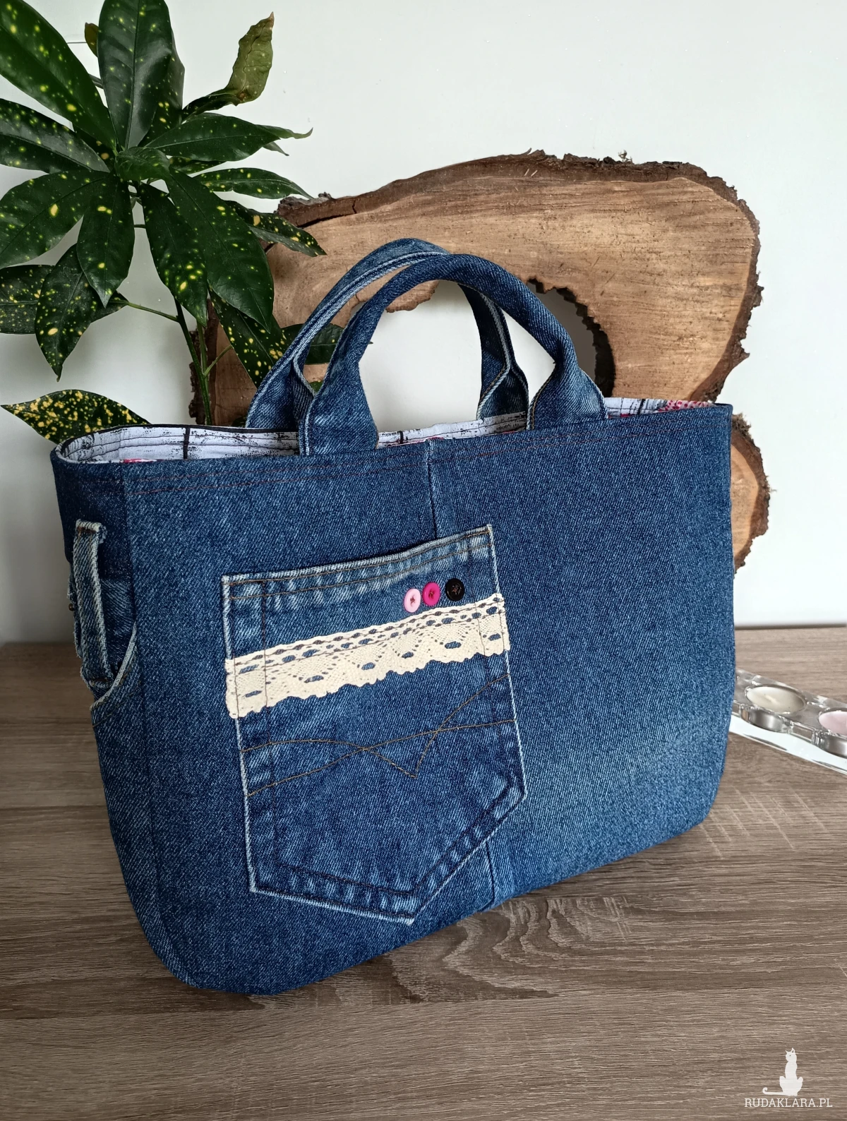 Torebka damska wykonana z jeansu z dodatkowym motywem koronki. Idealna na co dzień! Świetnie łączy modny wygląd z funkcjonalnością.