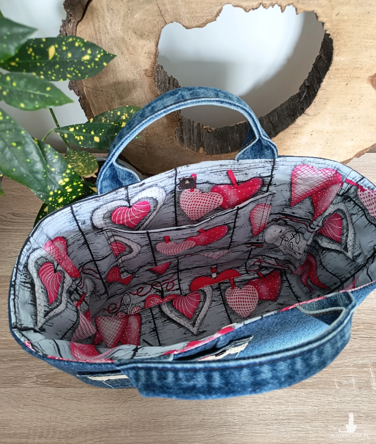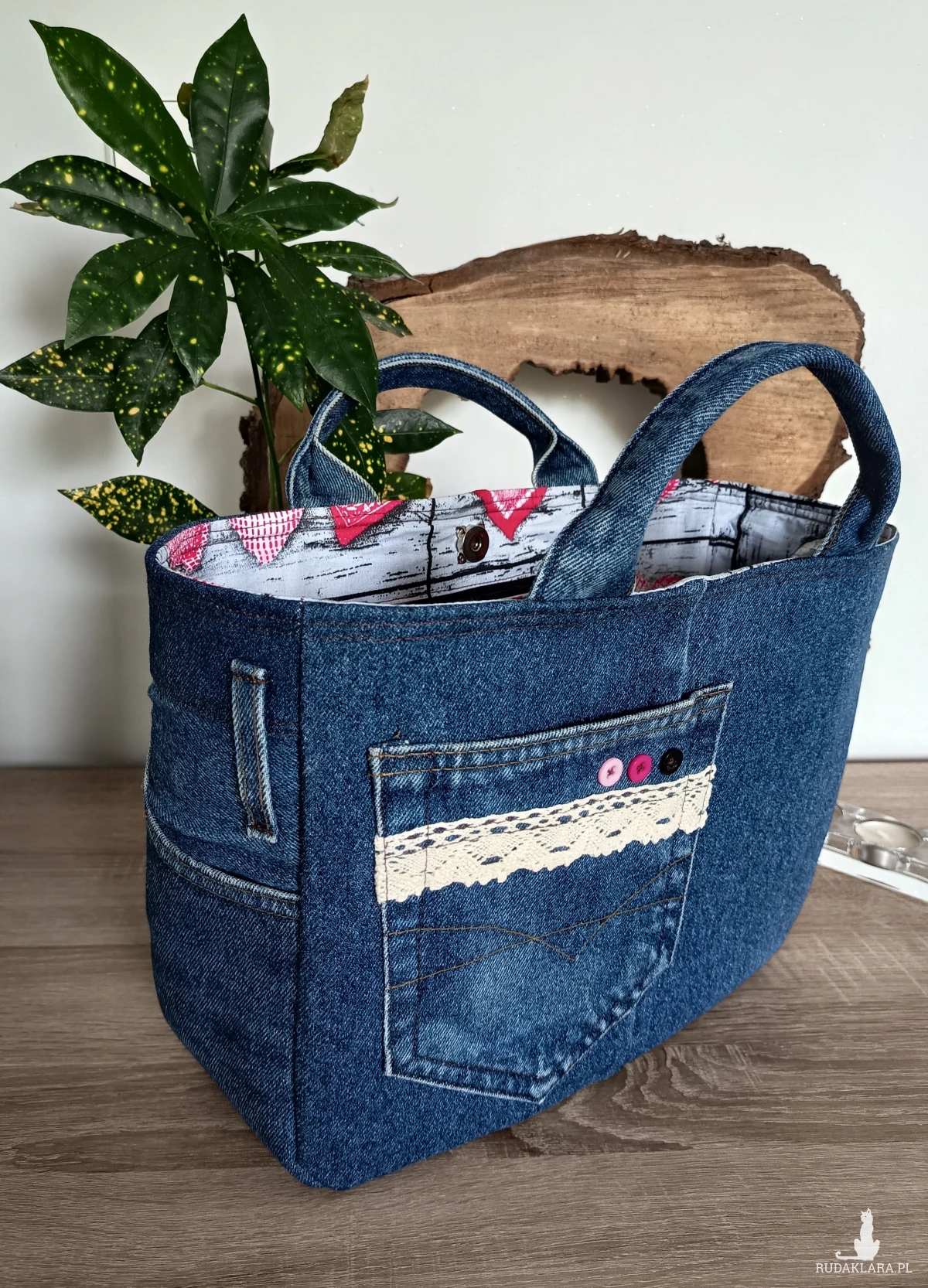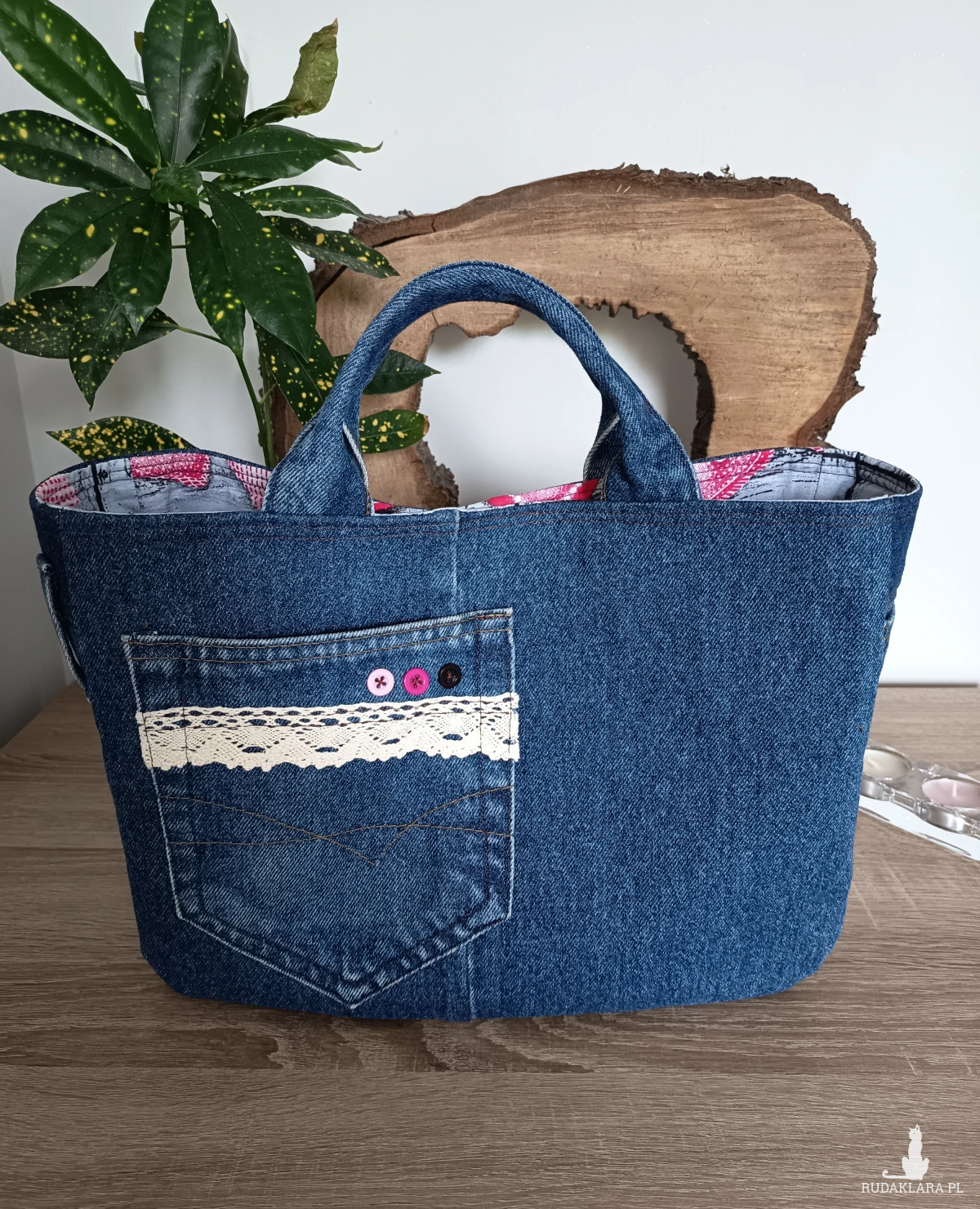 Torebka damska wykonana z jeansu z dodatkowym motywem koronki. Idealna na co dzień! Świetnie łączy modny wygląd z funkcjonalnością.