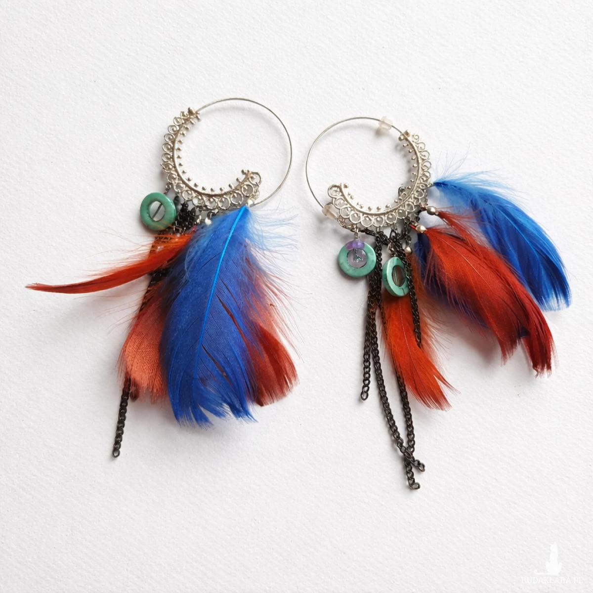 ręcznie robione kolczyki – długie pióra