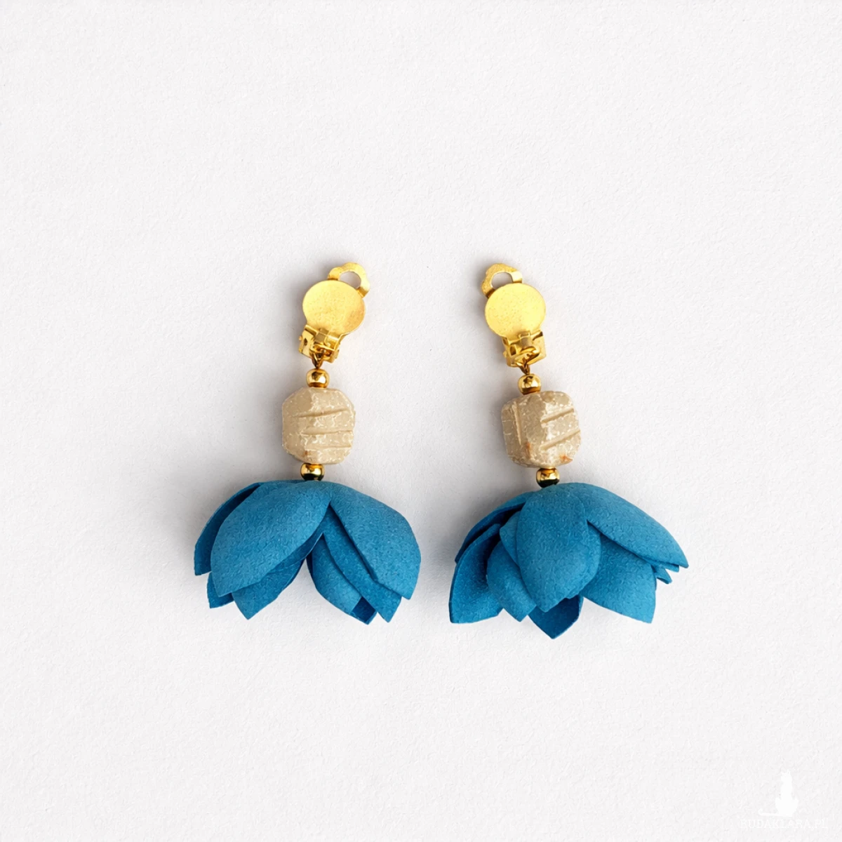 Ręcznie robione klipsy- niebieskie kwiaty i skarabeusz
