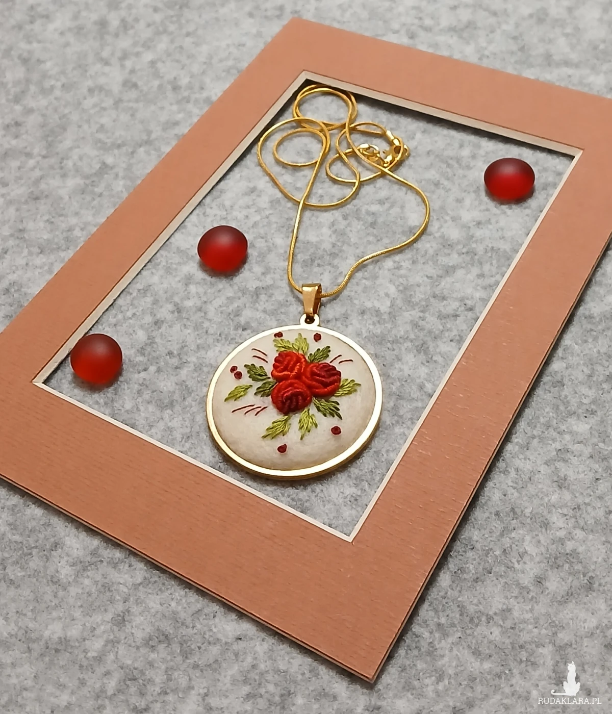 Klasyka kolorystyki oraz harmonia kompozycji to nieszablonowy wisior stworzony właśnie dla Ciebie. Elegancja bordo i ecru to wisior, który dobitnie podkreśli Twoją kreację i sprawi, że poczujesz się wyjątkowo.