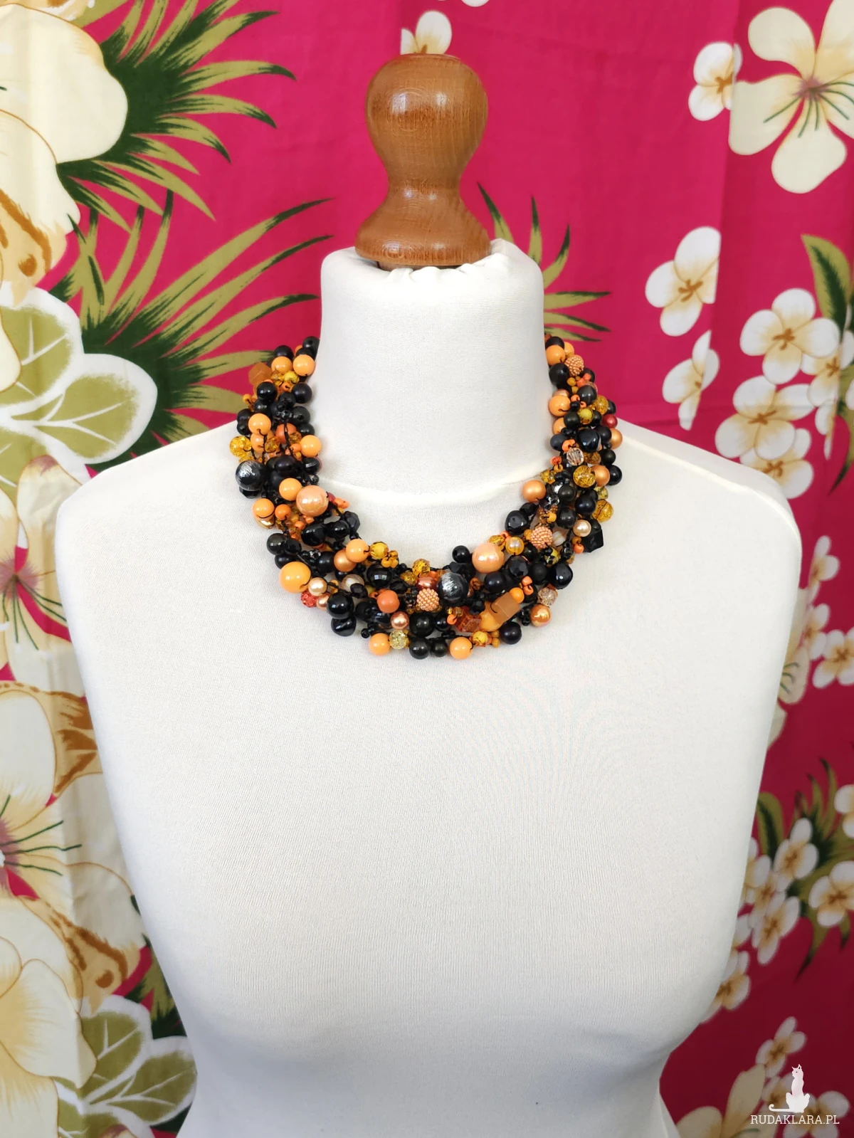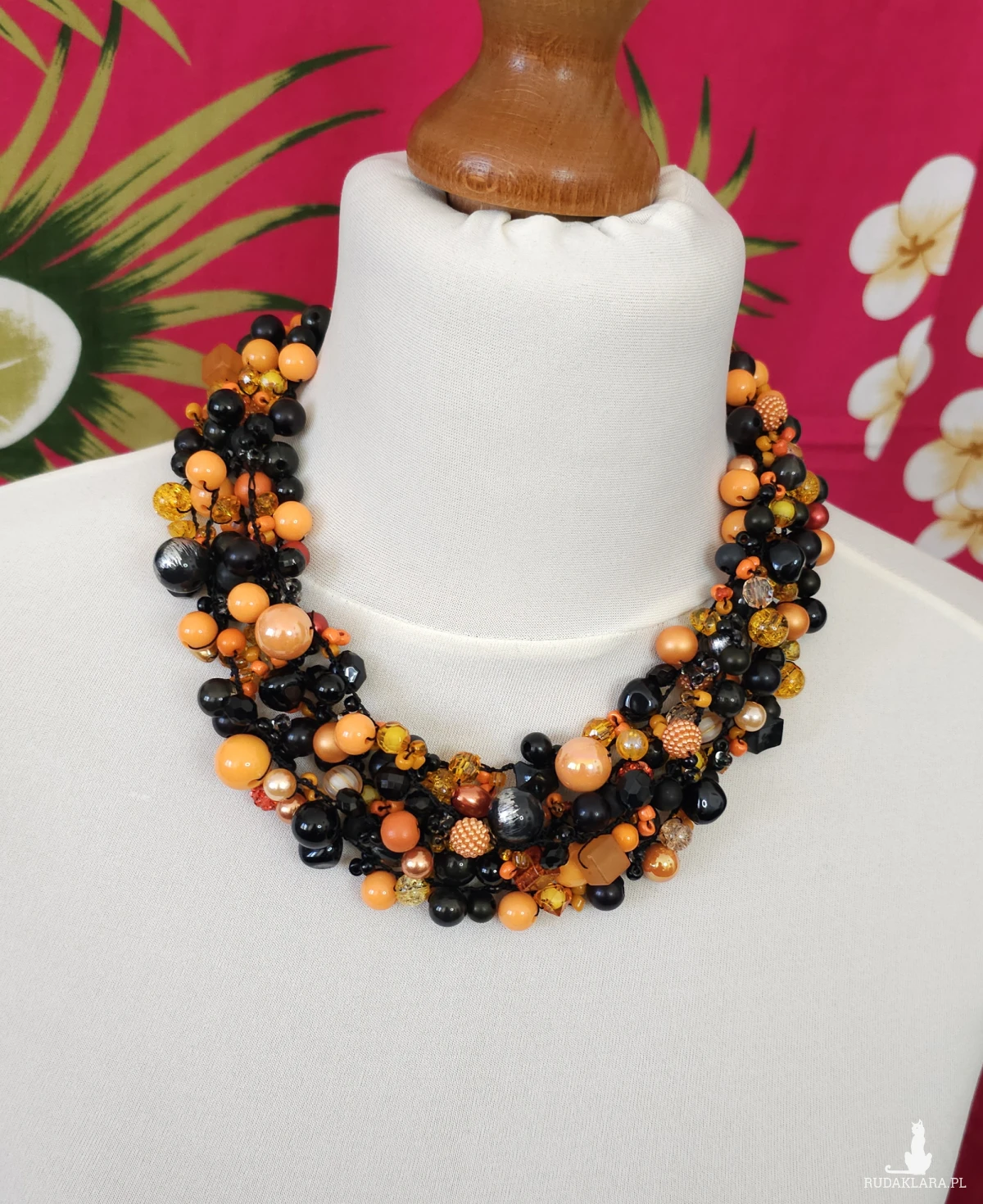 Poczuj energię kolorów z ręcznie robionym naszyjnikiem, który łączy w sobie elegancję czerni z radosnym blaskiem pomarańczu. To biżuteria, która nie pozwala przejść obok siebie obojętnie – idealna dla kobiet kochających wyraziste, autorskie dodatki.