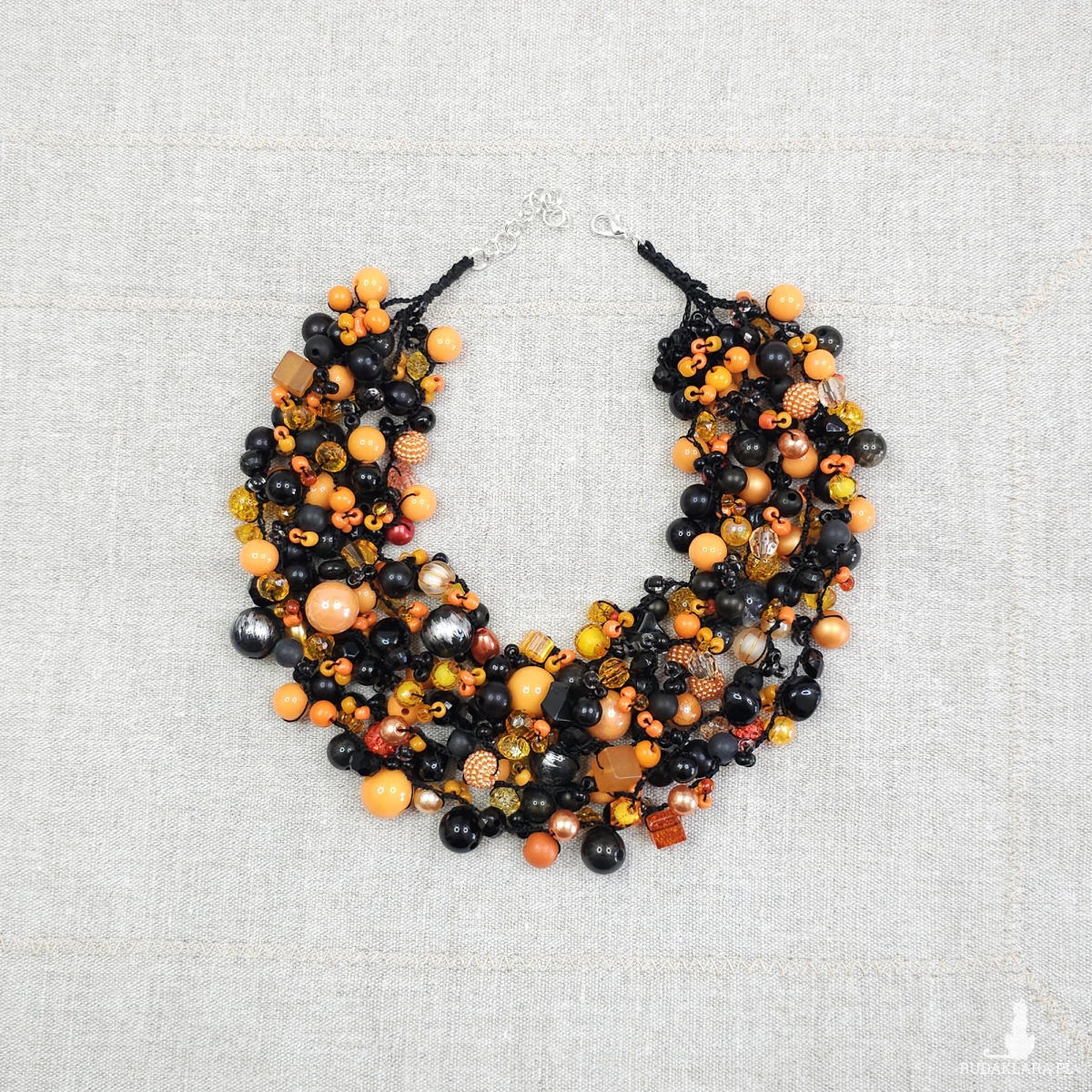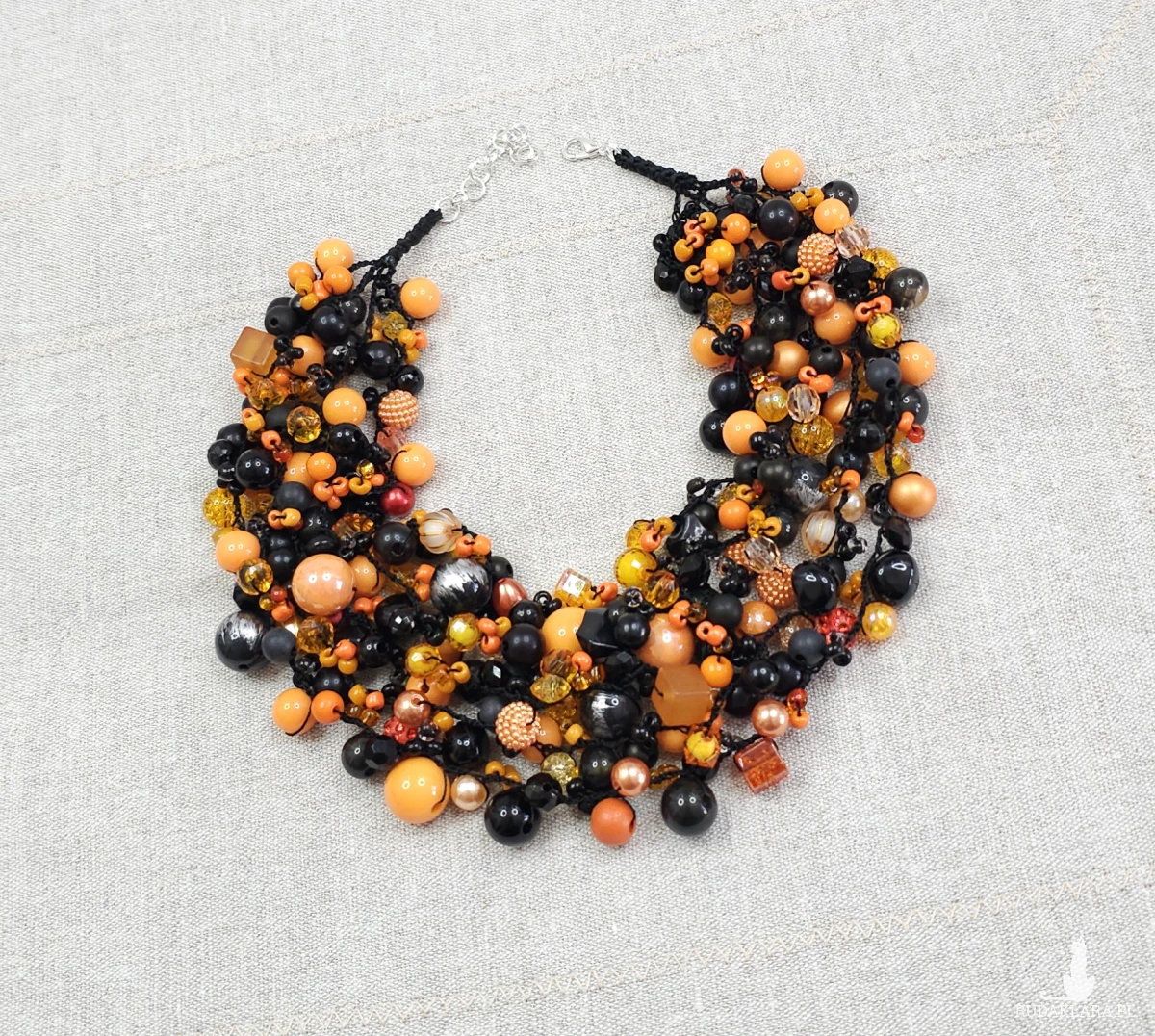 7054 „Bursztynowy Zmierzch” – Szydełkowy Naszyjnik Black & Orange