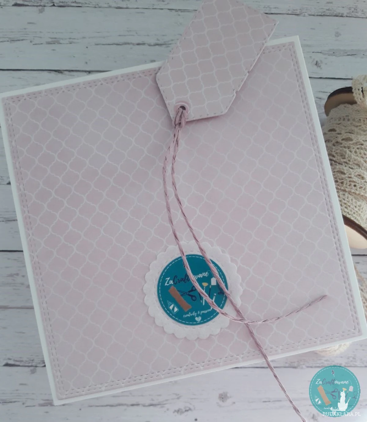 Do kartki dołączam GRATIS w postaci widocznej na zdjęciu etykietki, za pomocą której można podpisać upominek dla solenizantki i przyczepić ją do wstążki, którą obwiązany jest prezent, za pomocą sznureczka, który również znajduje się w zestawie.