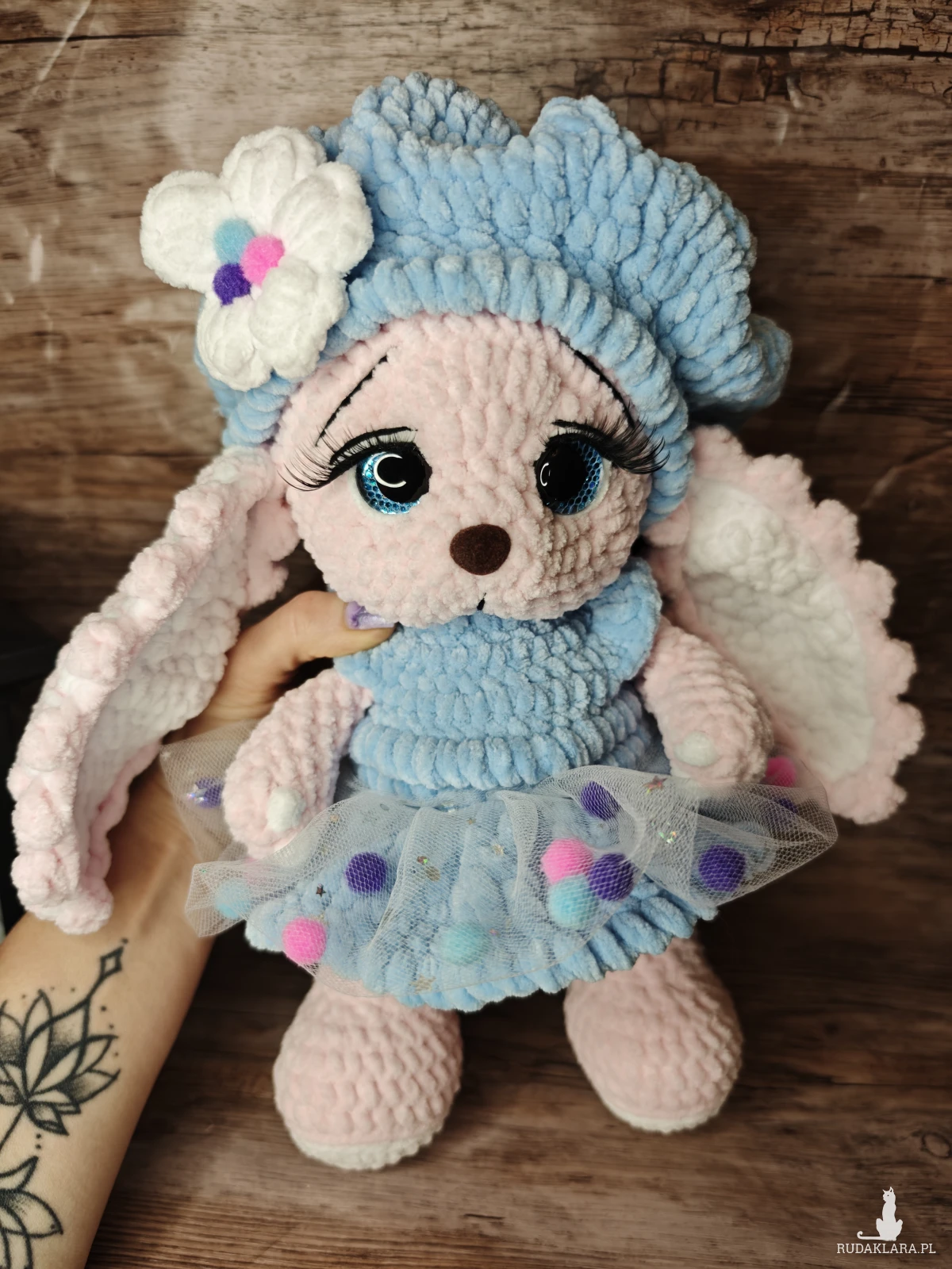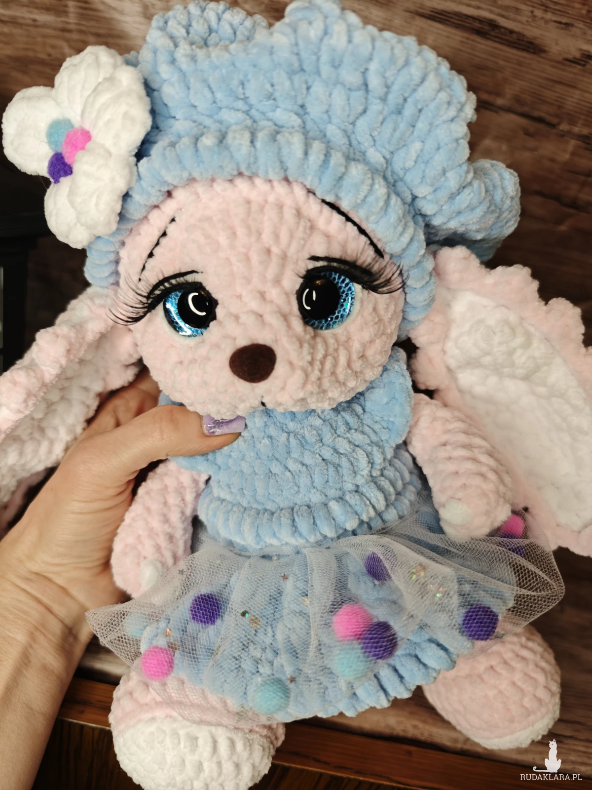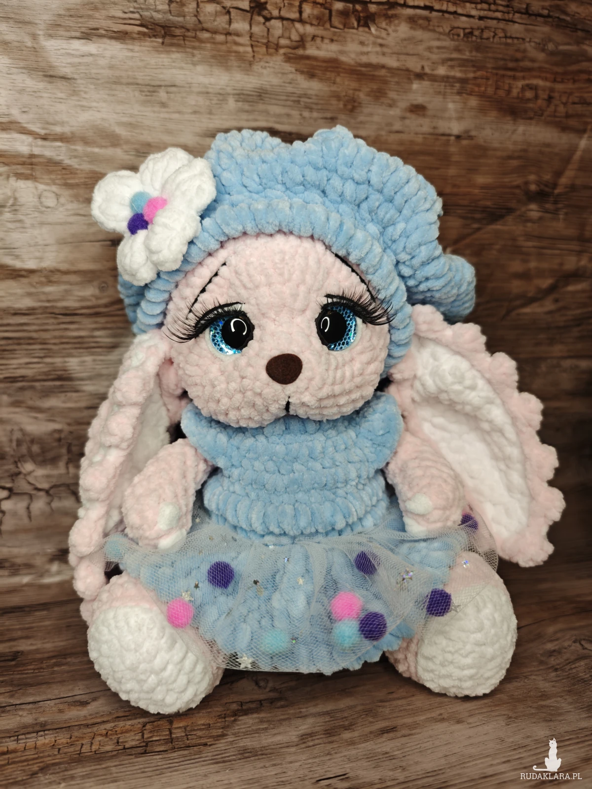 Maskotka króliczek wykonana na szydełku. Idealna do kolekcjonowania lub jako prezent dla miłośników królików i rękodzieła.