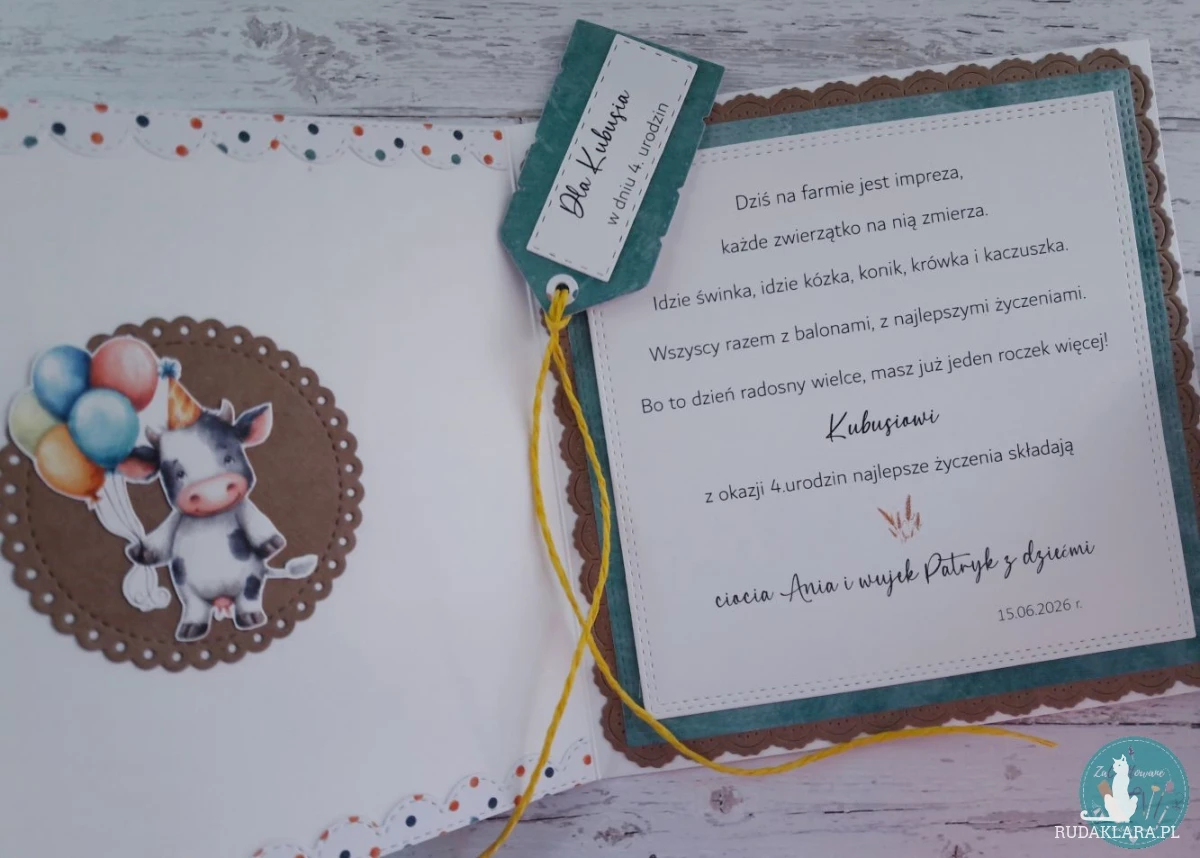 - dowolnego napisu z przodu np. „[Kubusiu], w dniu Twoich 4. urodzin”