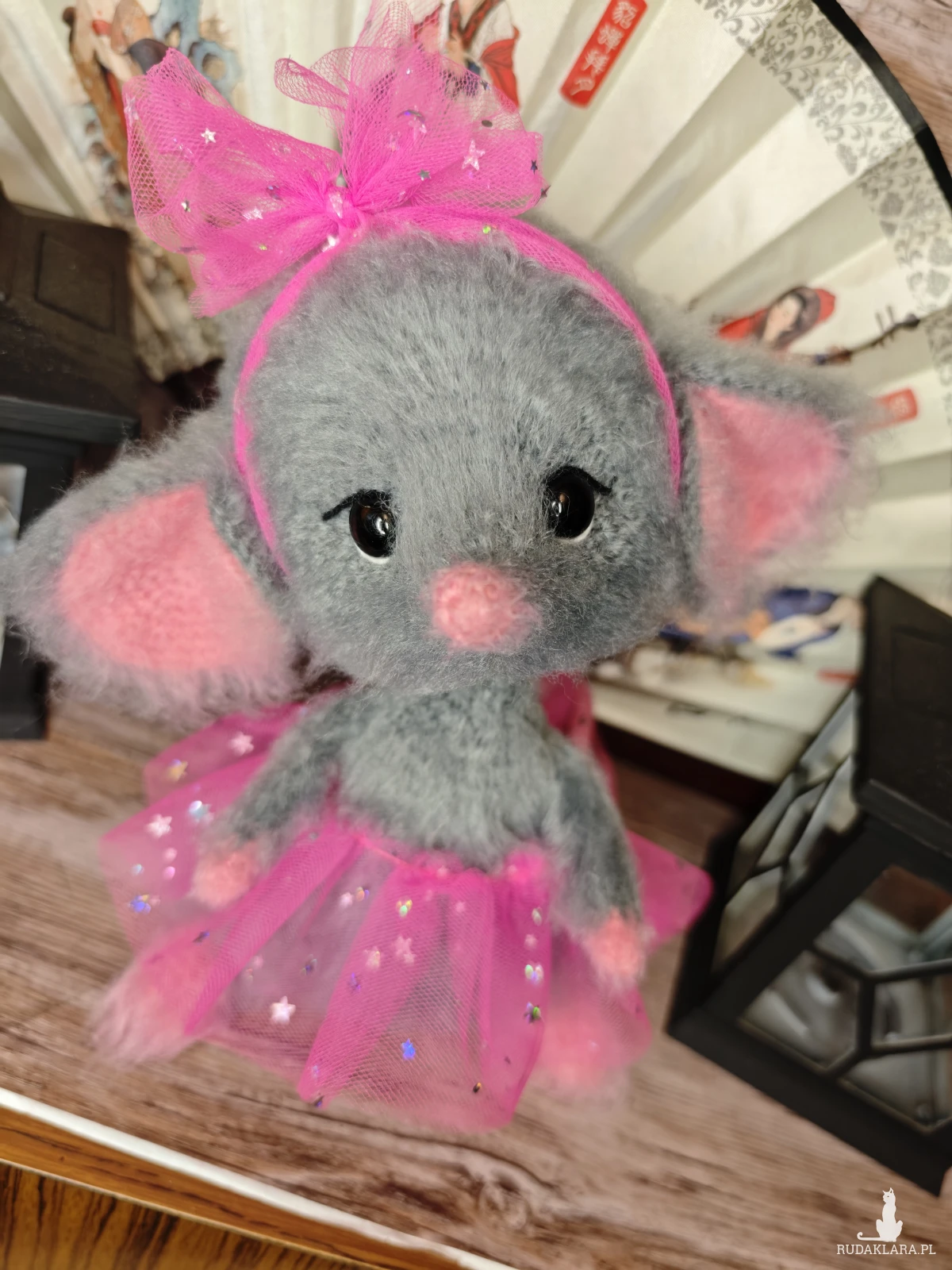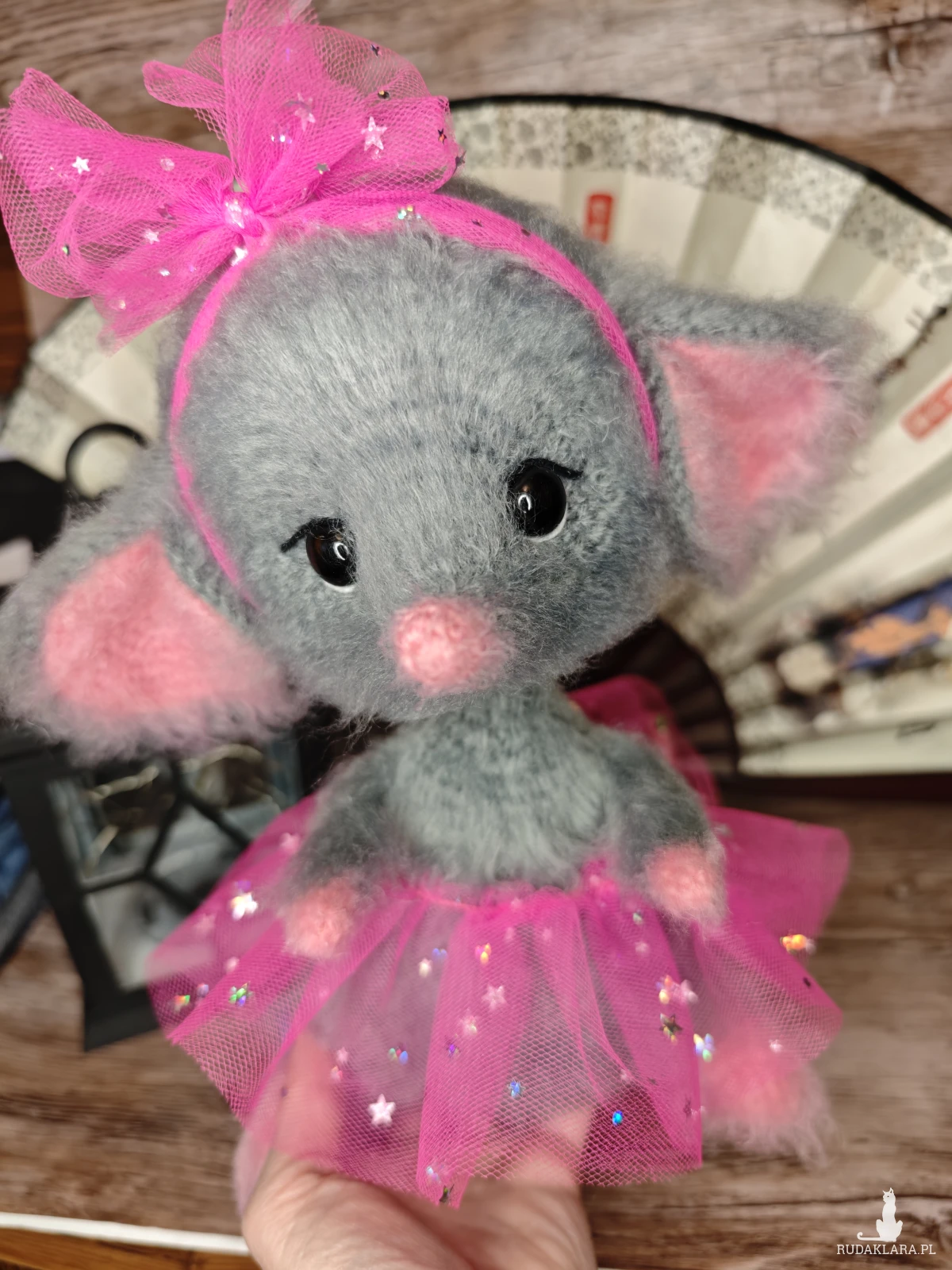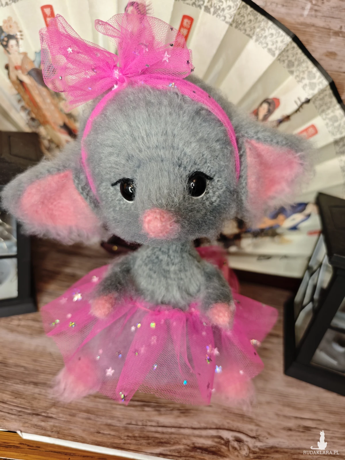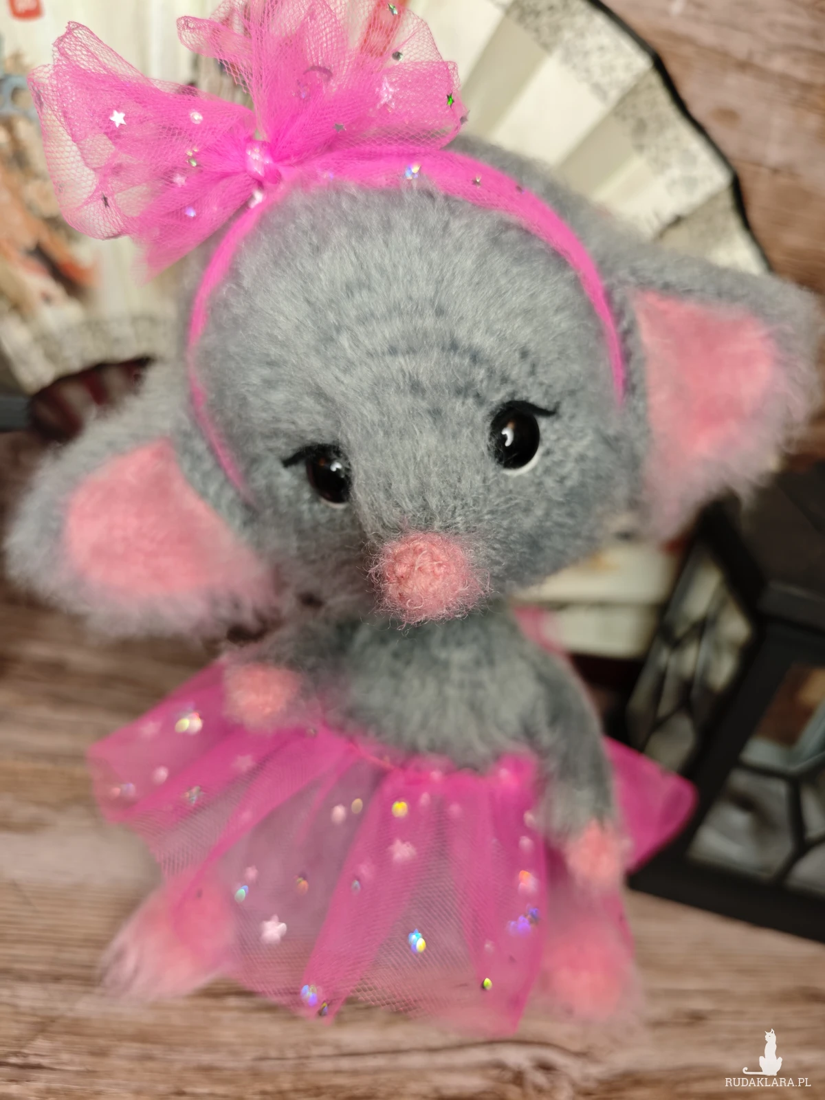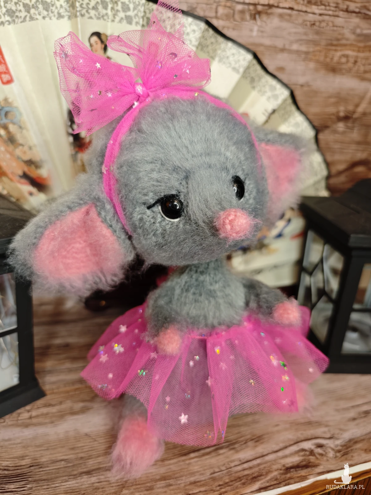 Wyjątkową, dużą myszkę wykonaną w całości ręcznie. Jest niesamowicie miękka, puszysta i ma uroczy, baletowy styl. Dzięki swoim rozmiarom i ruchomości prezentuje się jak prawdziwa postać z bajki!