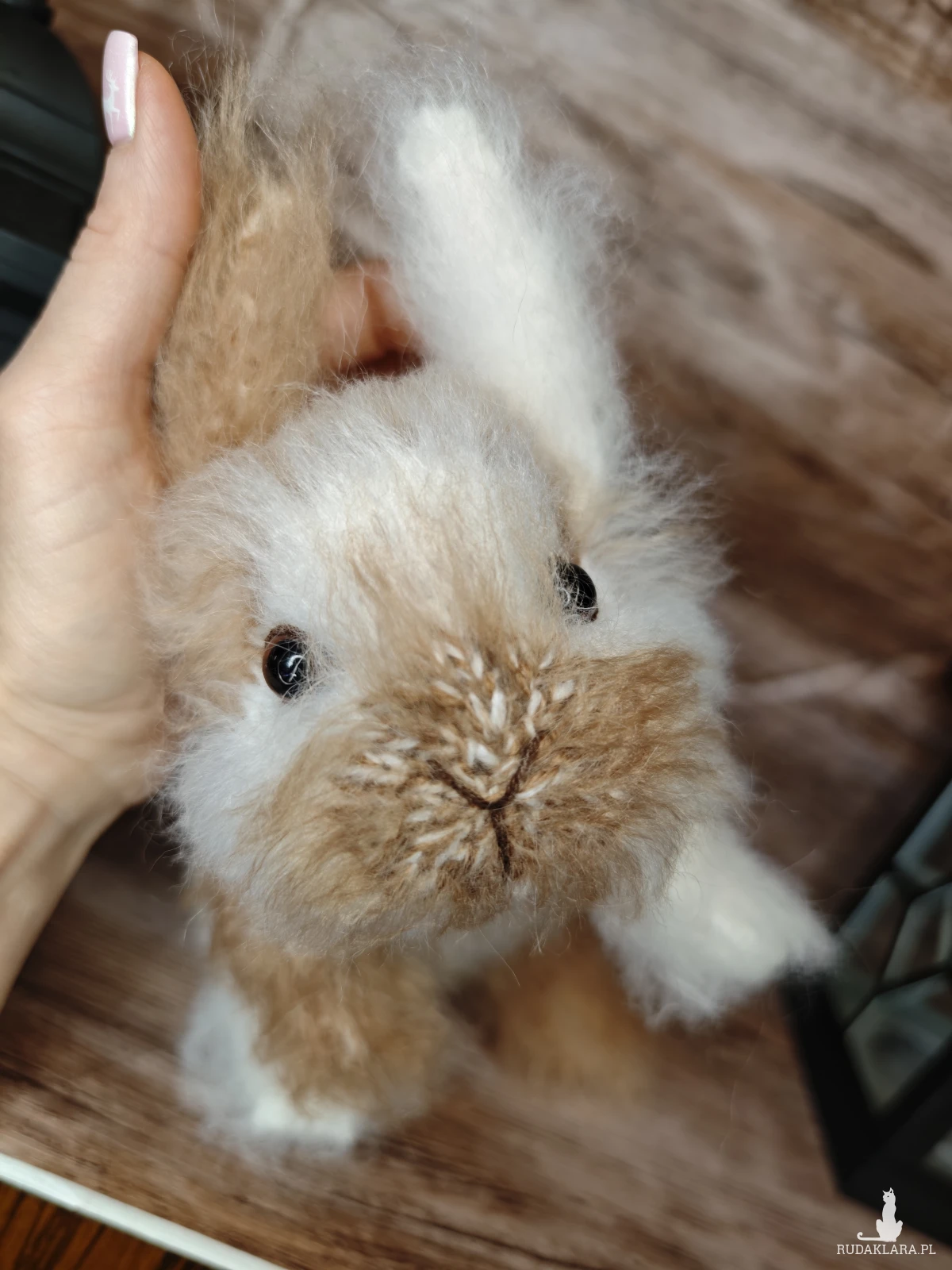Autorski, ręcznie robiony króliczek, wykonany z dużą dbałością o detale.