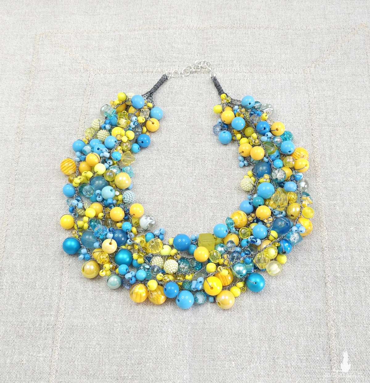 7060 niebieski, żółty naszyjnik statement, kolia, korale