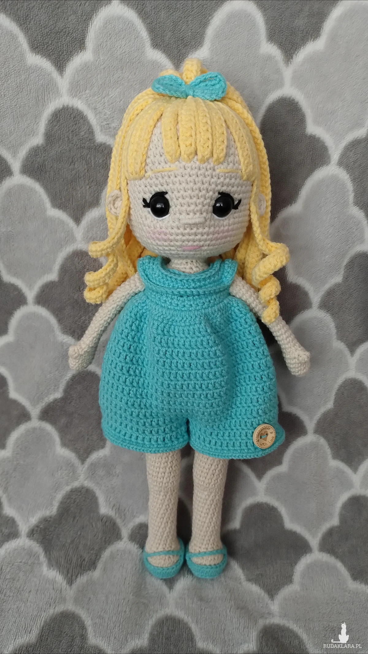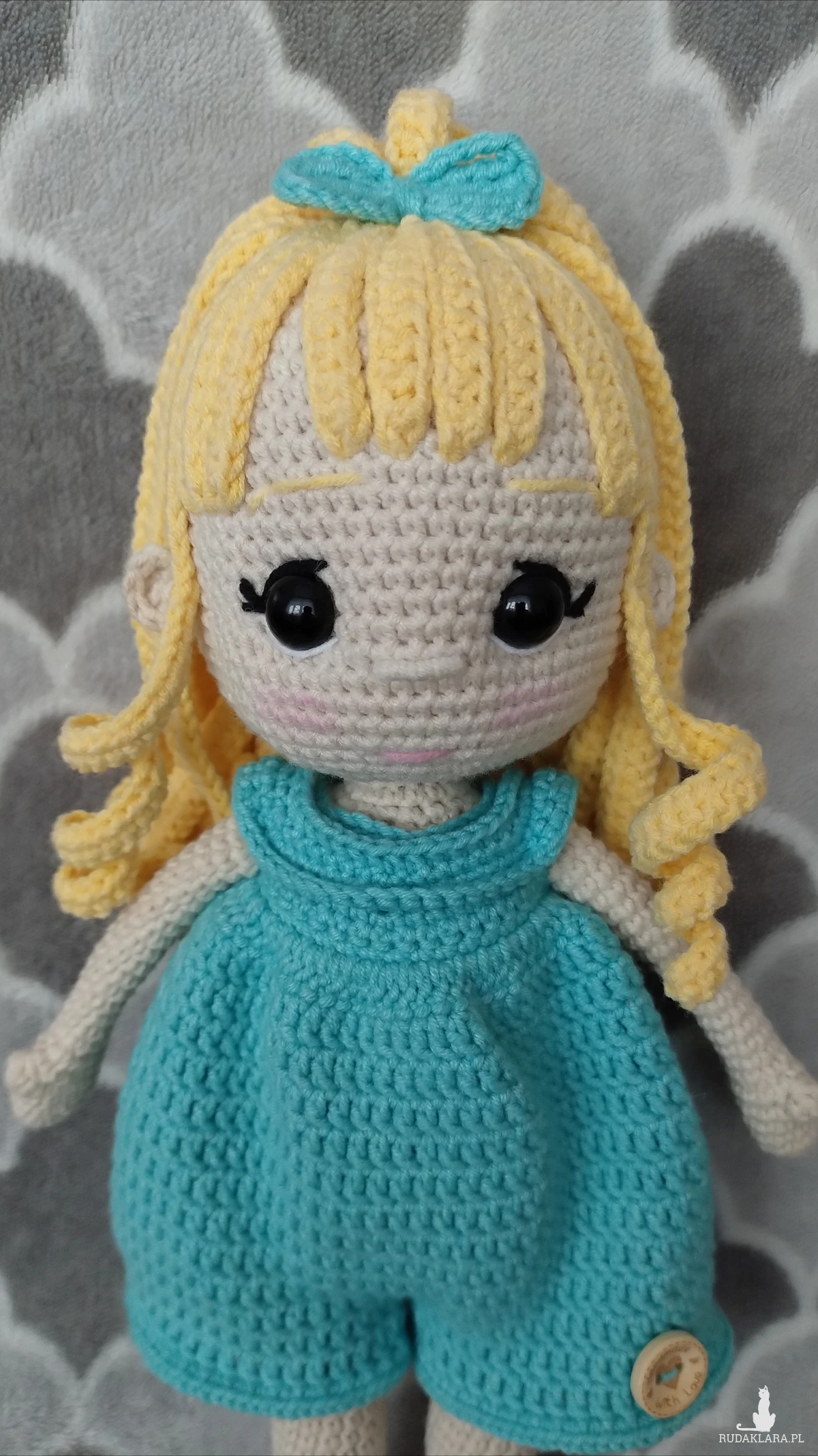 Lalka wykonana na szydełku z włóczki Yarn Art Jeans. Wysokość około 31 cm. Ubranka można zdejmować.