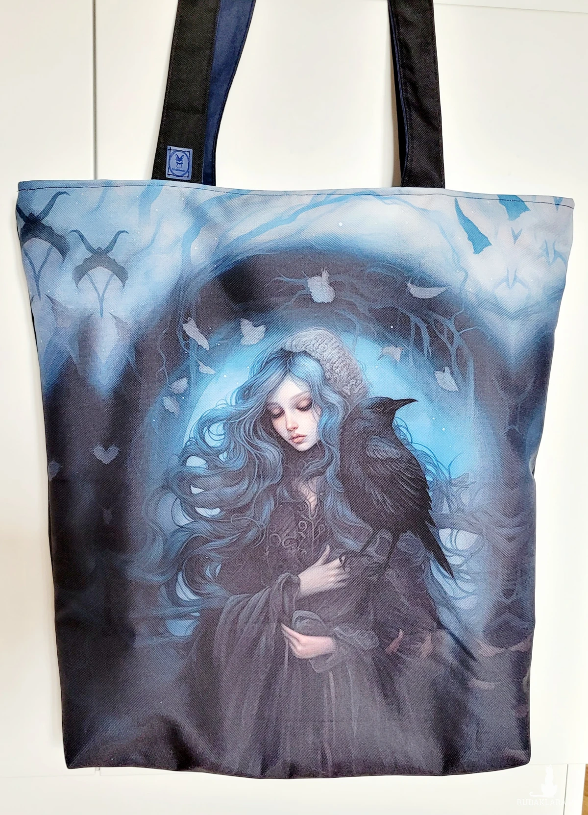 Pakowna torba z tkaniny wodoodpornej (47×40×8) bez problemu zmieści książki w formacie A4 drugie śniadanie i zakupy Zapięcie na zamek błyskawiczny, wewnątrz wesoła, granatowa podszewka i dwie kieszenie: zapinana i otwarta Tył i uszy (ok.80cm) w jednolitym kolorze: czarnym