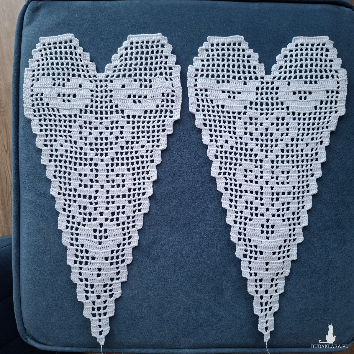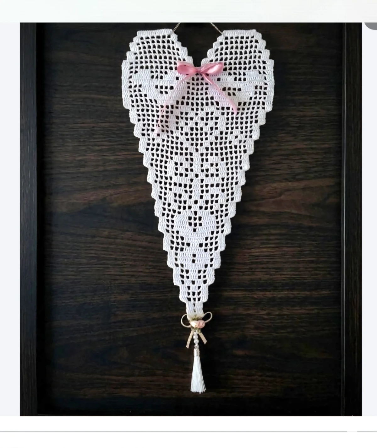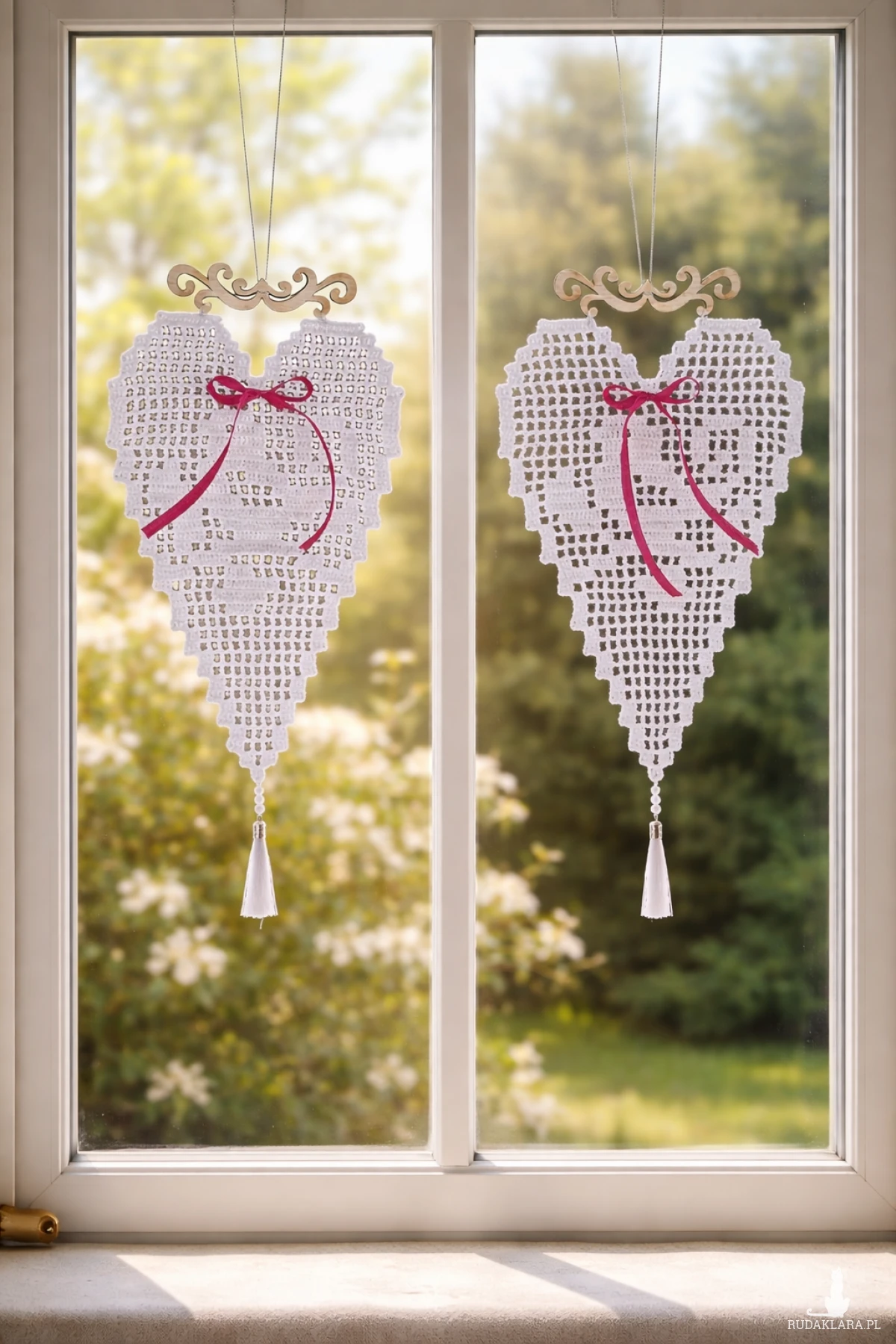 Ręcznie robiona, szydełkowa zawieszka w kształcie serca .