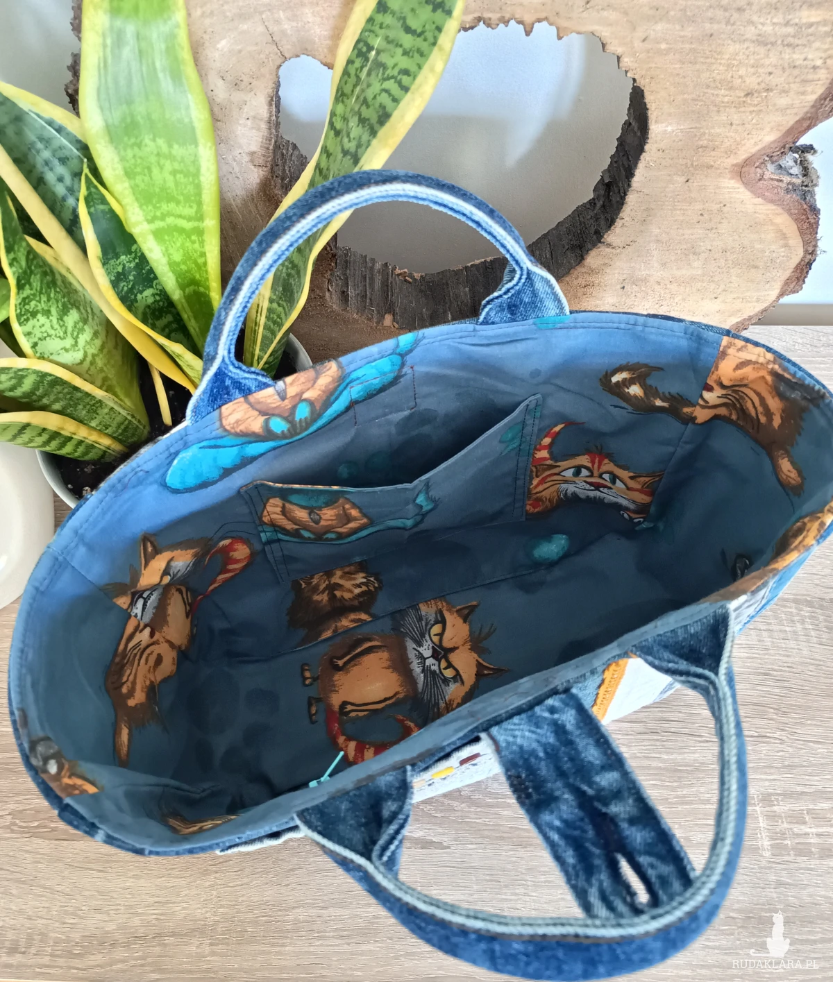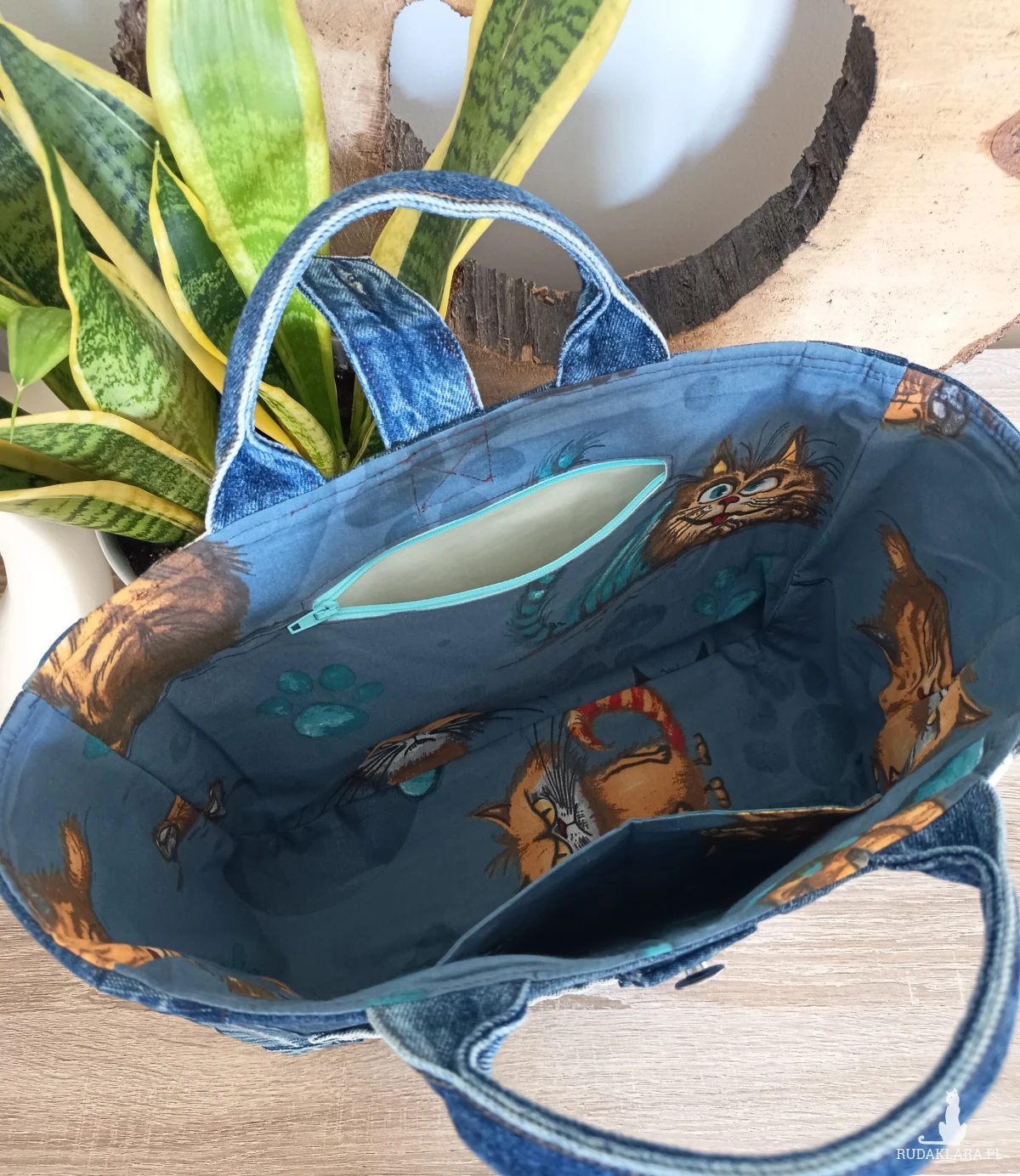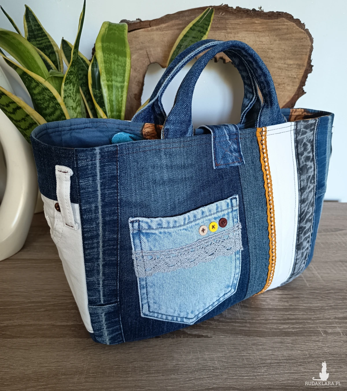 Torebka zamykana jest na guzik - z oryginalnego paska jeansowego.