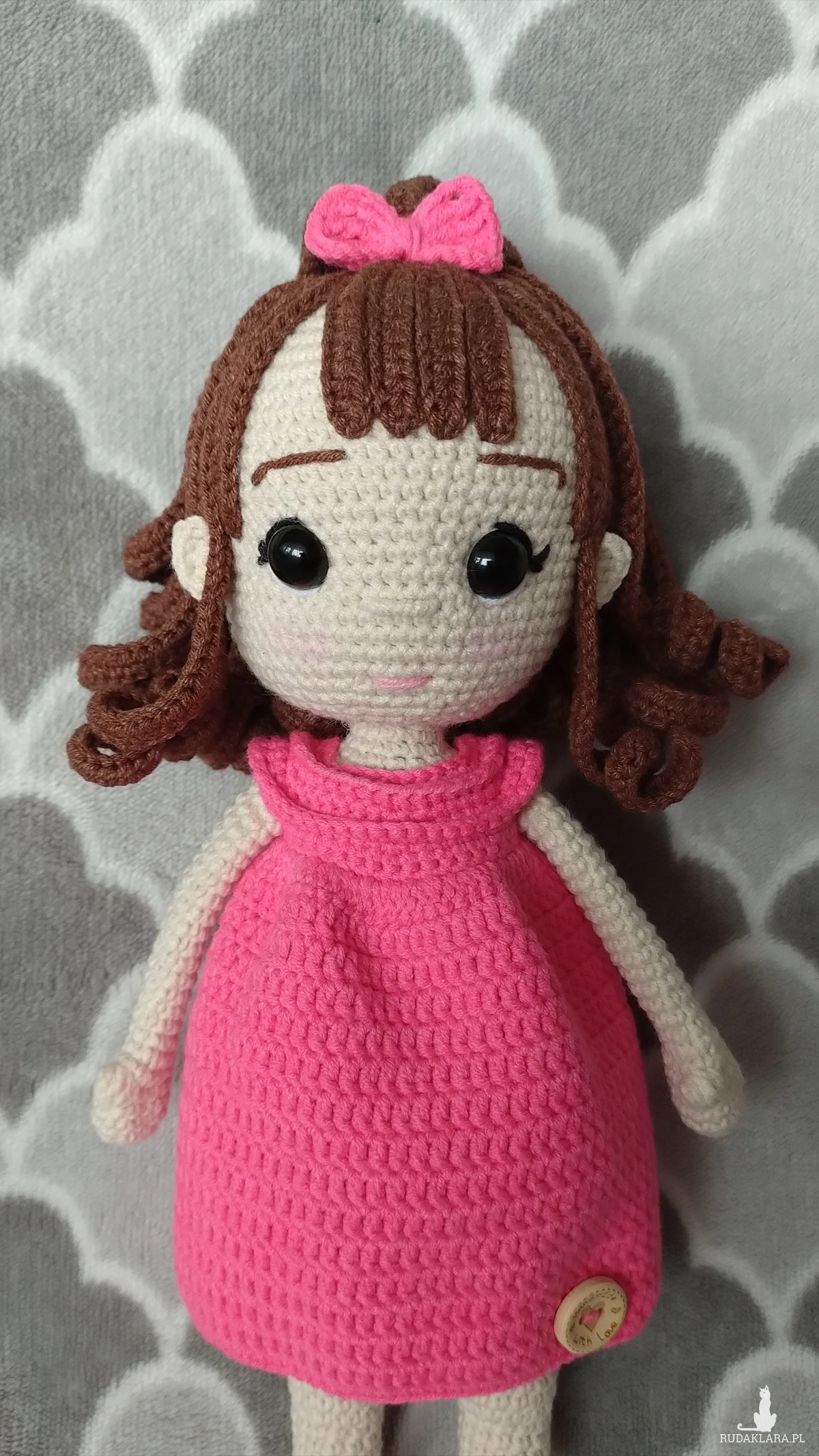 Lalka wykonana na szydełku z włóczki Yarn Art Jeans. Wysokość około 27 cm. Ubranka można zdejmować.