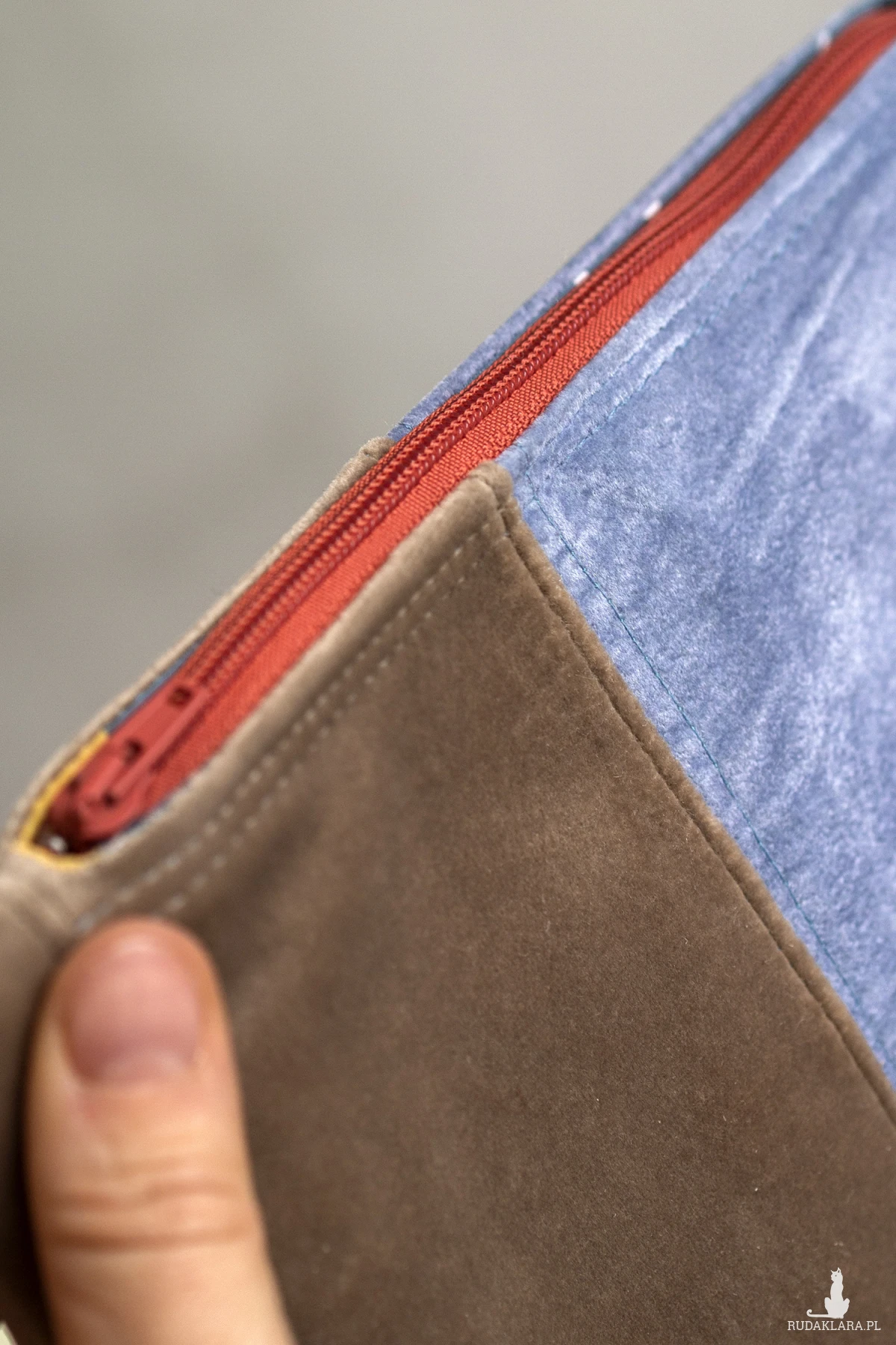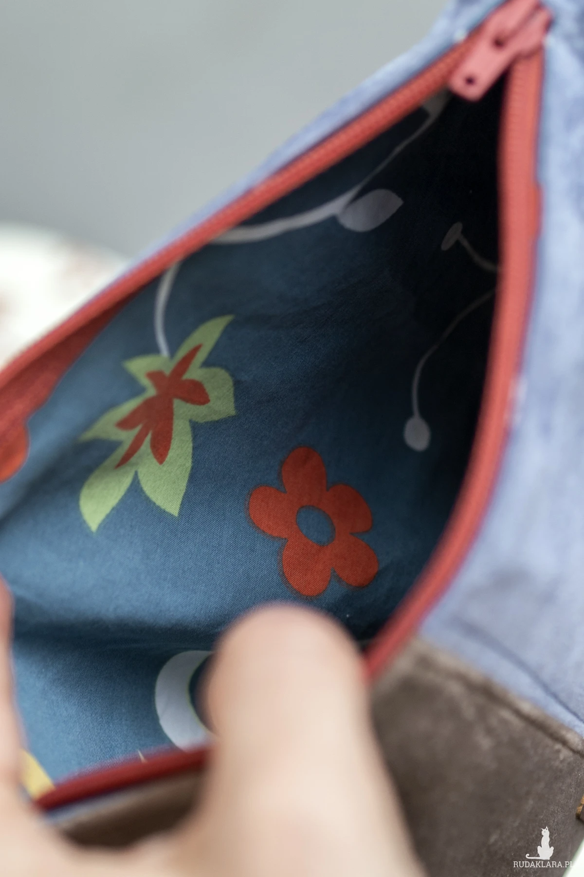 Kosmetyczka jest zapinana na suwak, w środku bawełniana podszewka.