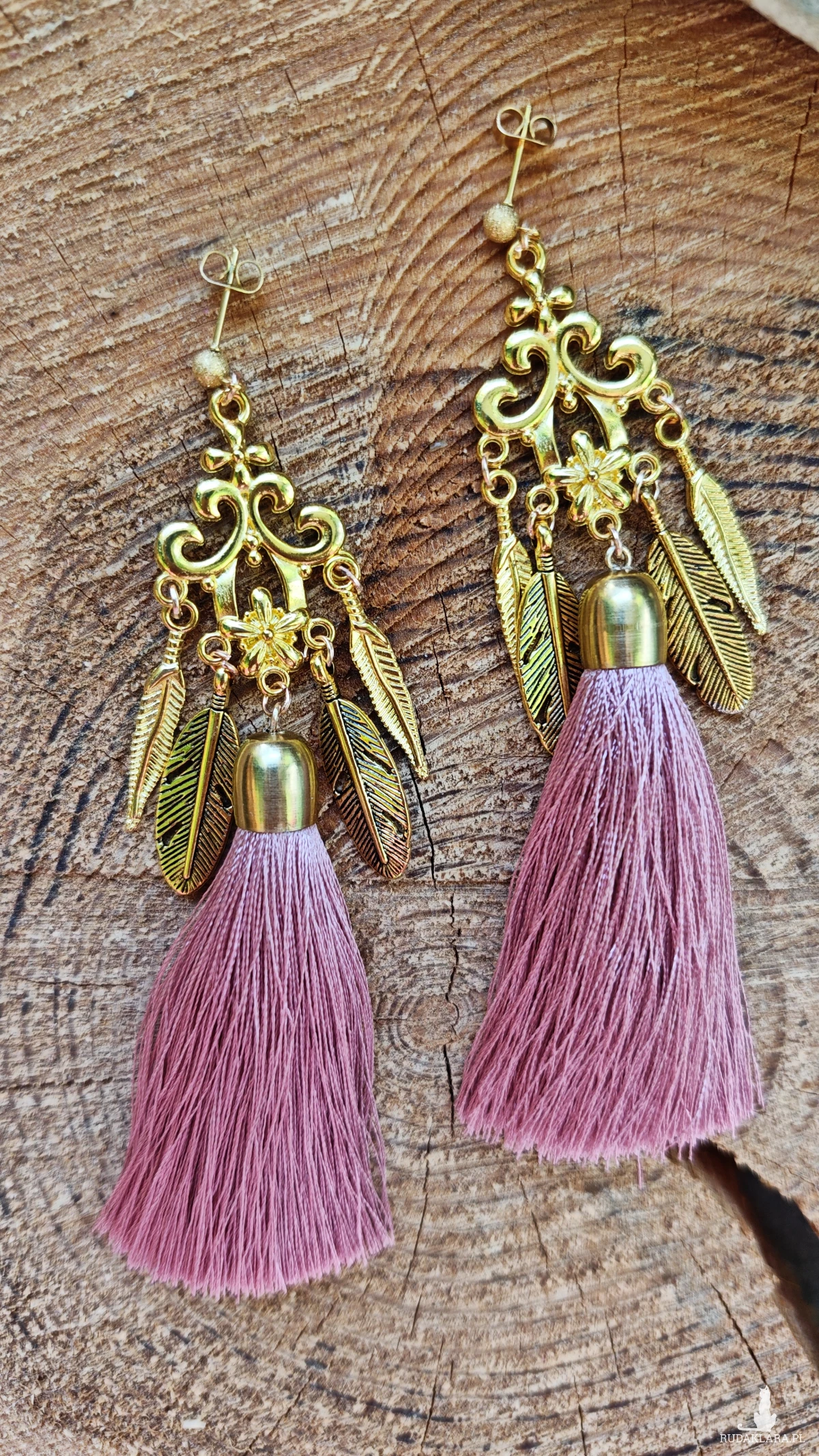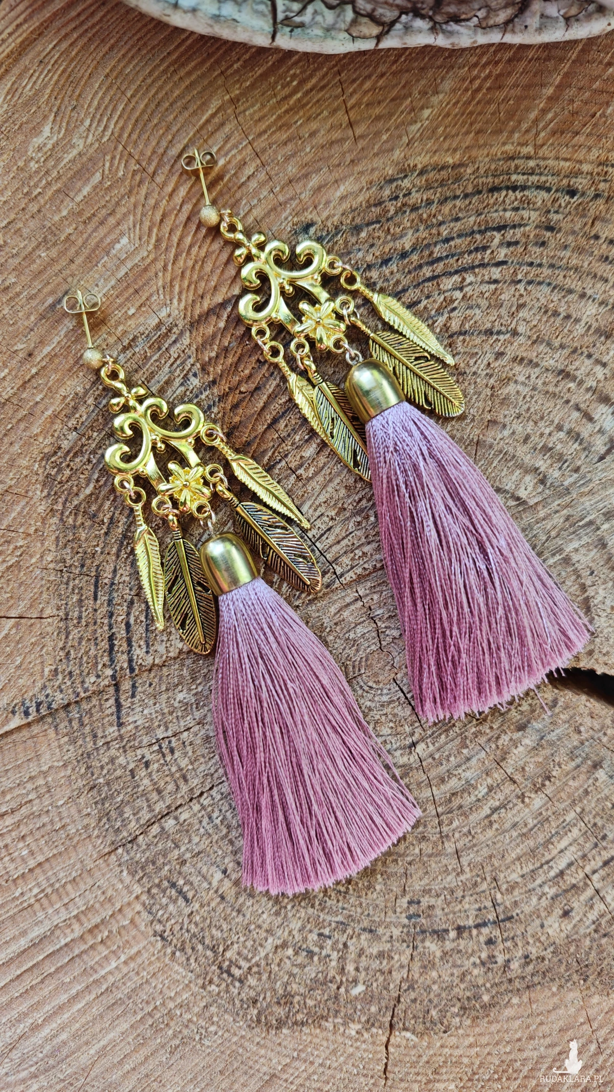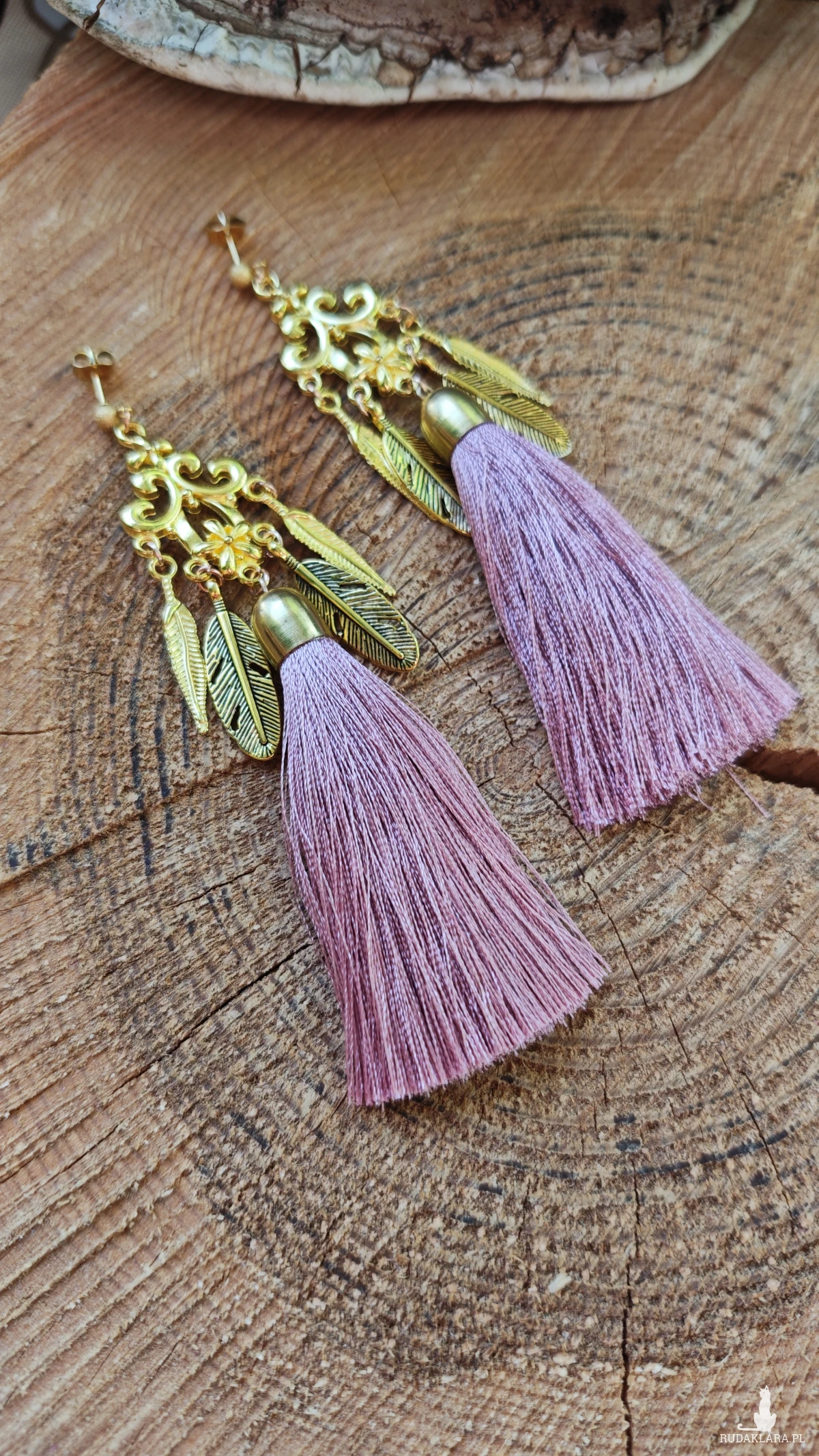 ,, złoto w beżu,, to zwiewne i lekkie kolczyki wykonane z chwosta w odcieniach beżu i metalowych elementów w kolorze złota. Kolczyki zawieszone są na ozdobnych biglach typu sztyft wykonanych ze stali szlachetnej.