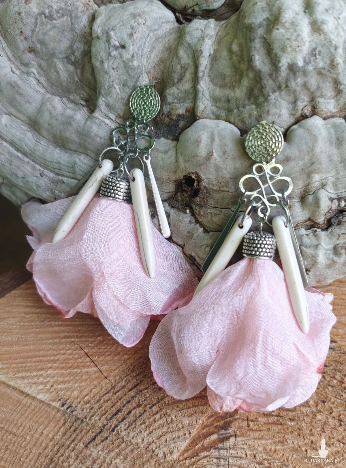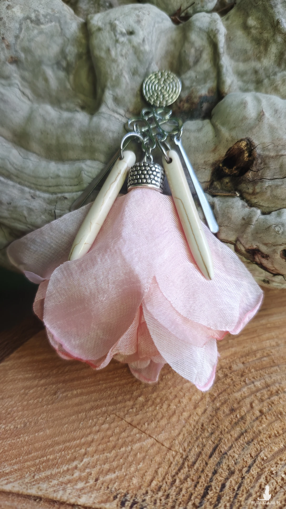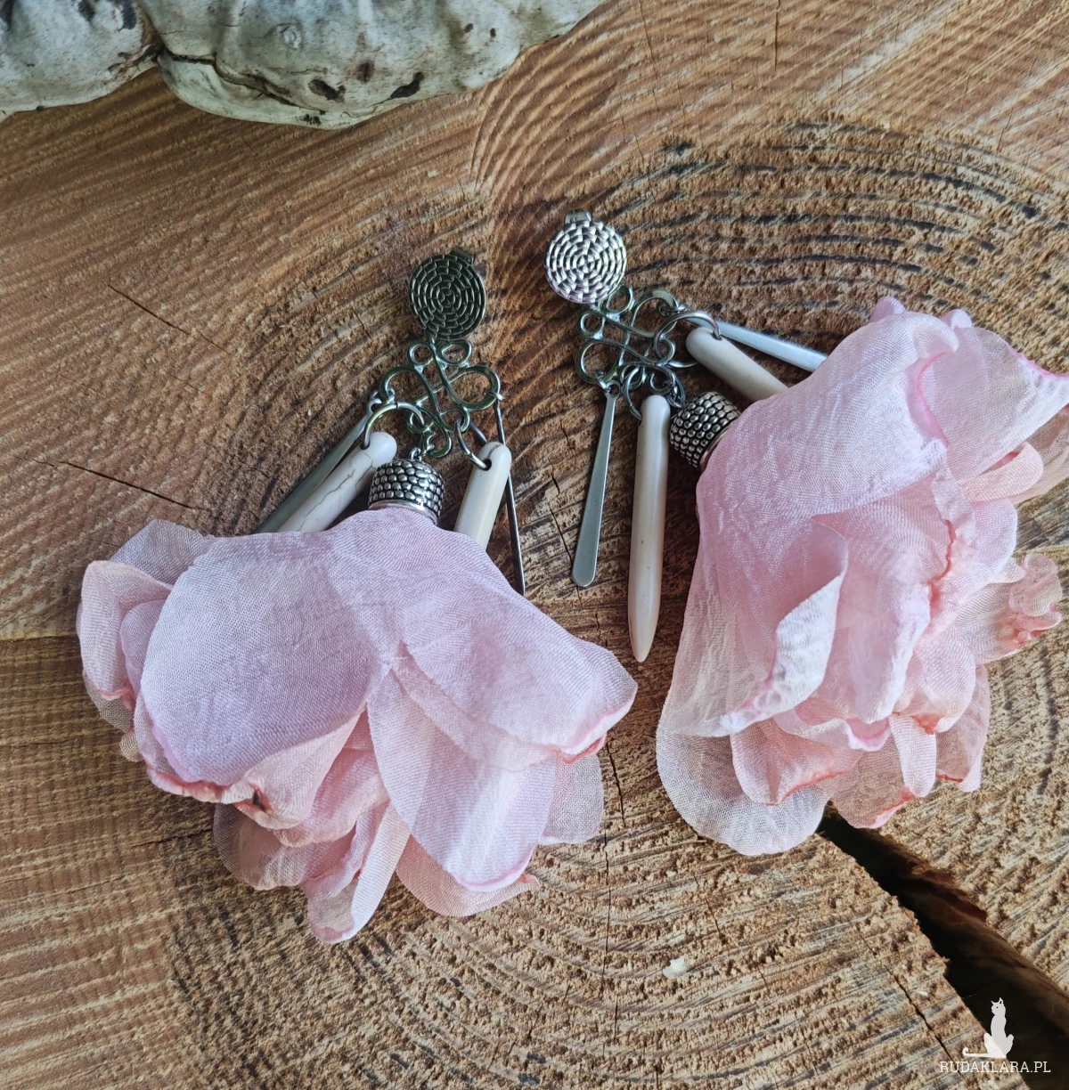 ,, baletnica w jasnym różu,, to lekkie i zwiewne kolczyki wykonane z tiulowego kwiatka chwosta i elementów w kolorze srebrnym wykonanych z metalu i stali szlachetnej. Kolczyki zawieszone są na ozdobnych biglach typu sztyft wykonanych ze stali szlachetnej.